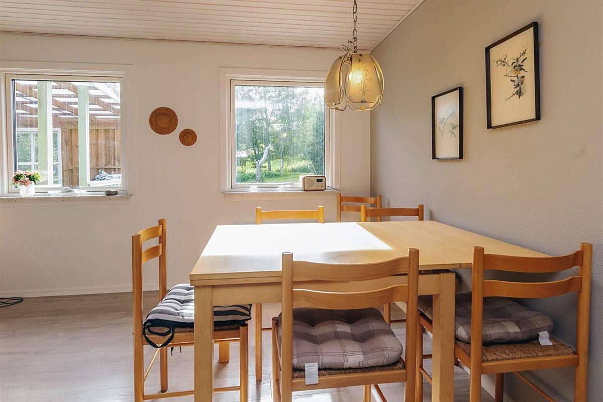 Dieses traditionelle Ferienhaus bietet ein helles und einladendes Interieur – ideal für einen erholsamen Aufenthalt in Ulvshale. Das Haus verfügt über drei Schlafzimmer, eines davon direkt neben dem Wohnzimmer mit offenem Wandbereich unter der Decke, was für ein einzigartiges und luftiges Ambiente sorgt. Die offene Küche und der Wohnbereich mit Essbereich schaffen eine gemütliche Atmosphäre für Familientreffen oder gemeinsame Mahlzeiten. Über den Satellitenempfänger können Gäste eine Auswahl an internationalen Fernsehsendern genießen und so für Unterhaltung für jedes Alter sorgen.