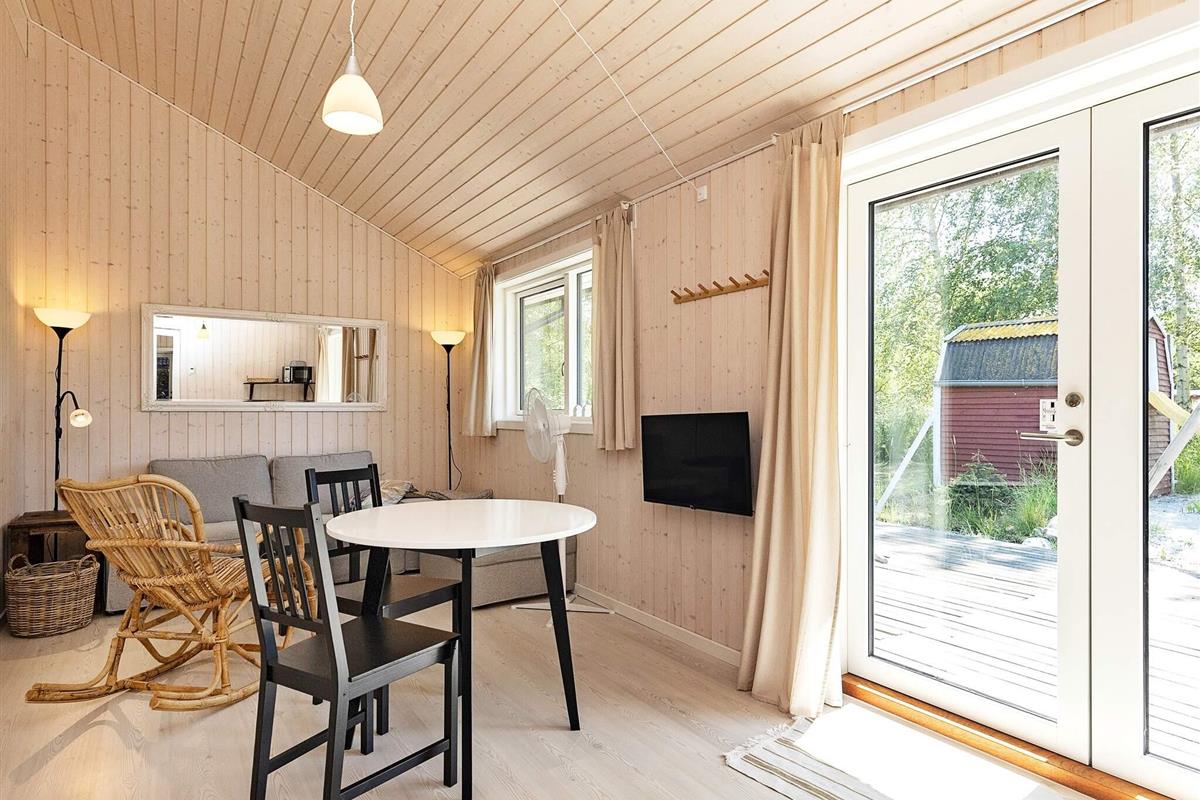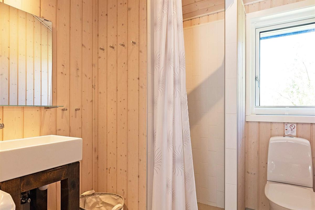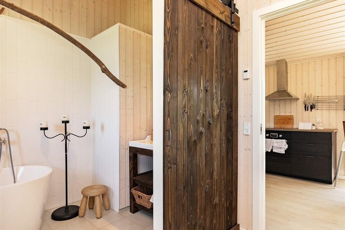 Im Ferienhaus auch separate Küche sowie ein Schlafzimmer mit Doppelbett und eigenem Bad im Anschluss daran. Von der Küche gelangt man in ein sehr helles Wohnzimmer, das wiederum Zugang zu einem weiteren schönen Duschbad sowie zu einem zweiten Zimmer mit Doppelbett und einem gemütlichen Kinderzimmer mit Etagenbett mit zwei Kojen bietet.