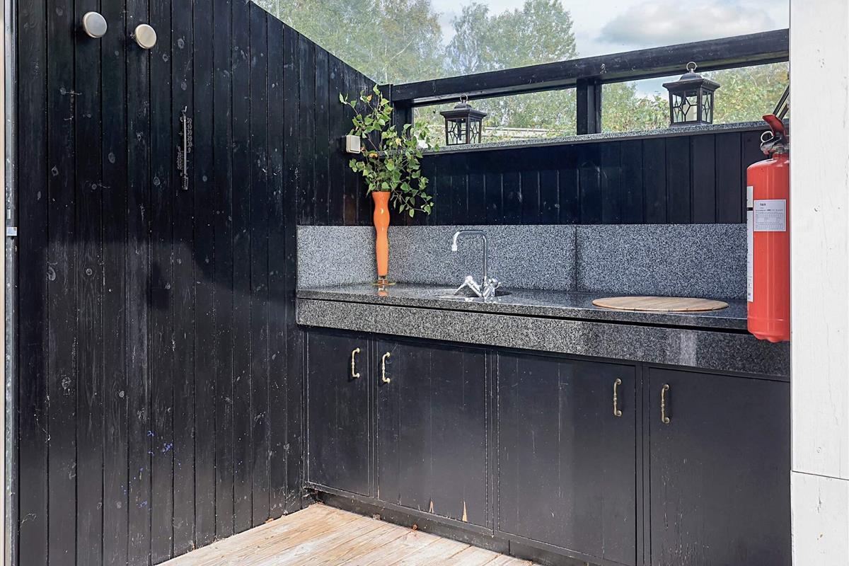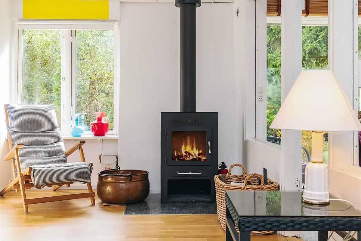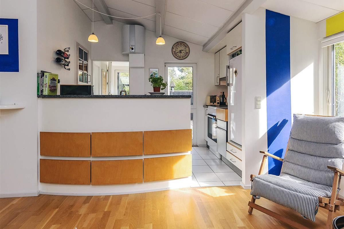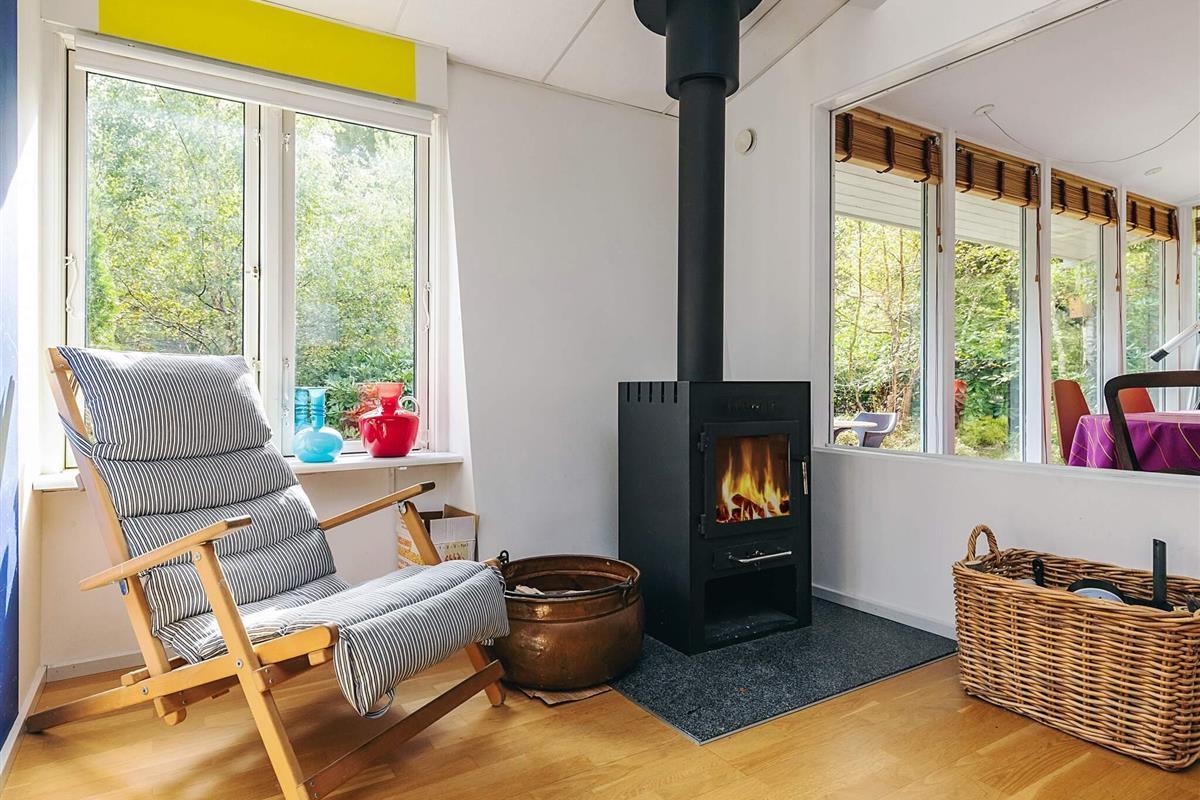 Das Ferienhaus besteht aus einem geräumigen Schlafzimmer mit Doppelbett und einem Flur, der in ein helles Wohnzimmer mit Esstisch und doppeltem Schlafsofa führt. Das Wohnzimmer hat große Glasfronten und einen wunderschönen Blick ins Freie, wo man im Sommer Heidelbeeren fürs Frühstück pflücken kann. Dieses Wohnzimmer ist mit einem kleineren Wohnzimmer verbunden, das über eine Schlafnische, einen Holzofen/Wärmepumpe sowie eine funktionale Küche verfügt. Von hier aus gelangt man in einen Flur mit Zugang zu einem Hauswirtschaftsraum mit zusätzlichem Kühlschrank und kleinem Gefrierfach sowie einem schönen, hellen Badezimmer. Außerdem gibt es Zugang zu einer Terrasse mit einer kleinen Außenküche.