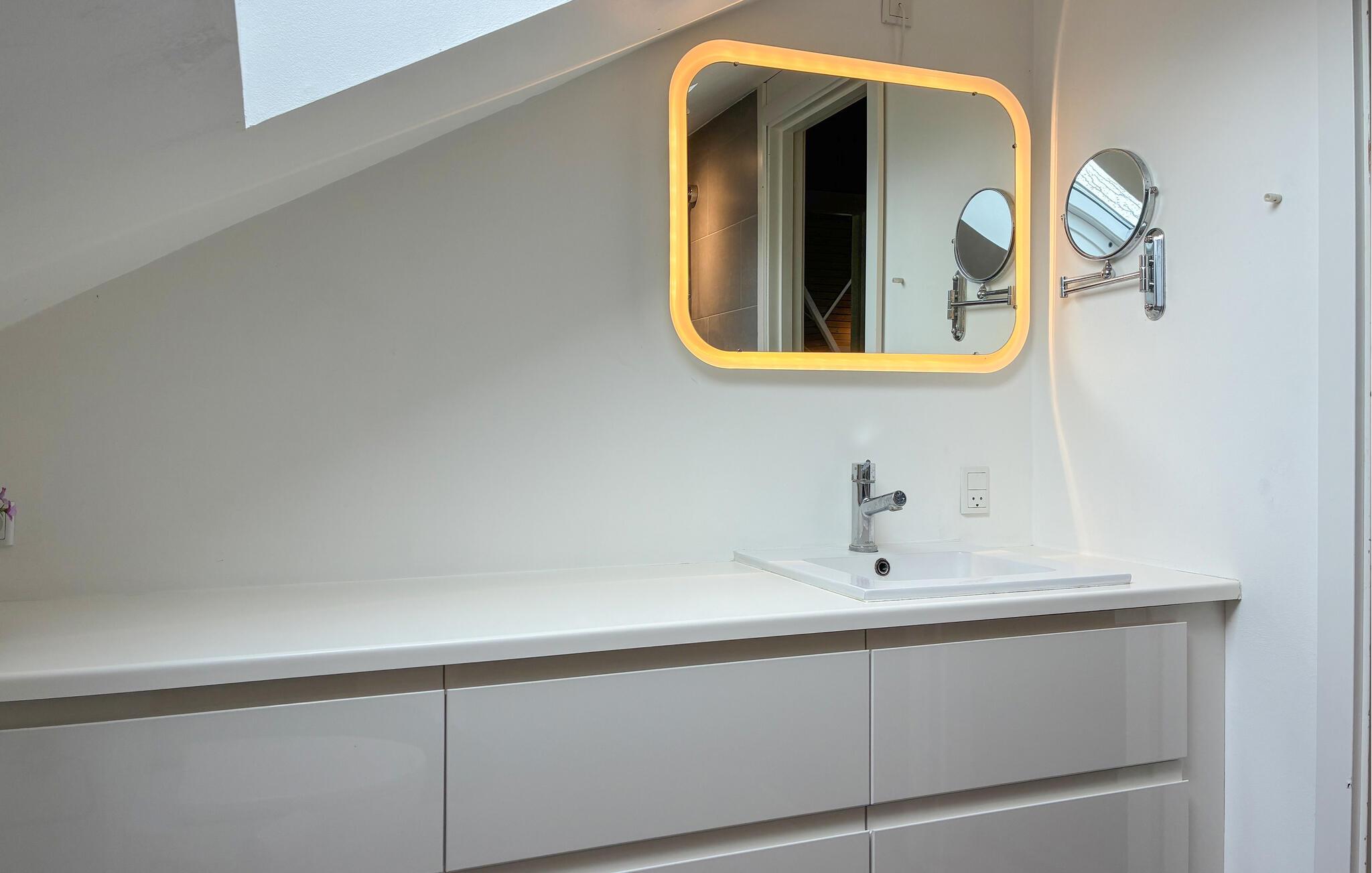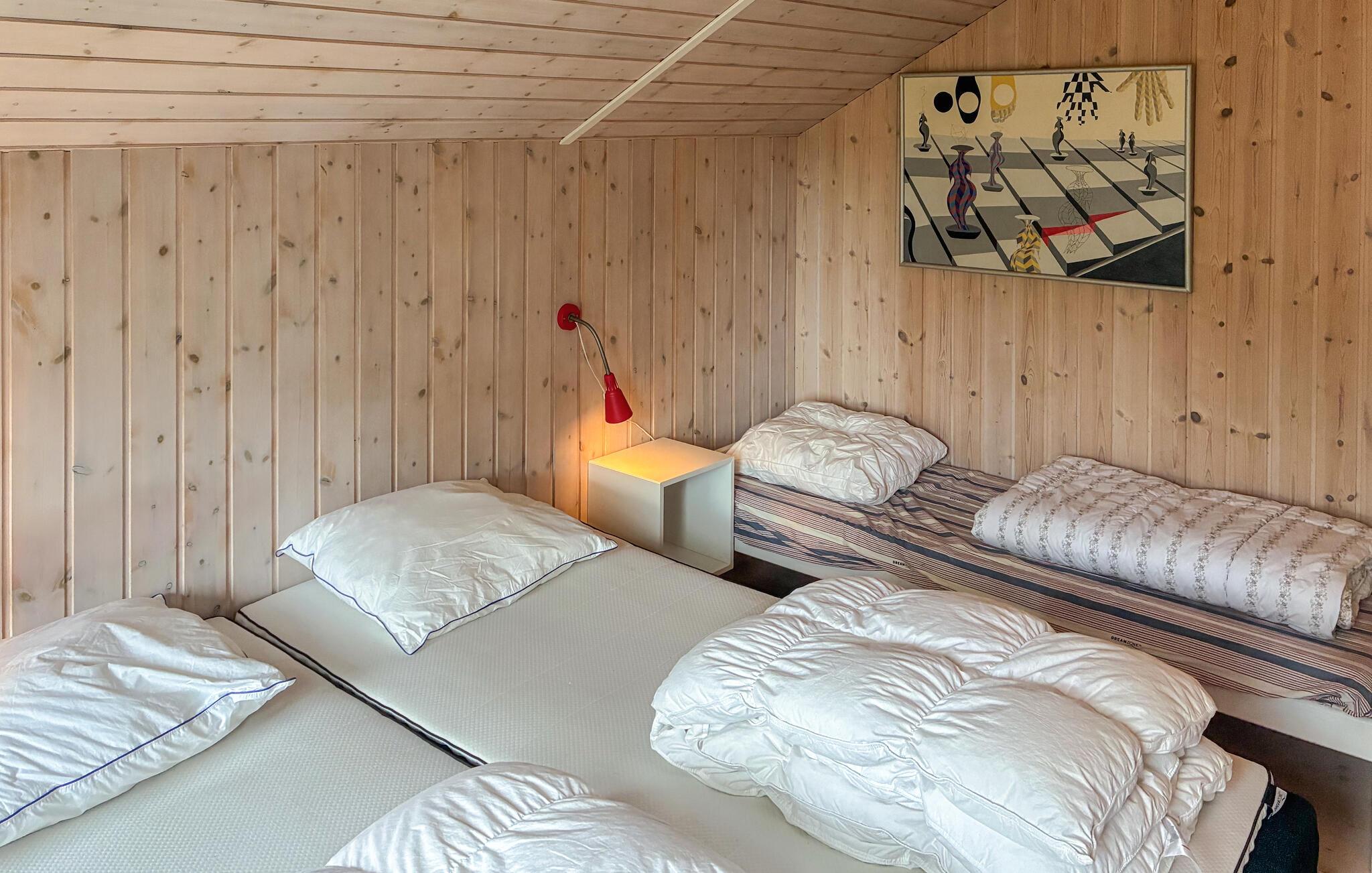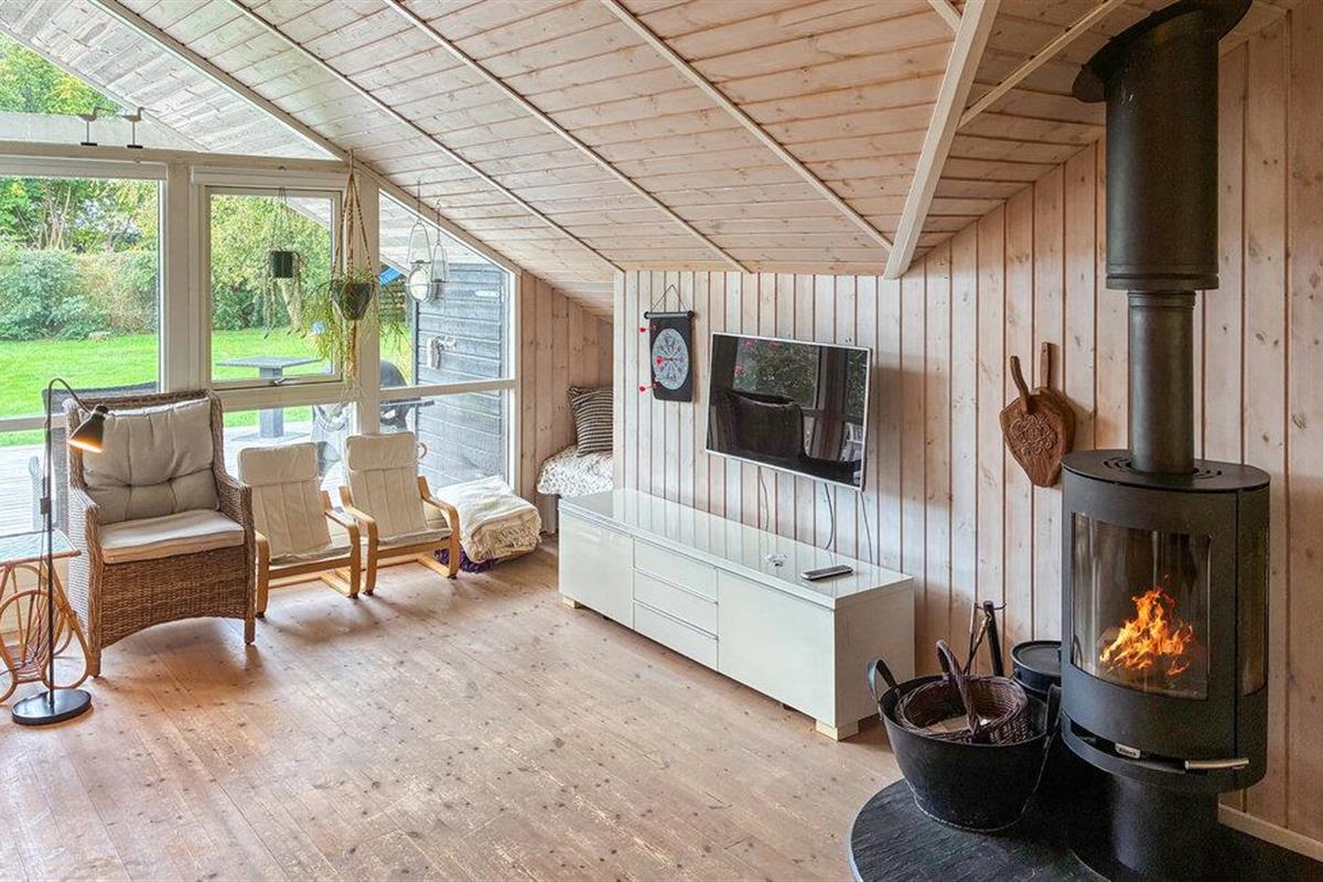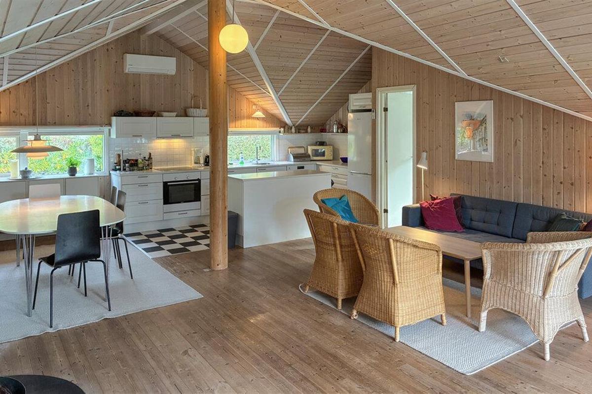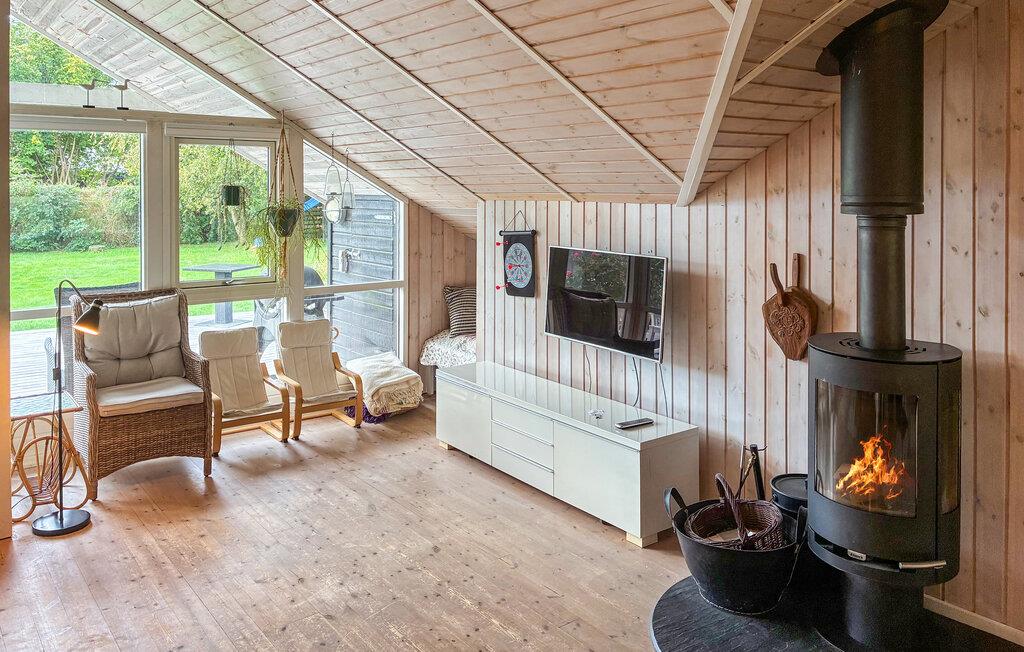 In dit vakantiehuis, op slechts een paar minuten lopen van het water, kun je een afwisselende vakantie verwachten tussen zee, natuur en Deense gezelligheid. Het vriendelijke interieur van het huis wordt gekenmerkt door veel hout en Scandinavische charme. Maak het jezelf gemakkelijk in de woonkamer voor de open haard en geniet van de gezellige warmte terwijl je samen een boek leest of een film kijkt. De zithoek en fauteuils nodigen uit om te blijven hangen en de grote ramen creëren een aangename verbinding tussen het interieur en de tuin. De open keuken is modern uitgerust en heeft alles wat je nodig hebt om samen maaltijden te bereiden. Familie en vrienden kunnen rond de eettafel zitten voor lange, gezellige avonden.