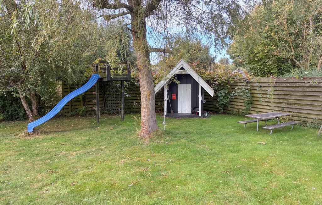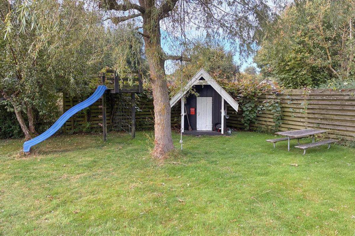 Stap uit op het grote houten terras, dat is uitgerust met een parasol. Ontbijt in de frisse lucht of geniet gewoon van het uitzicht op het groen. De goed onderhouden tuin met gazon, speelhuisje en glijbaan biedt volop ruimte voor kinderen om te spelen, terwijl de volwassenen kunnen ontspannen op het tuinmeubilair.