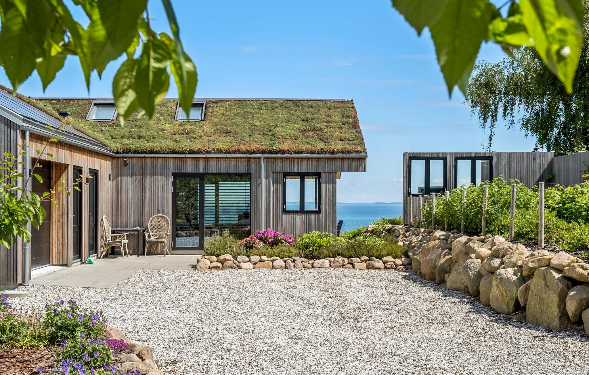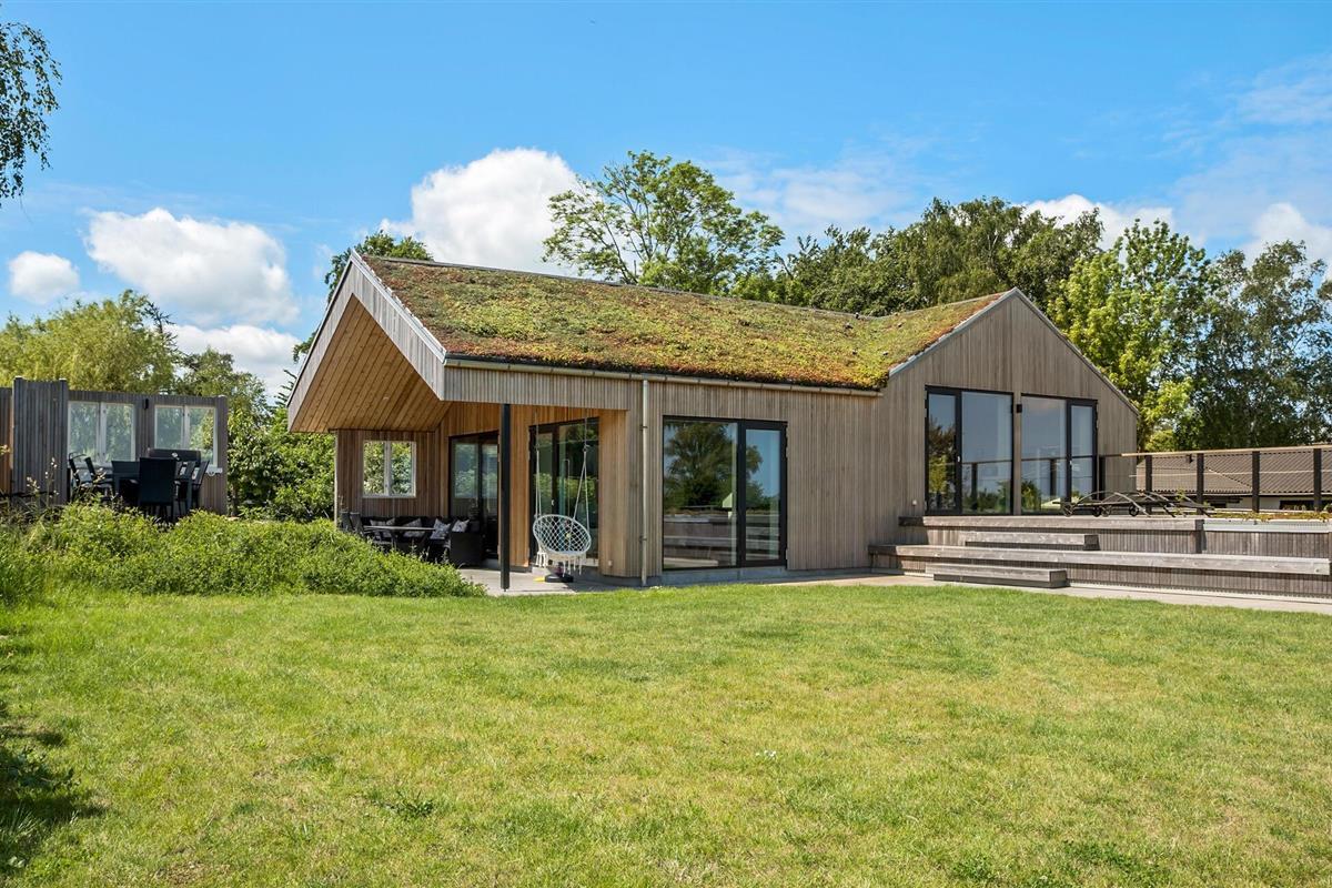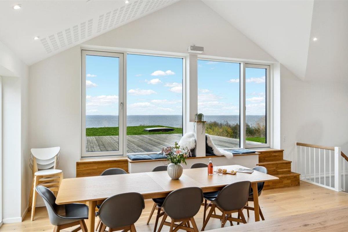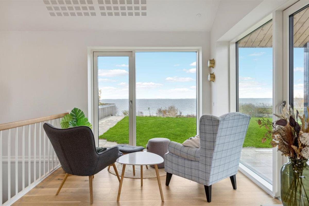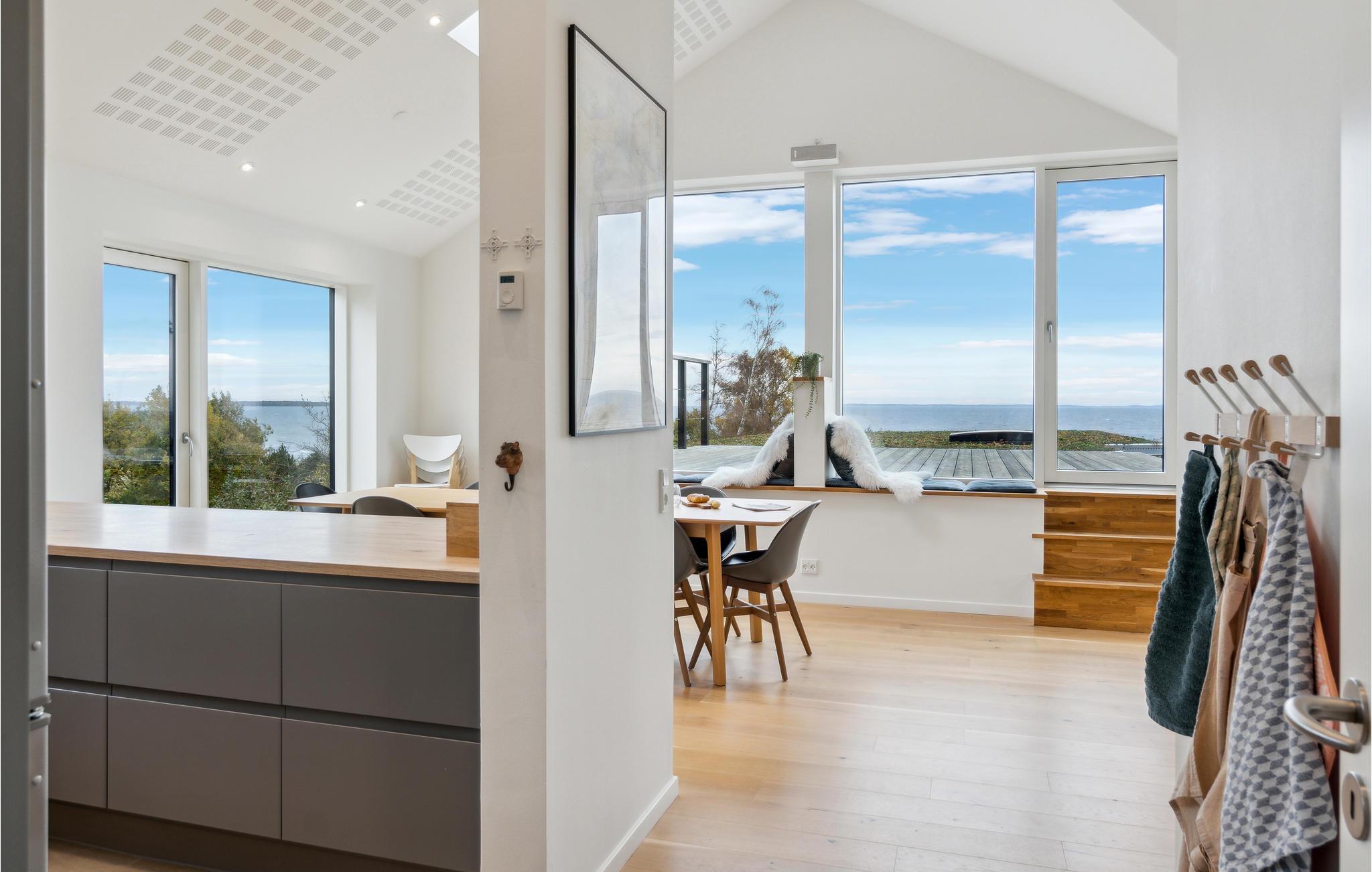 Geniet van dit modern vakantiehuis met panoramisch uitzicht en directe toegang tot het strand in Nykøbing Sj.