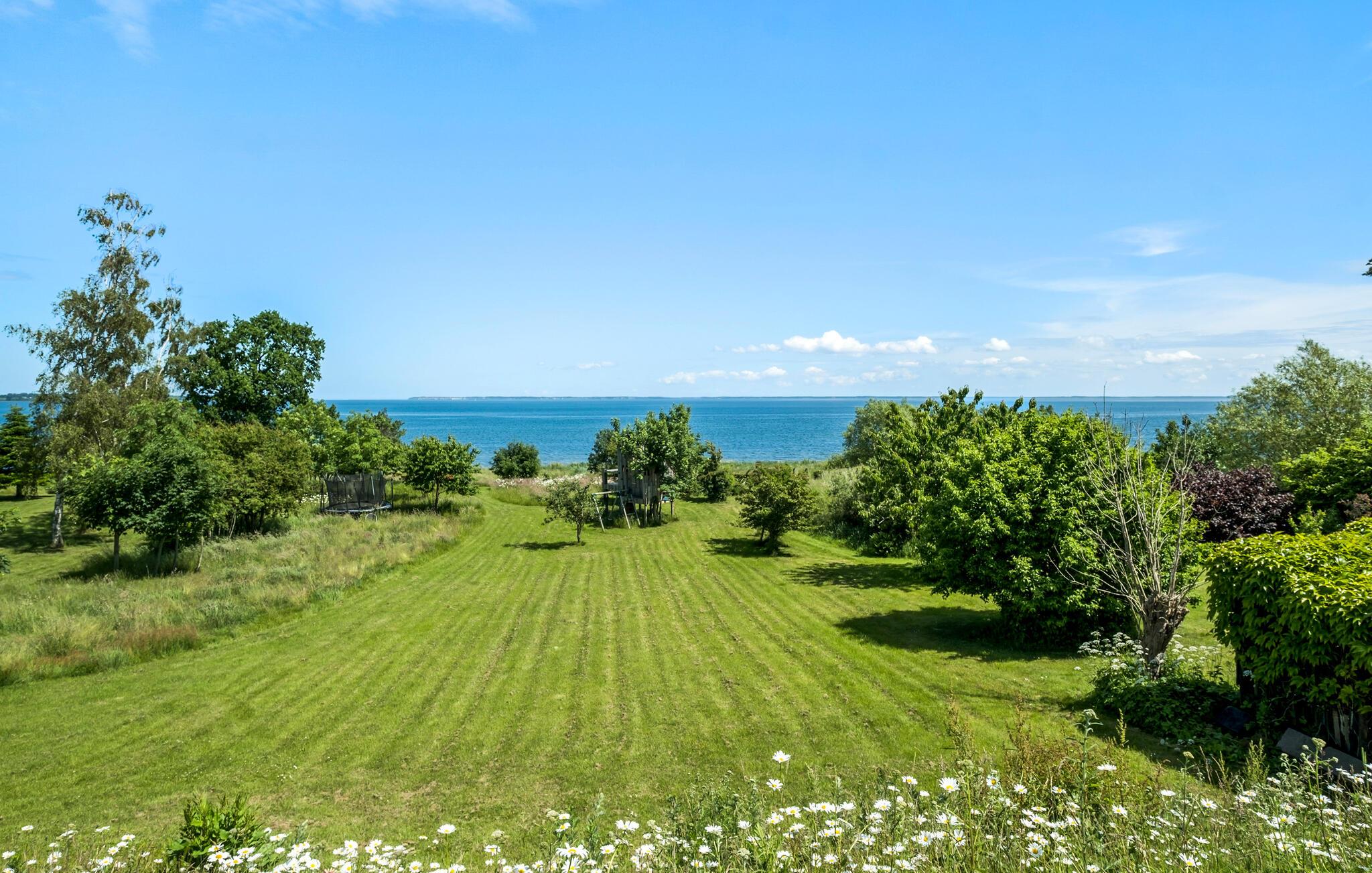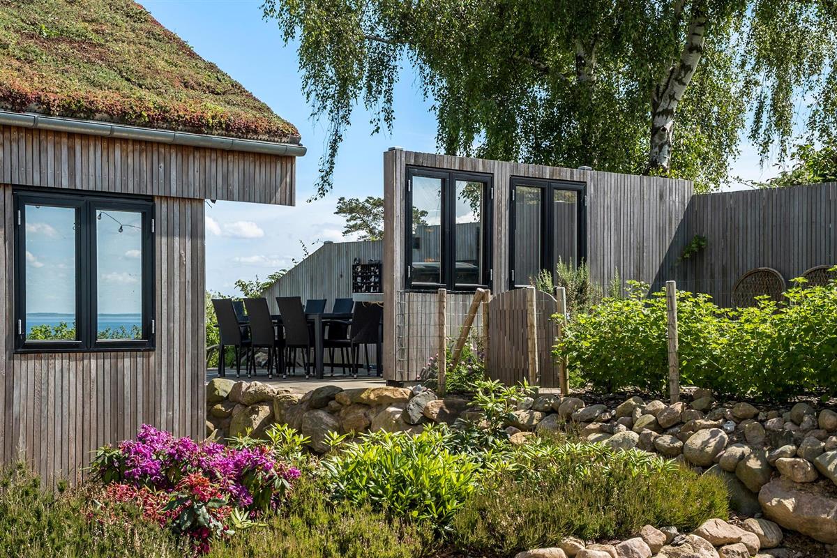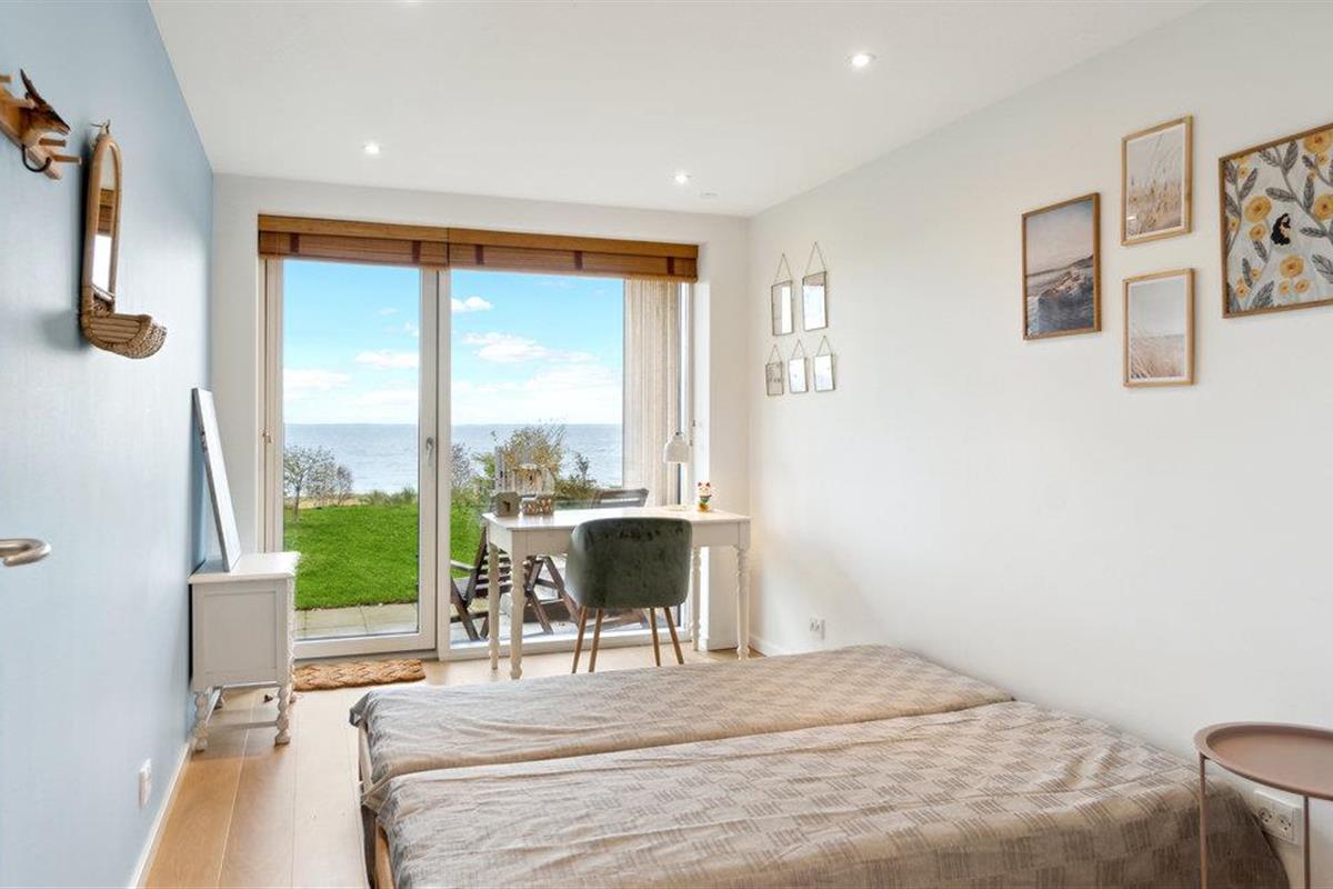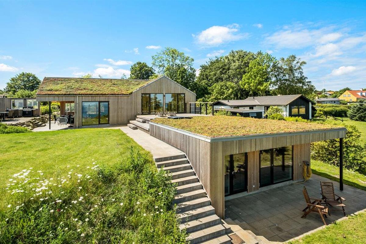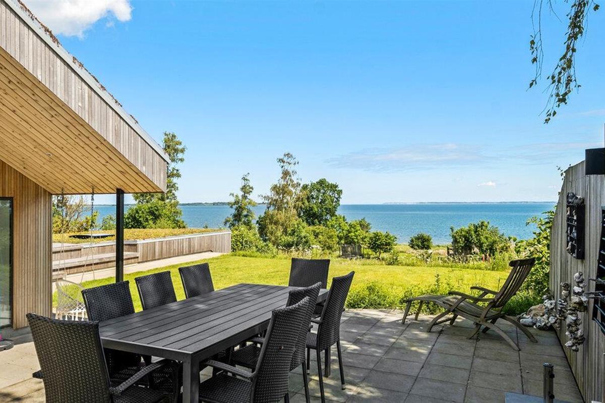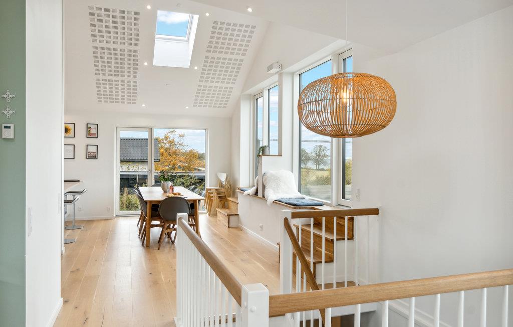 Geniet van dit modern vakantiehuis met panoramisch uitzicht en directe toegang tot het strand in Nykøbing Sj.