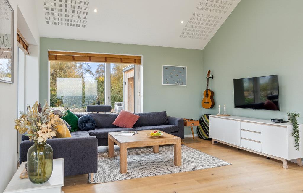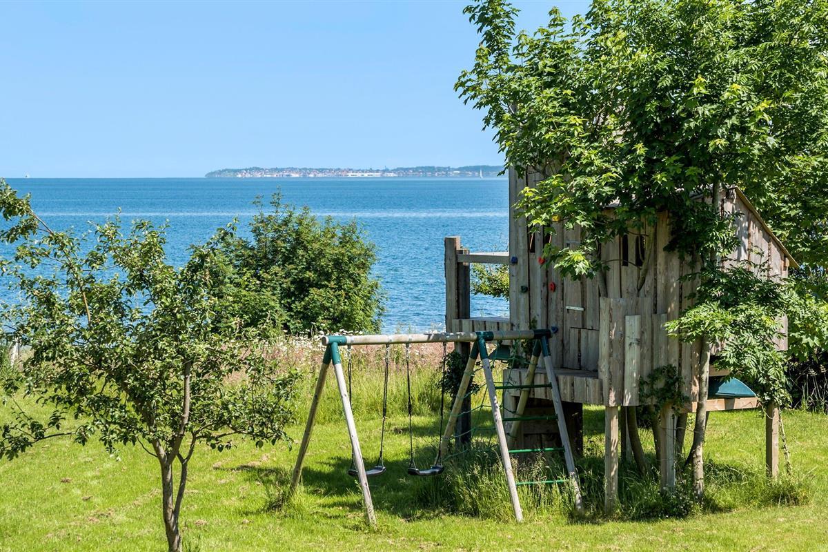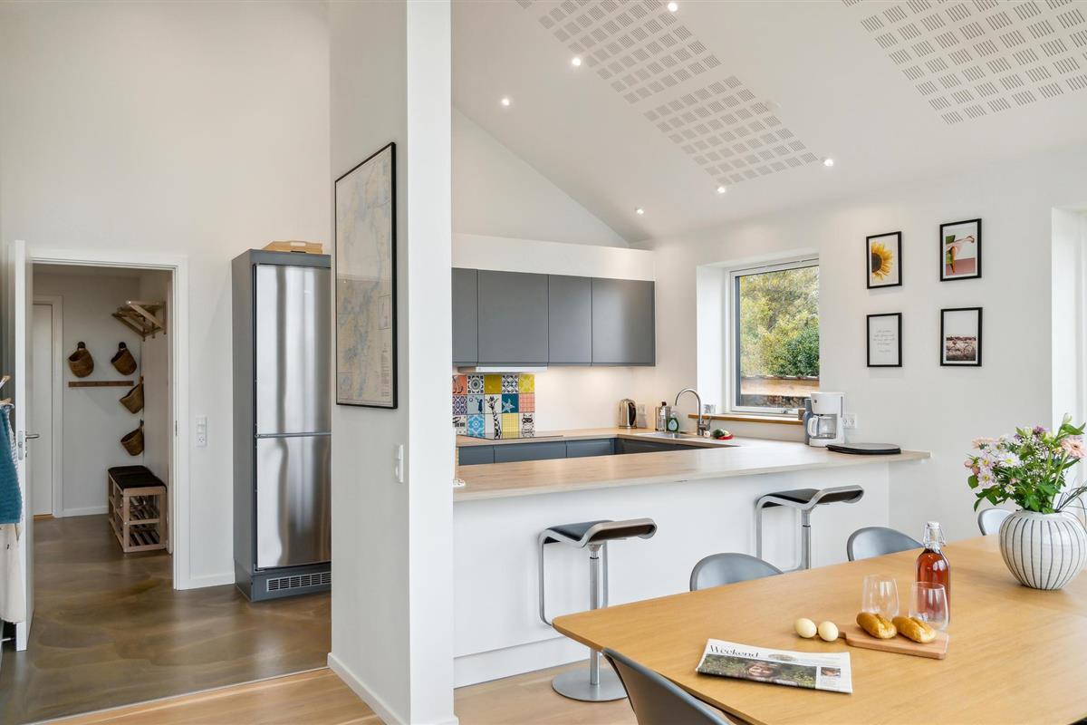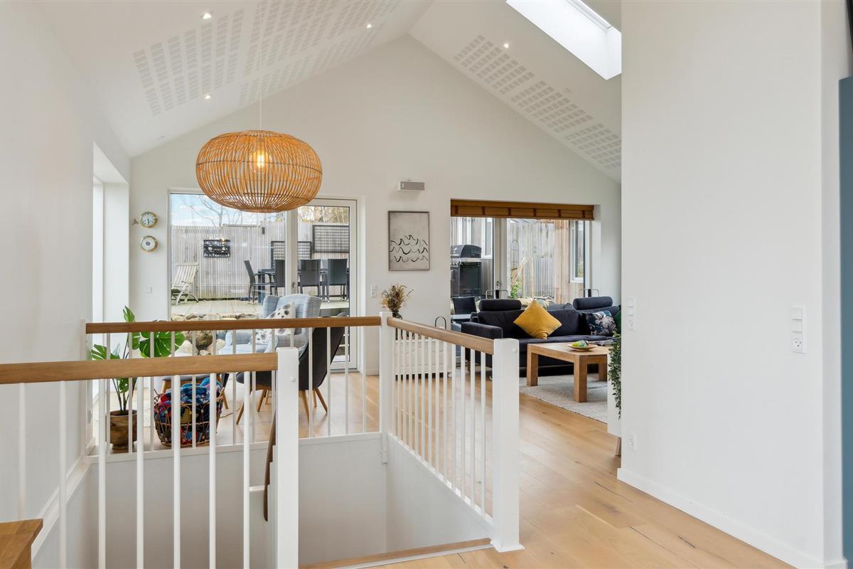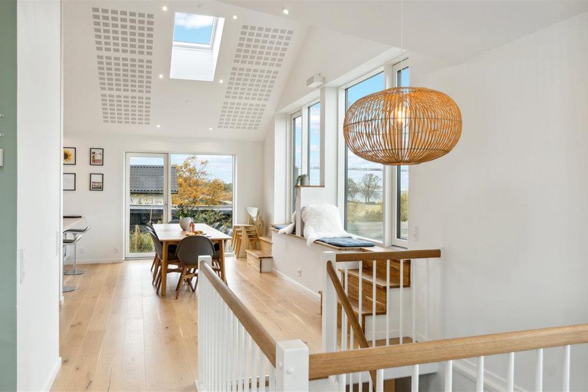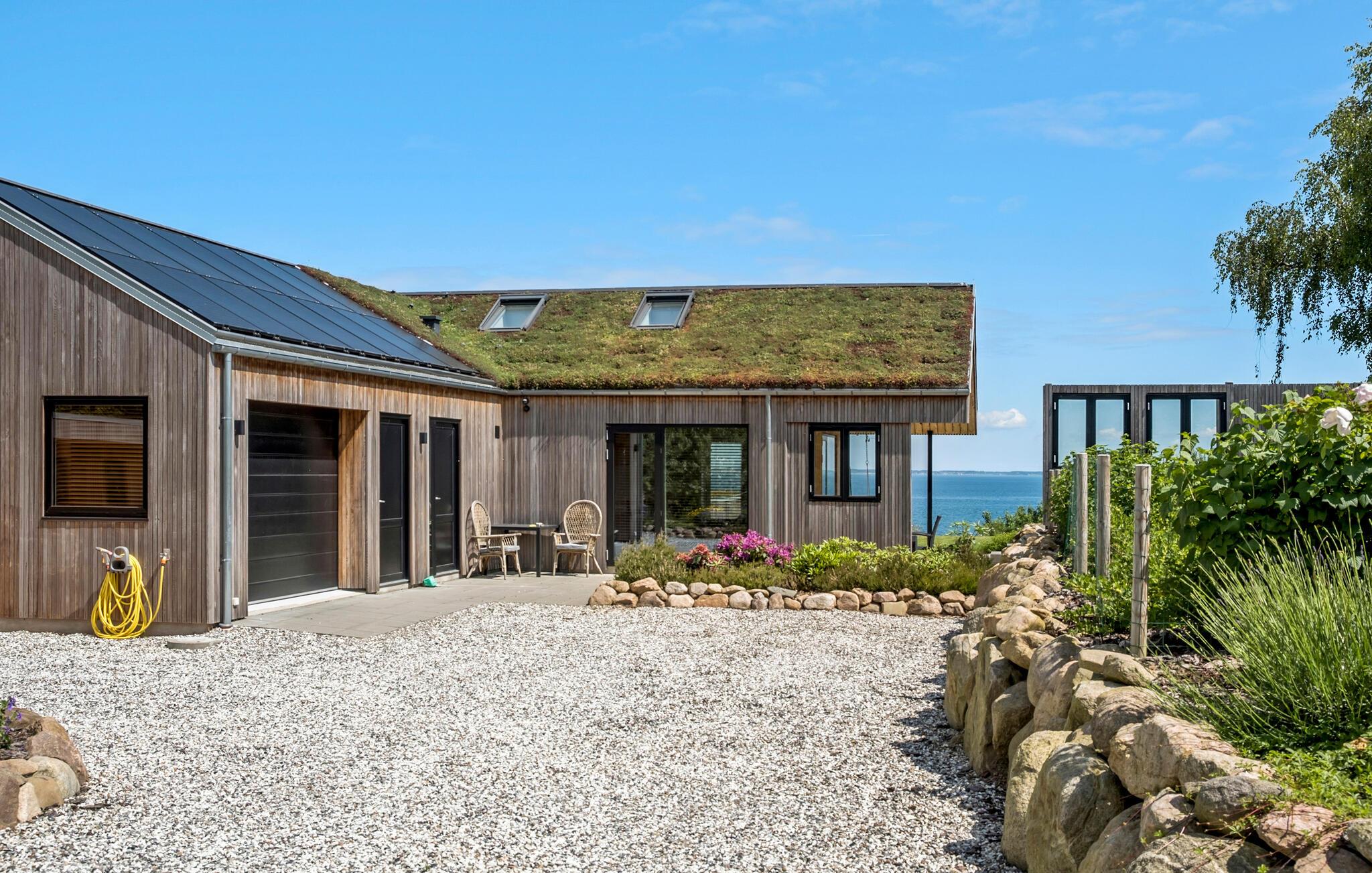 Geniet van dit modern vakantiehuis met panoramisch uitzicht en directe toegang tot het strand in Nykøbing Sj.