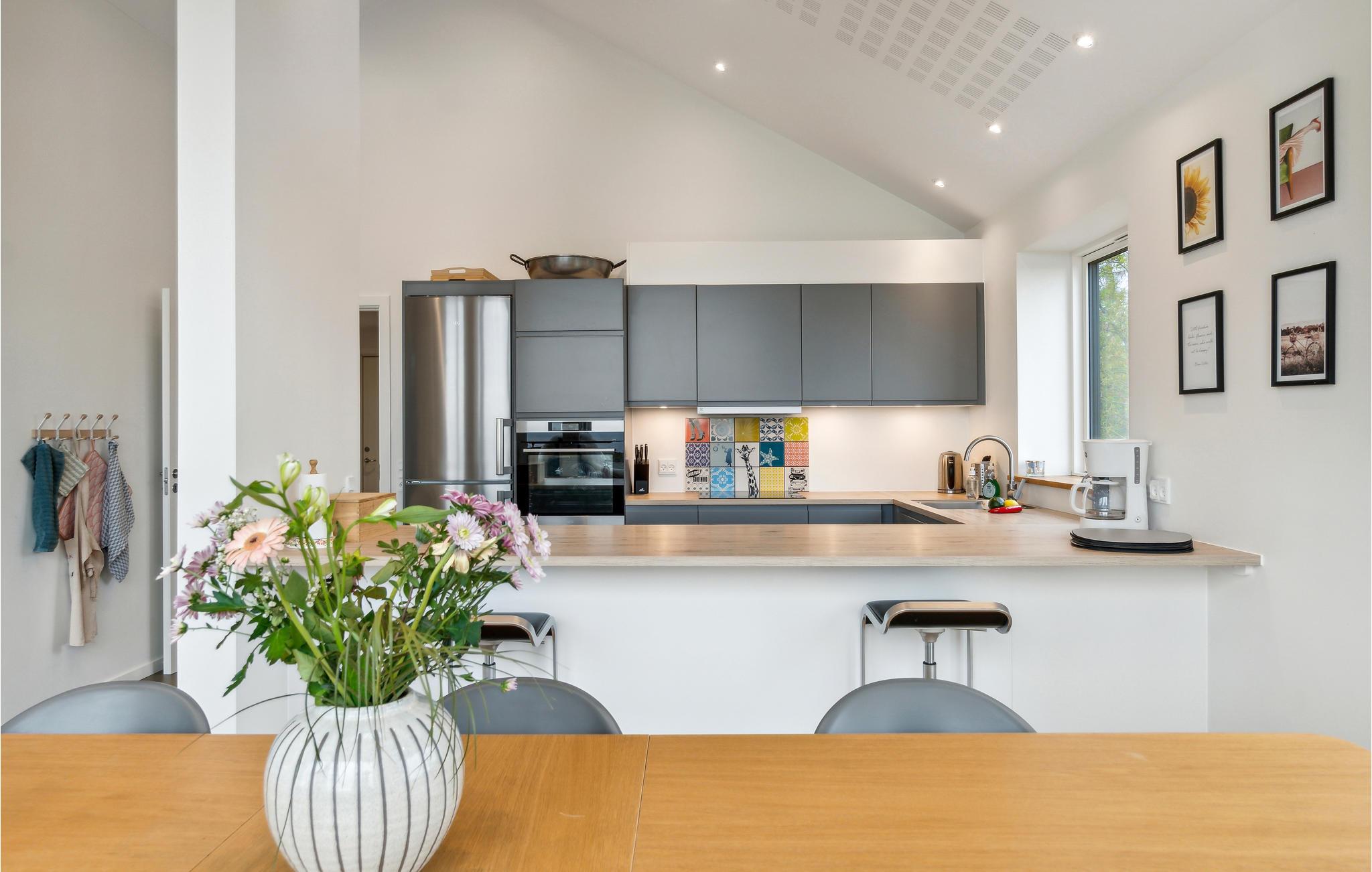 Welkom in dit aantrekkelijke huis, dat zijn gasten verwelkomt op een toplocatie op slechts een paar meter van het strand. Doe alsof je thuis bent in de lichte, moderne kamers, waar alles is gedaan om het jou en je geliefden naar de zin te maken. Ramen van vloer tot plafond zorgen voor een fantastisch uitzicht. Maak het jezelf gemakkelijk in een fauteuil met een boek en laat je blik over het water dwalen.