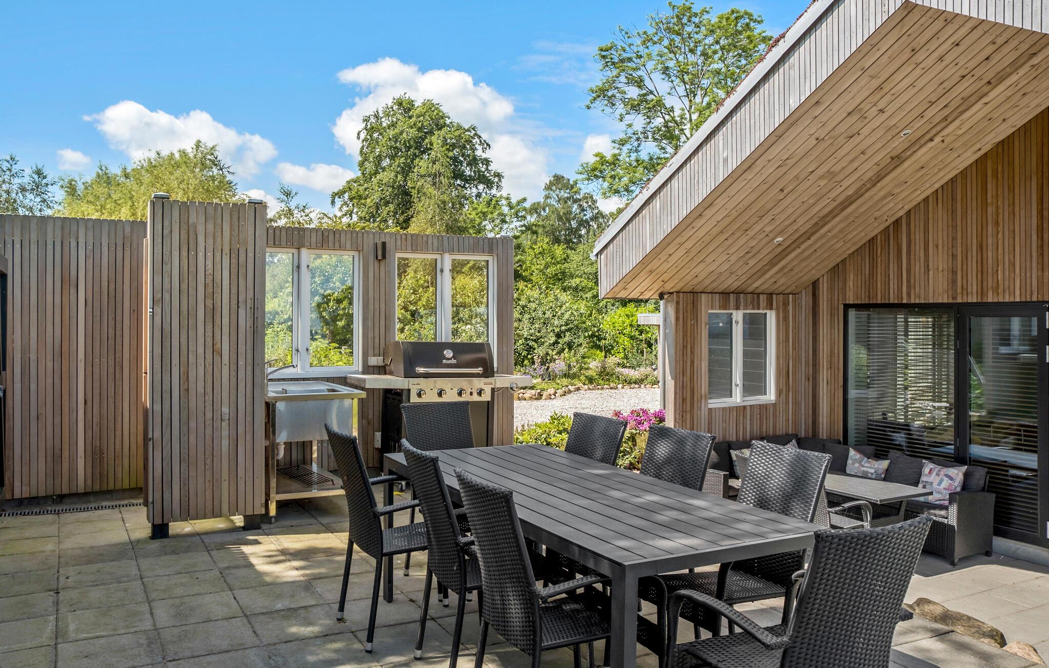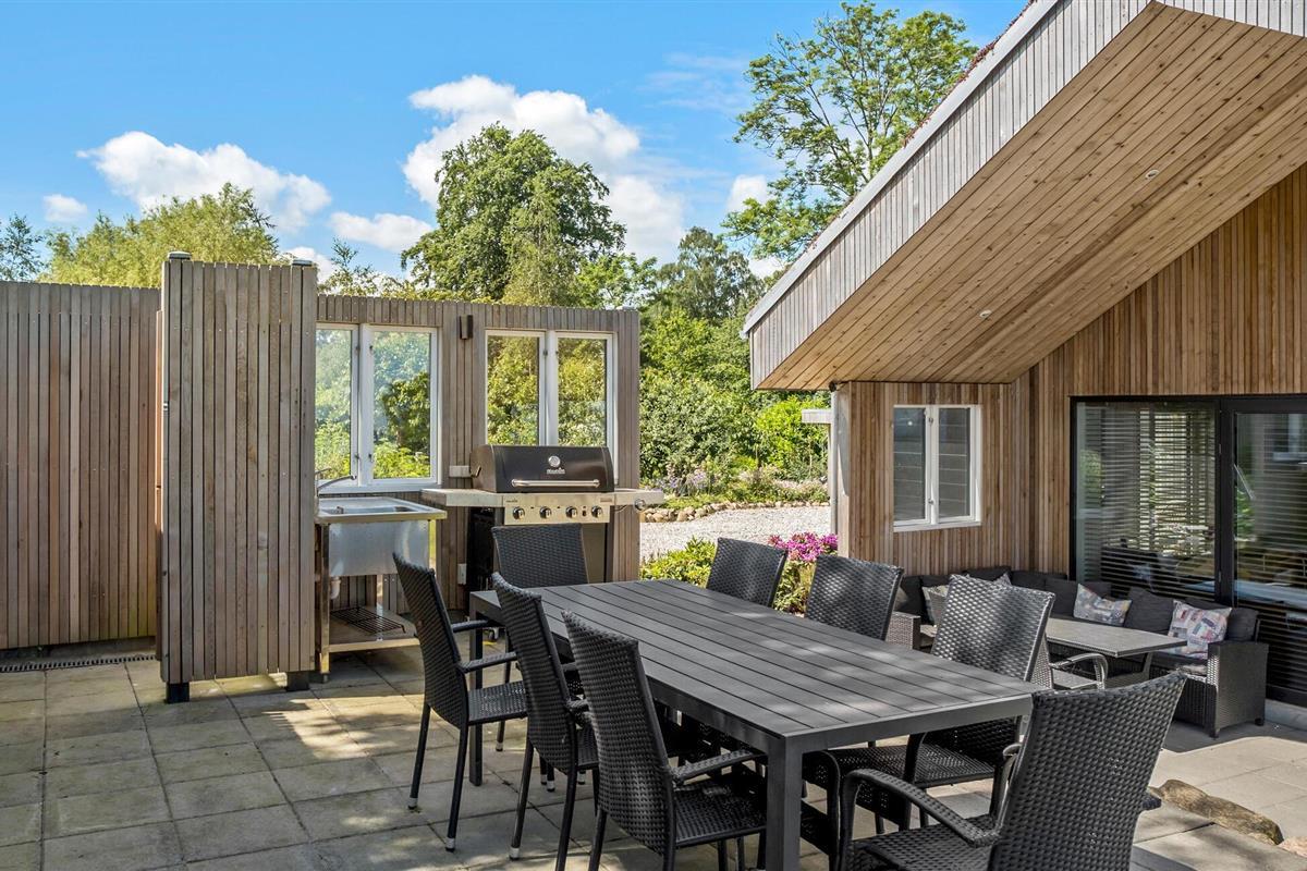 Ook buiten heeft dit huis veel te bieden. Talrijke entertainmentmogelijkheden voor jong en oud zorgen ervoor dat je je nooit hoeft te vervelen. Laat je betoveren door het uitzicht in de overkapping en op het terras, bereid heerlijke barbecuegerechten voor het hele gezin en verzamel de hele bende 's avonds rond een gezellig kampvuur.