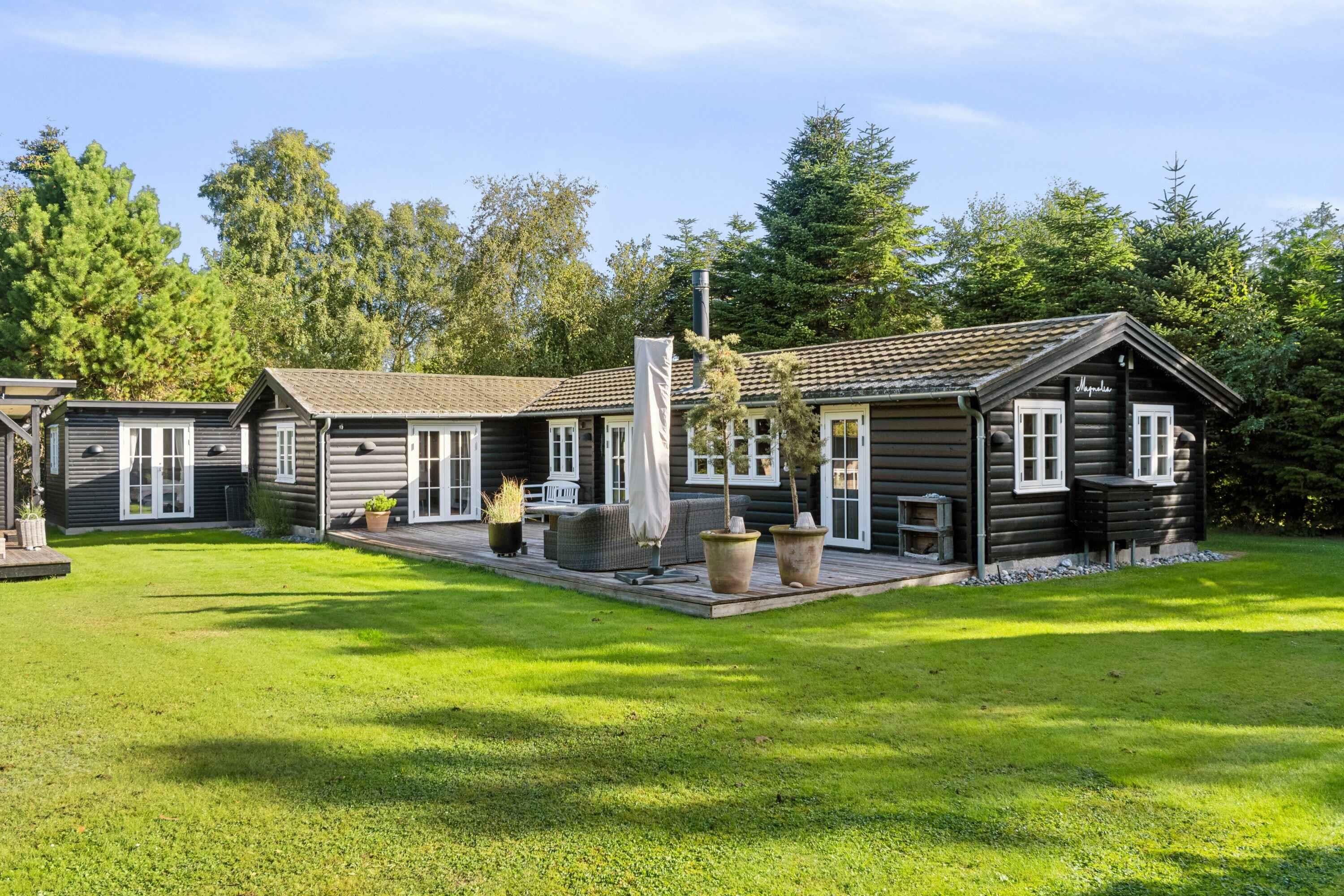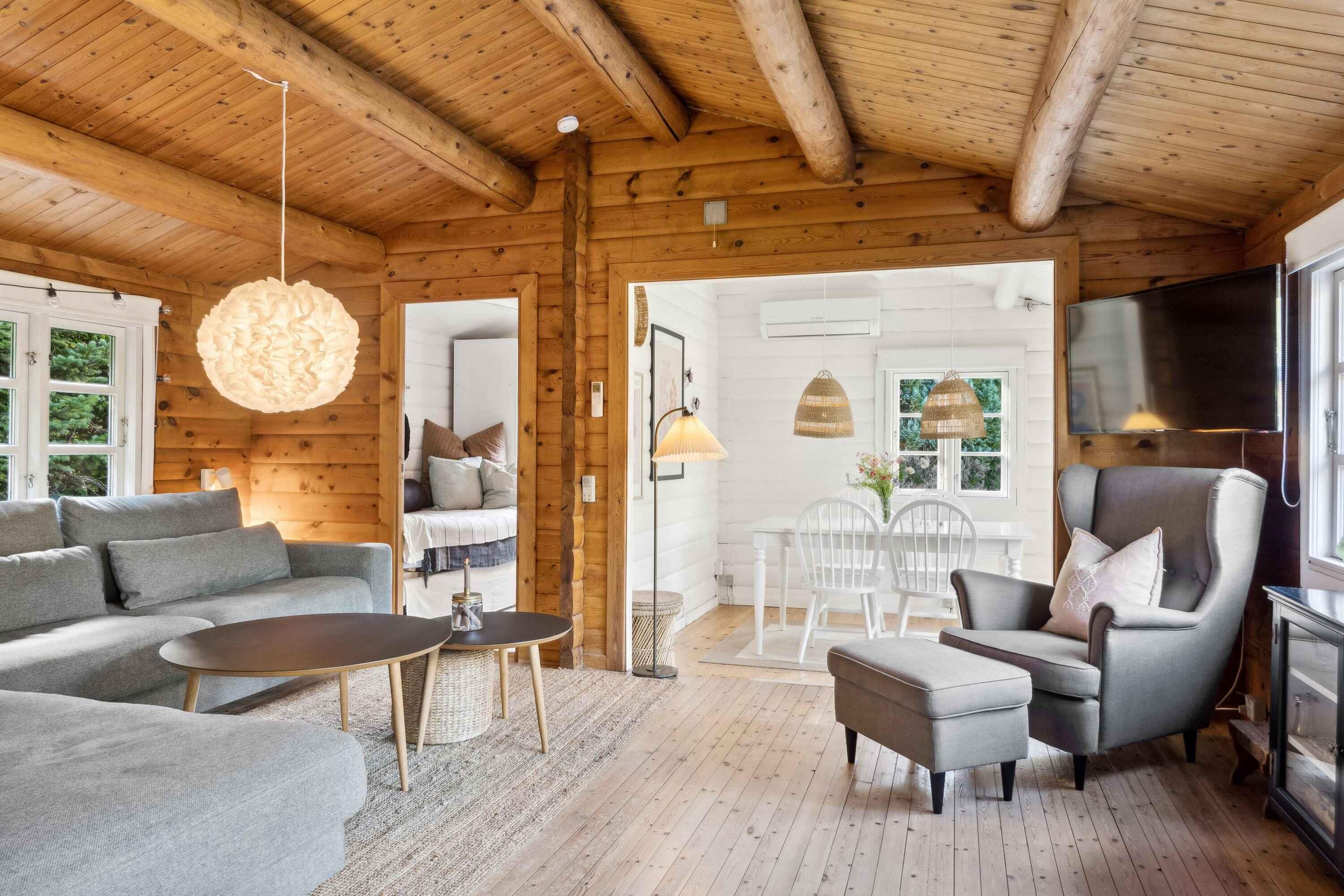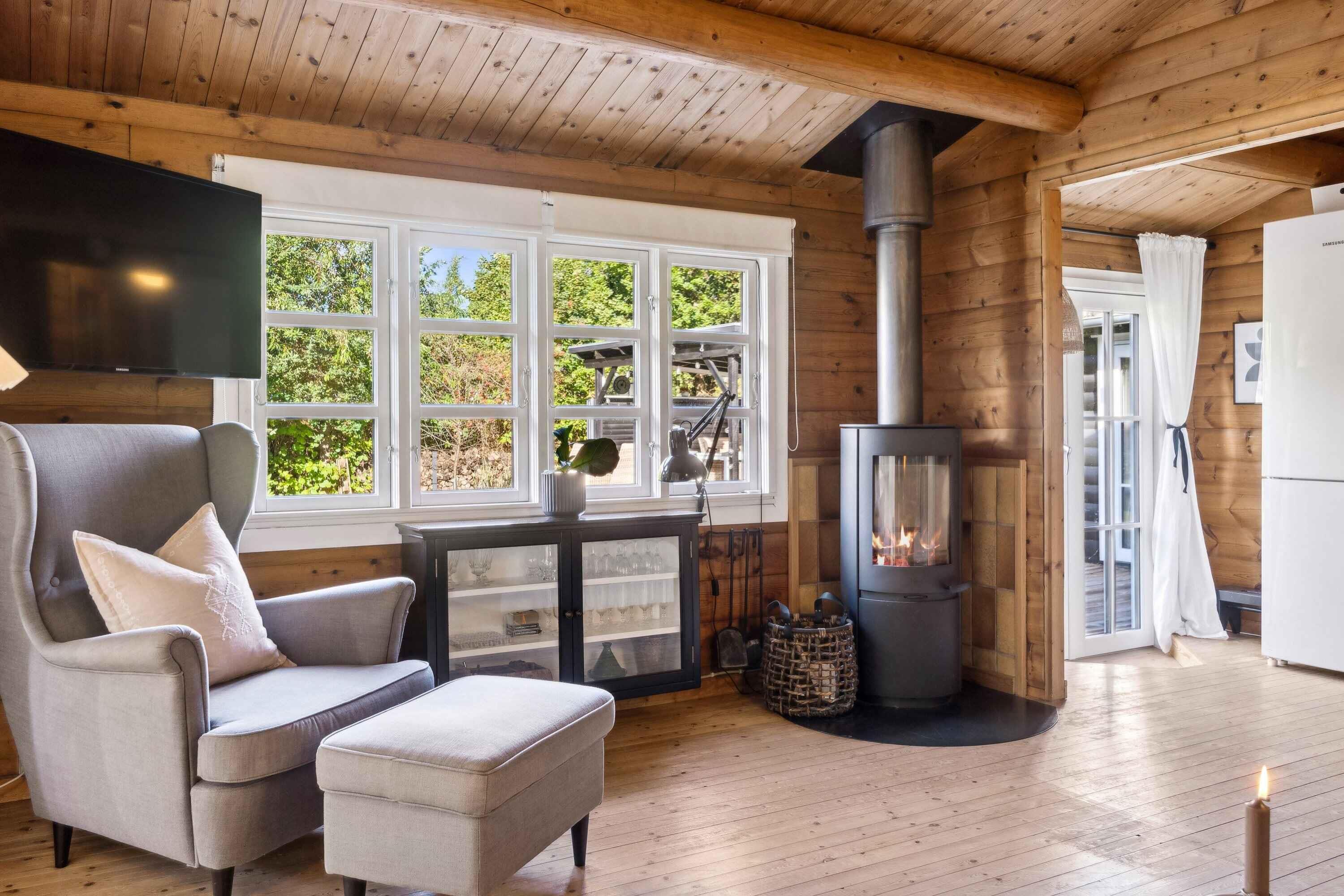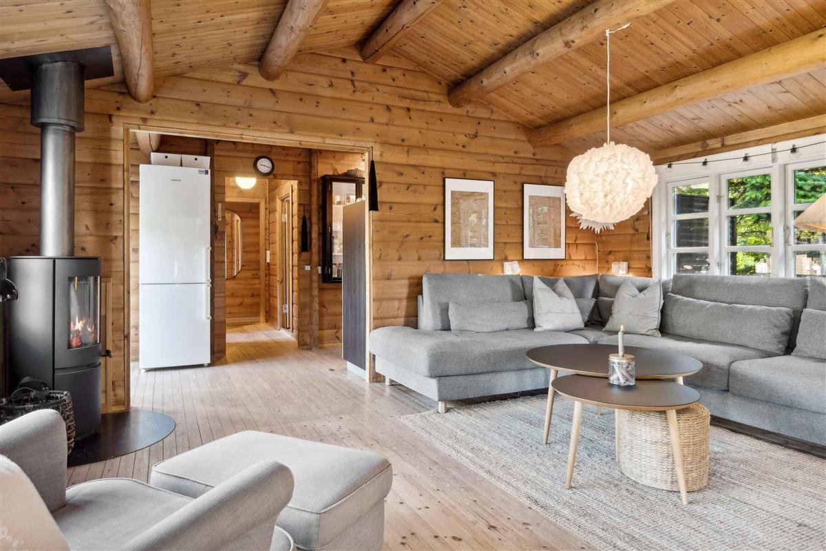 Deze charmante blokhut van 95 m² is ideaal voor grotere families of vriendengroepen, met vijf slaapkamers en negen slaapplaatsen. Het huis is smaakvol ingericht en heeft een gezellige sfeer. Met de kleine roeden in de ramen en een knusse open haard kun je de echte Deense "hygge" ervaren. Buiten biedt een groot houten terras ligstoelen, een overdekte zithoek en een barbecue. Geniet de hele dag van de zon, van je ochtendkoffie tot de late avonduren. Binnen is er een ruime woonkamer met houtkachel en internetverbinding. De keuken is goed uitgerust en dankzij de warmtepomp van het huis is het gemakkelijk om het hele jaar door een comfortabele temperatuur te behouden. Buiten kun je genieten van het mooie terras en een verfrissende buitendouche met warm en koud water. Er is voldoende gelegenheid om buiten te eten of te ontspannen in rustige omgevingen. Er is ook een laadpaal voor elektrische auto's. Slechts 500 meter van het huis ligt het strand, waar je kunt zwemmen of lange wandelingen langs het water kunt maken. De natuur in de omgeving nodigt uit tot buitenactiviteiten, het hele jaar door. Het huis ligt dicht bij zowel het strand als de stad. Hier vind je restaurants, cafés en lokale winkels die je kunt bezoeken na een ontspannen dag aan zee. De natuur rond het vakantiehuis is weelderig en ideaal voor lange fiets- en wandeltochten. Dit is de perfecte plek voor degenen die zowel bos als kust tijdens dezelfde vakantie willen ervaren. De omgeving biedt ook spannende activiteiten voor het hele gezin, van zwemmen tot natuurbelevenissen en culturele uitstapjes. Ontdek de lokale bezienswaardigheden of geniet van de rust en privacy van het vakantiehuis.