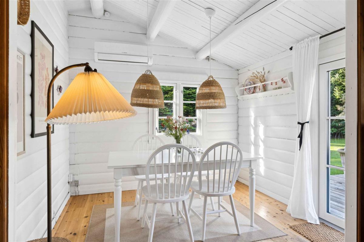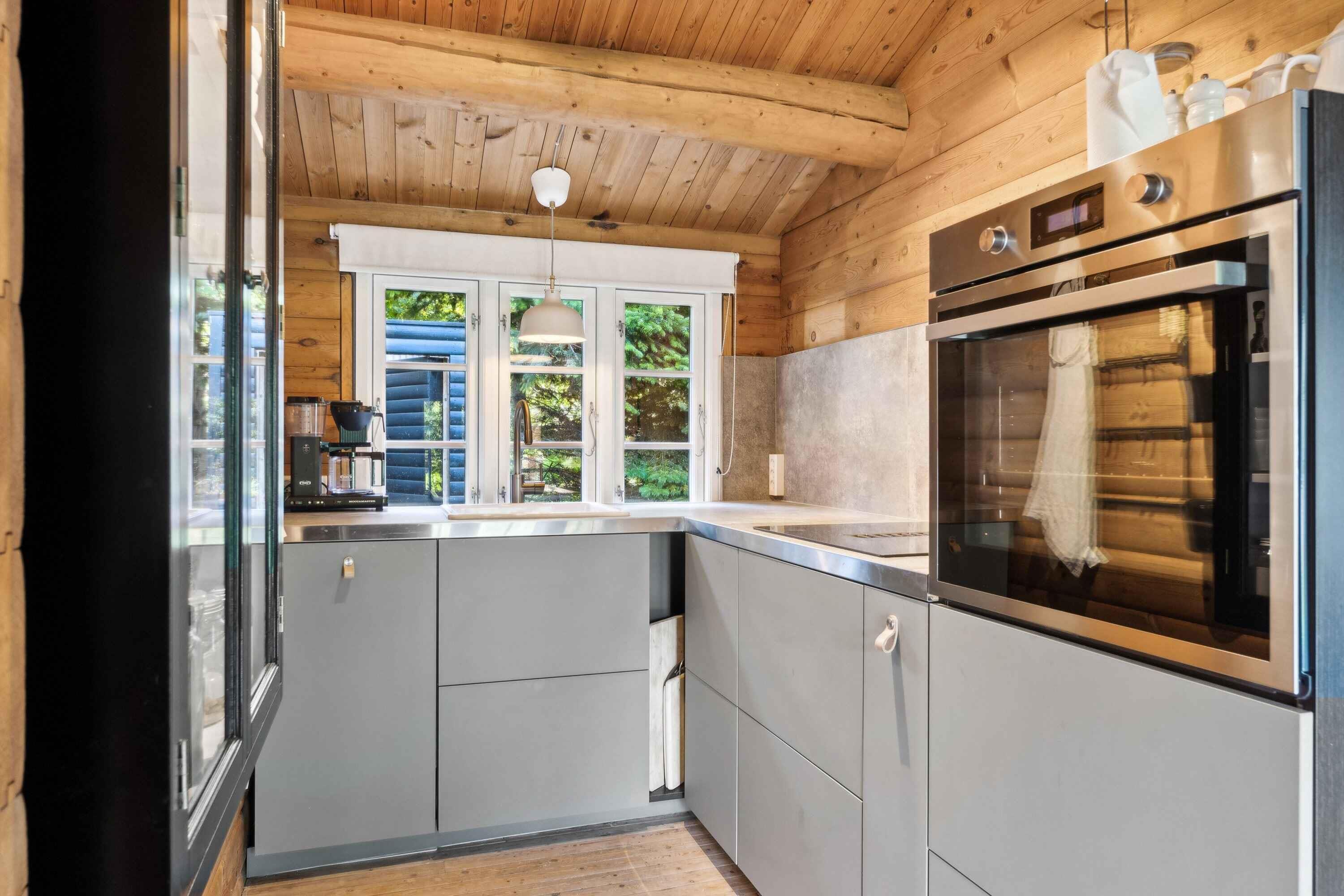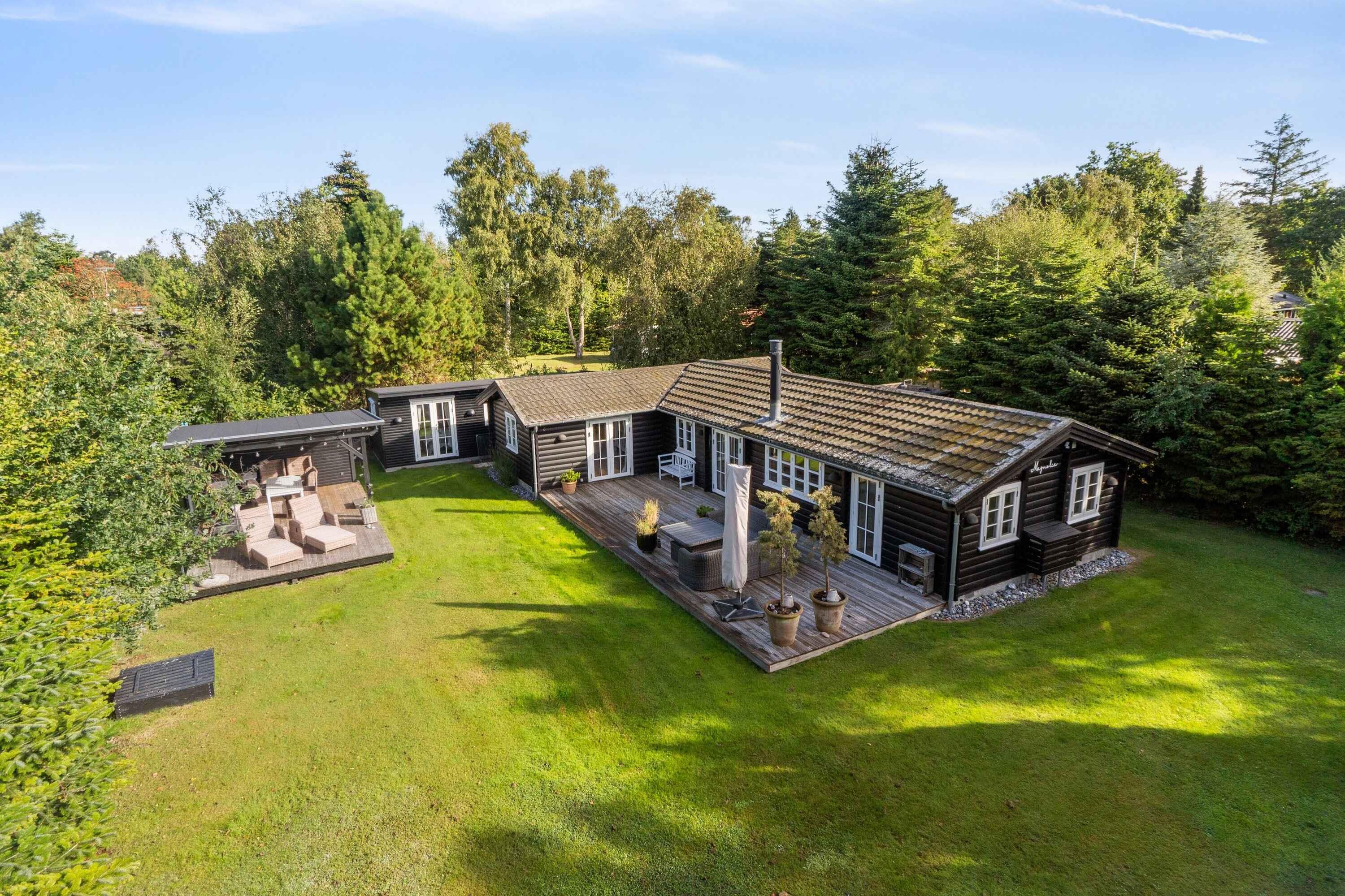Deze charmante blokhut van 95 m² is ideaal voor grotere families of vriendengroepen, met vijf slaapkamers en negen slaapplaatsen. Het huis is smaakvol ingericht en heeft een gezellige sfeer. Met de kleine roeden in de ramen en een knusse open haard kun je de echte Deense "hygge" ervaren. Buiten biedt een groot houten terras ligstoelen, een overdekte zithoek en een barbecue. Geniet de hele dag van de zon, van je ochtendkoffie tot de late avonduren. Binnen is er een ruime woonkamer met houtkachel en internetverbinding. De keuken is goed uitgerust en dankzij de warmtepomp van het huis is het gemakkelijk om het hele jaar door een comfortabele temperatuur te behouden. Buiten kun je genieten van het mooie terras en een verfrissende buitendouche met warm en koud water. Er is voldoende gelegenheid om buiten te eten of te ontspannen in rustige omgevingen. Er is ook een laadpaal voor elektrische auto's. Slechts 500 meter van het huis ligt het strand, waar je kunt zwemmen of lange wandelingen langs het water kunt maken. De natuur in de omgeving nodigt uit tot buitenactiviteiten, het hele jaar door. Het huis ligt dicht bij zowel het strand als de stad. Hier vind je restaurants, cafés en lokale winkels die je kunt bezoeken na een ontspannen dag aan zee. De natuur rond het vakantiehuis is weelderig en ideaal voor lange fiets- en wandeltochten. Dit is de perfecte plek voor degenen die zowel bos als kust tijdens dezelfde vakantie willen ervaren. De omgeving biedt ook spannende activiteiten voor het hele gezin, van zwemmen tot natuurbelevenissen en culturele uitstapjes. Ontdek de lokale bezienswaardigheden of geniet van de rust en privacy van het vakantiehuis.
