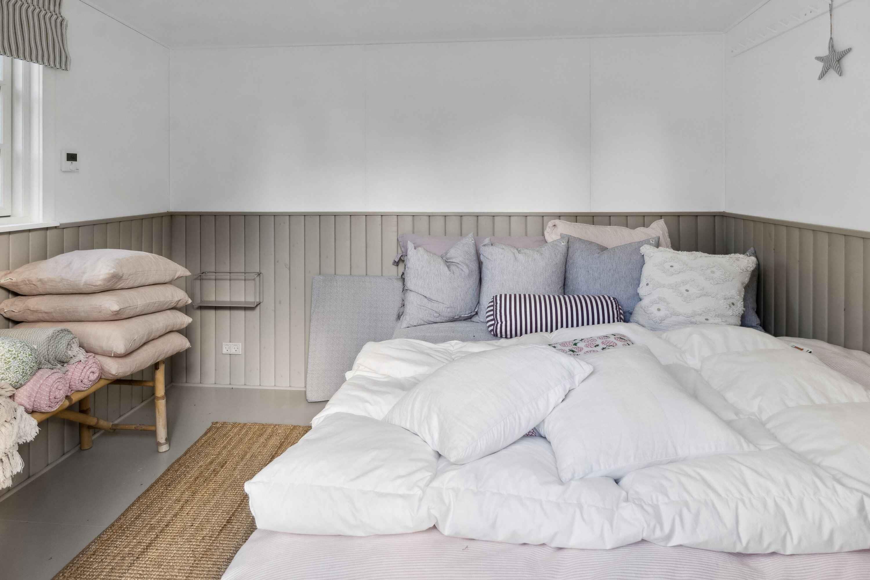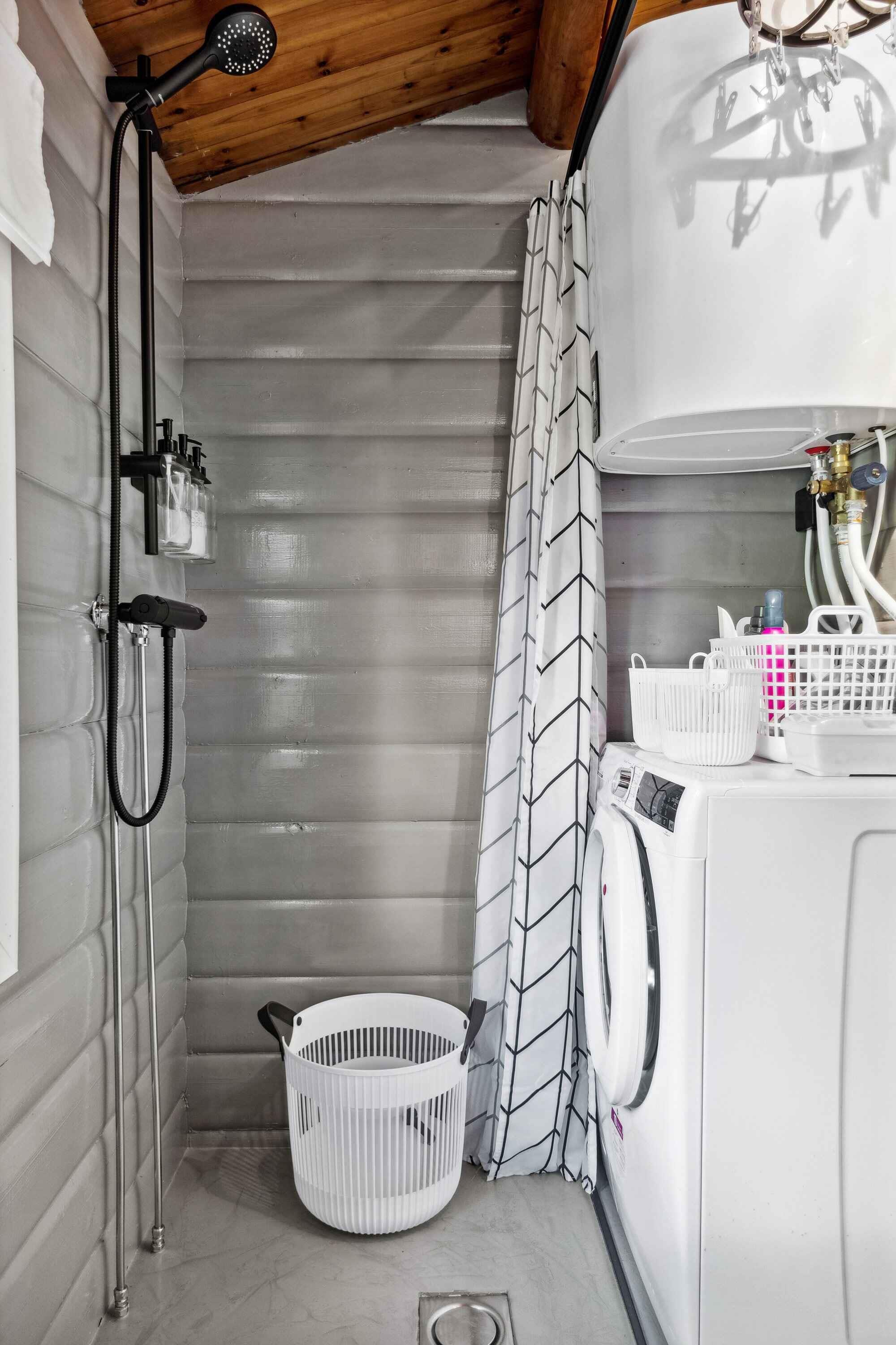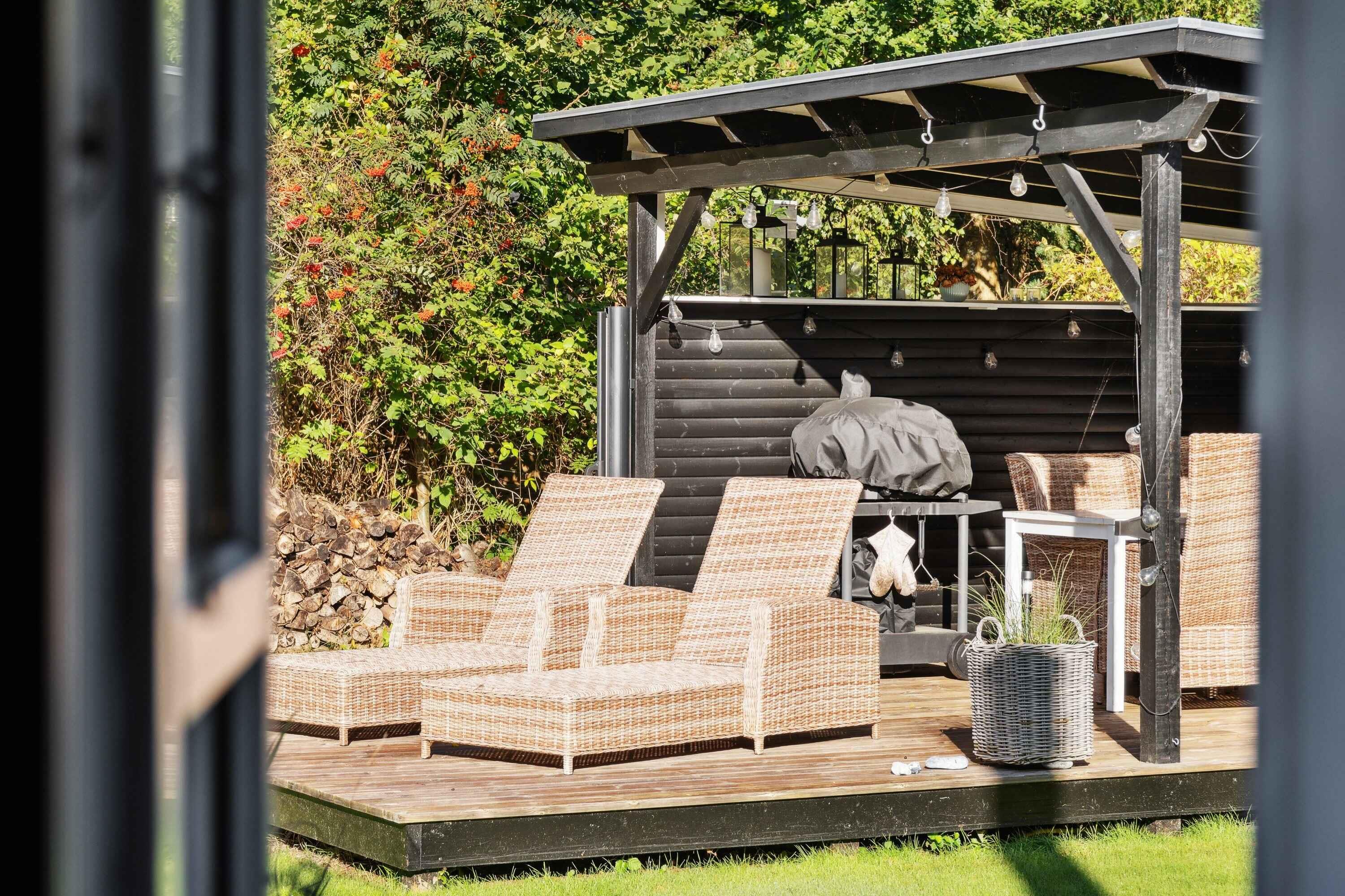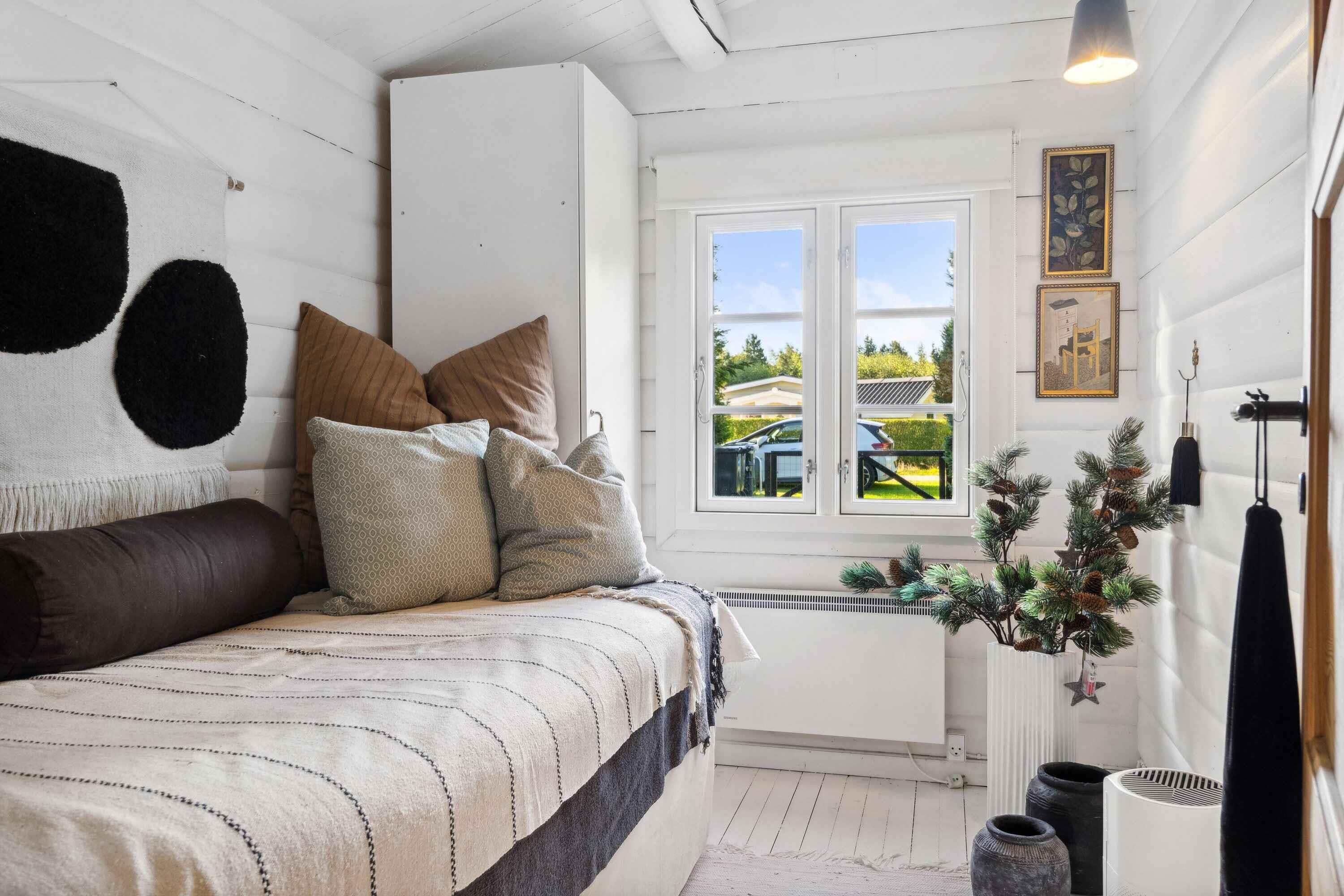 Deze charmante blokhut van 95 m² is ideaal voor grotere families of vriendengroepen, met vijf slaapkamers en negen slaapplaatsen. Het huis is smaakvol ingericht en heeft een gezellige sfeer. Met de kleine roeden in de ramen en een knusse open haard kun je de echte Deense "hygge" ervaren. Buiten biedt een groot houten terras ligstoelen, een overdekte zithoek en een barbecue. Geniet de hele dag van de zon, van je ochtendkoffie tot de late avonduren. Binnen is er een ruime woonkamer met houtkachel en internetverbinding. De keuken is goed uitgerust en dankzij de warmtepomp van het huis is het gemakkelijk om het hele jaar door een comfortabele temperatuur te behouden. Buiten kun je genieten van het mooie terras en een verfrissende buitendouche met warm en koud water. Er is voldoende gelegenheid om buiten te eten of te ontspannen in rustige omgevingen. Er is ook een laadpaal voor elektrische auto's. Slechts 500 meter van het huis ligt het strand, waar je kunt zwemmen of lange wandelingen langs het water kunt maken. De natuur in de omgeving nodigt uit tot buitenactiviteiten, het hele jaar door. Het huis ligt dicht bij zowel het strand als de stad. Hier vind je restaurants, cafés en lokale winkels die je kunt bezoeken na een ontspannen dag aan zee. De natuur rond het vakantiehuis is weelderig en ideaal voor lange fiets- en wandeltochten. Dit is de perfecte plek voor degenen die zowel bos als kust tijdens dezelfde vakantie willen ervaren. De omgeving biedt ook spannende activiteiten voor het hele gezin, van zwemmen tot natuurbelevenissen en culturele uitstapjes. Ontdek de lokale bezienswaardigheden of geniet van de rust en privacy van het vakantiehuis.