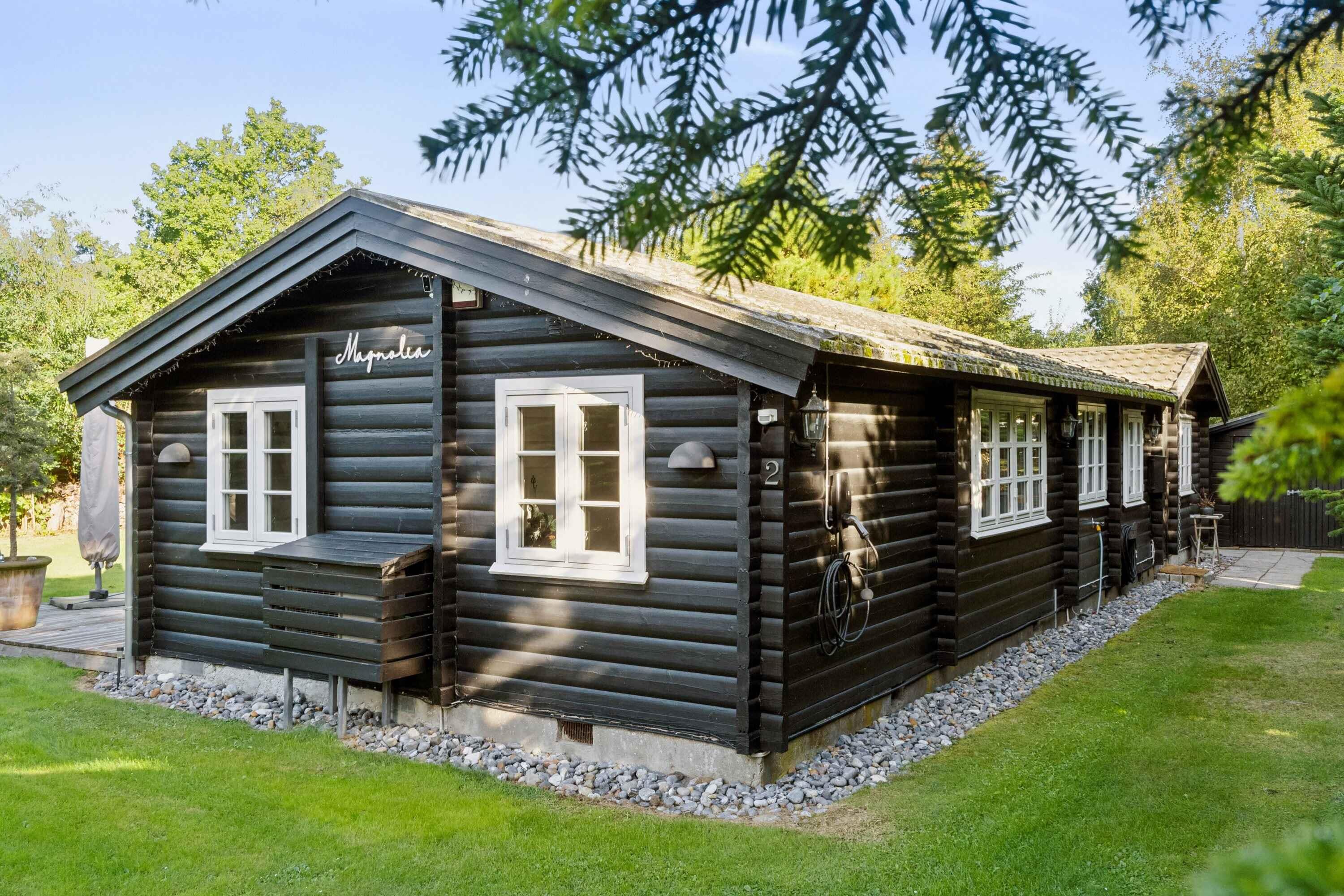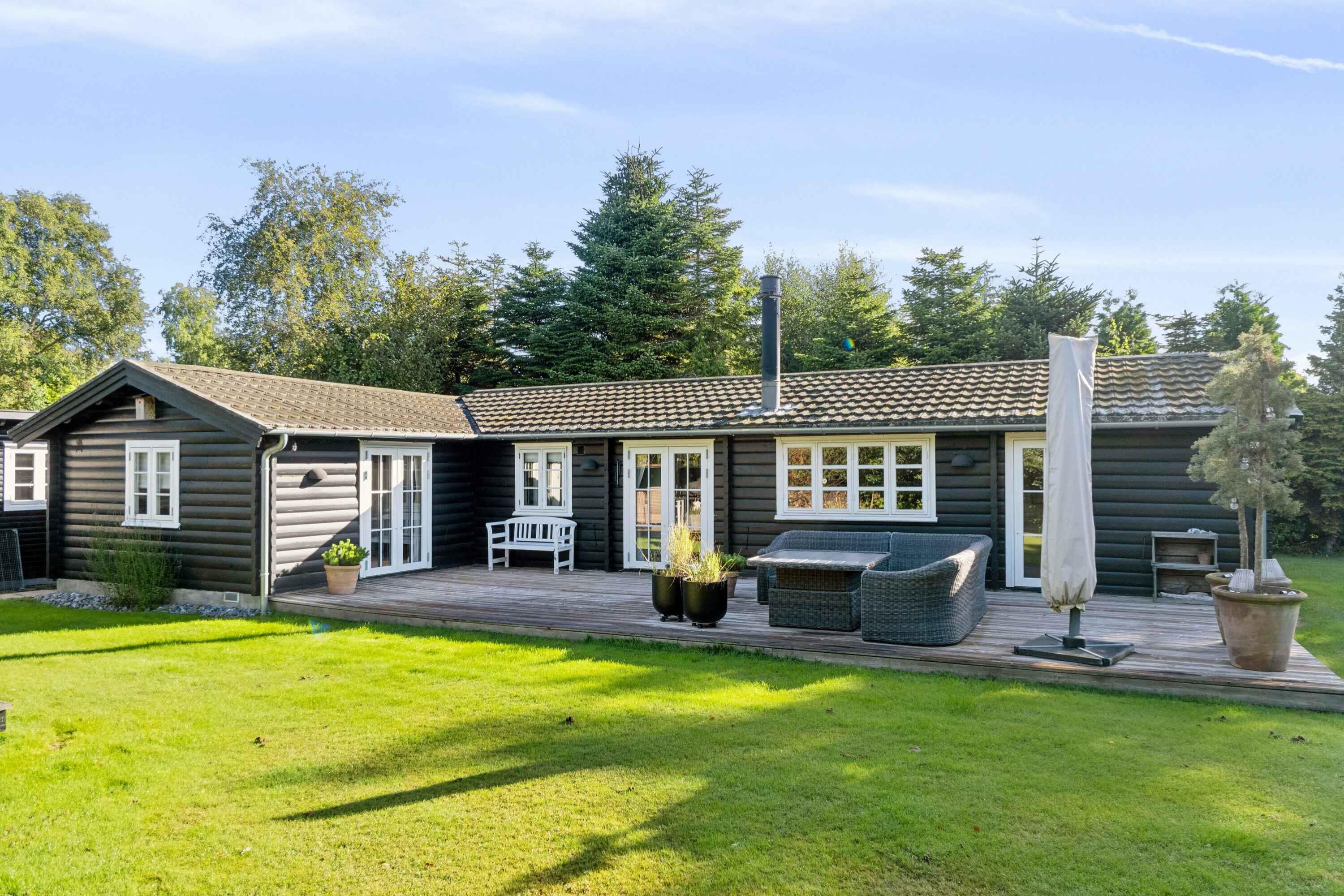 Charmante blokhut in Væggerløse met vijf slaapkamers, dicht bij strand en stad, ideaal voor een ontspannen vakantie.