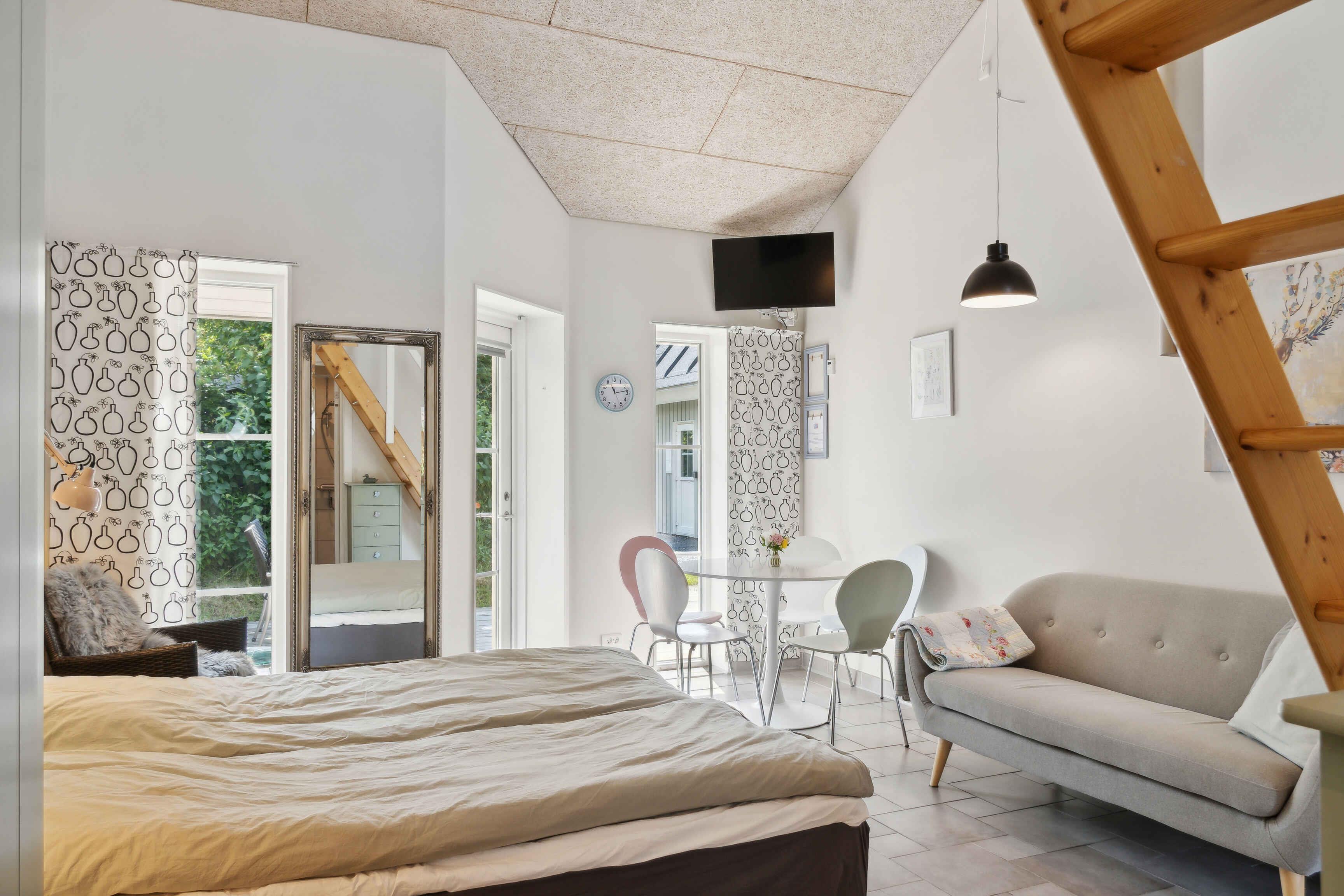 Dit charmante appartement, voorheen een deel van Restaurant Oldfruen, verwelkomt nu tot vijf gasten en is centraal gelegen in het populaire zomerstadje Marielyst. Dit goed uitgeruste appartement is een ideaal vertrekpunt voor een onvergetelijke vakantie-ervaring. Het appartement is voorzien van een eigen badkamer en toilet, evenals een volledig uitgeruste keuken, waardoor het gemakkelijk is om zelfgemaakte maaltijden te bereiden. Met een eigen parkeerplaats direct bij de keukendeur is het handig om bagage en boodschappen uit te laden. Gasten hebben ook toegang tot een eigen terras, perfect voor gezellige buitenmomenten, en een mooie gemeenschappelijke tuin waar kinderen veilig kunnen spelen. Binnen biedt het appartement een comfortabele inrichting met drie eenpersoonsbedden op de eerste verdieping en nog twee bedden in de woonkamer, die ook is uitgerust met een tv en draadloos internet. Er is ook parkeergelegenheid voor één auto recht voor het appartement, waardoor het gemakkelijk is om de omgeving te verkennen. Marielyst Strand, herhaaldelijk uitgeroepen tot het beste strand van Denemarken, evenals Marielyst Torv en lokale supermarkten, liggen allemaal op loopafstand van het appartement. Onderweg naar het strand kunnen gasten ook genieten van een leuke natuurspeeltuin. Of u nu houdt van actieve activiteiten, culinaire ervaringen, heerlijk ijs, historische bezienswaardigheden of natuurobservatie, er zijn volop mogelijkheden om fantastische herinneringen te creëren, allemaal binnen redelijke afstand. Met andere woorden, hier verblijft u midden in het hart van de actie. Let op: Niet te huur voor commercieel gebruik.