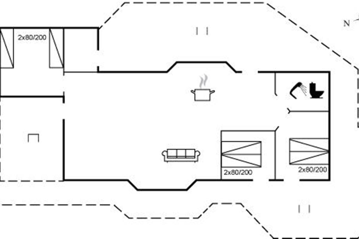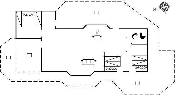 De vakantiewoning is gelegen op een 2665 m² groot natuural grond. Afstand tot de zee 350 m. Dichtstbijzijnde winkel 6000 m. Bij de vakantiewoning hoort 30 m² terras en 10 m² groot overdekt terras - waarvan in totaal 30 m² beschut terras. Parkeerplaats bij het huis.