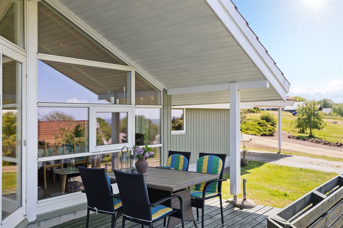 De vakantiewoning is gelegen op een 1500 m² groot natuural grond. Afstand tot de zee 400 m. Dichtstbijzijnde winkel 5000 m. Bij de vakantiewoning hoort 30 m² terras. Daarnaast is er een 8 m² groot overdekt terras. Carport ter beschikking. Het huis heeft een stopcontact voor het opladen van een elektrische auto. Oplaadstekker type 2. Met 11 kW-laadvermogen. Parkeerplaats bij het huis.