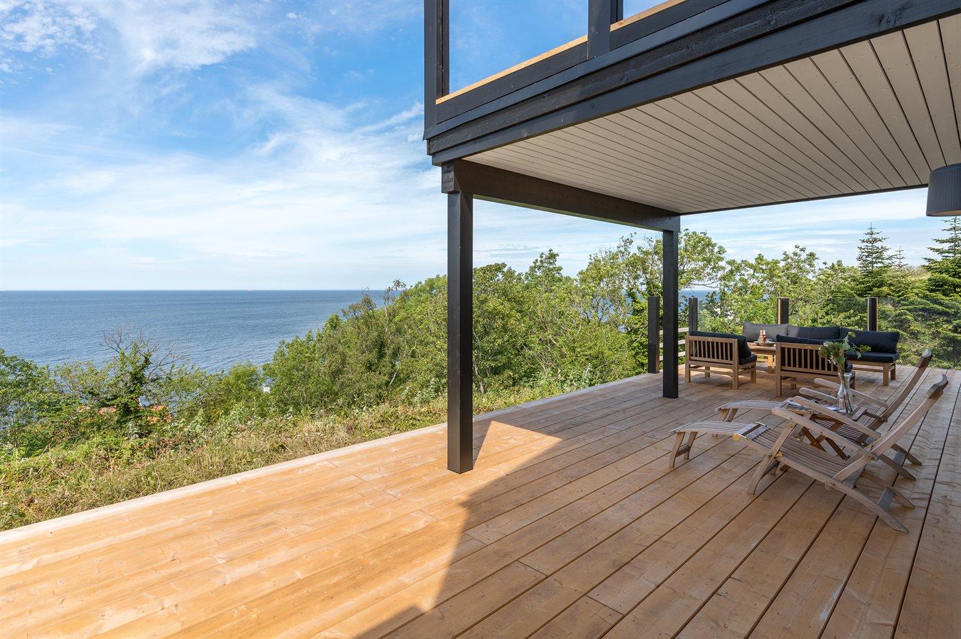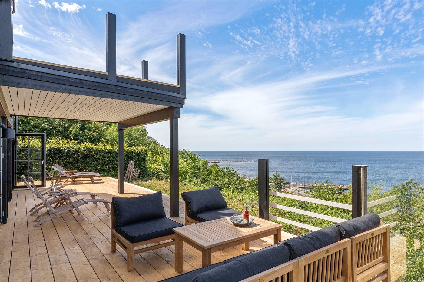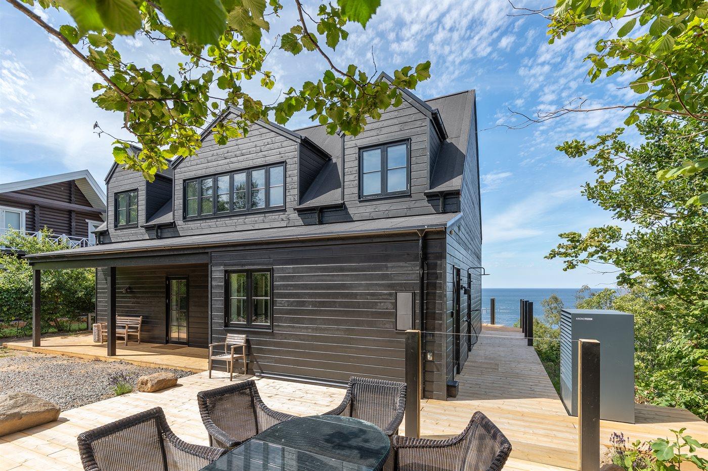 Modern vakantiehuis in Hasle met zeezicht, grote tuin en luxe voorzieningen voor een ontspannen verblijf.