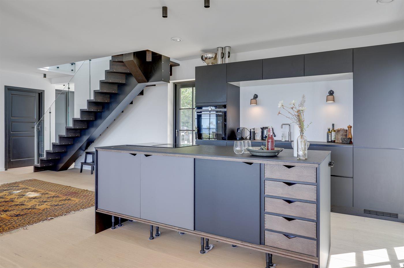 De keuken is uitgerust met koelkast Er is 4 inductiekookplaten, heteluchtoven en vaatwasser.