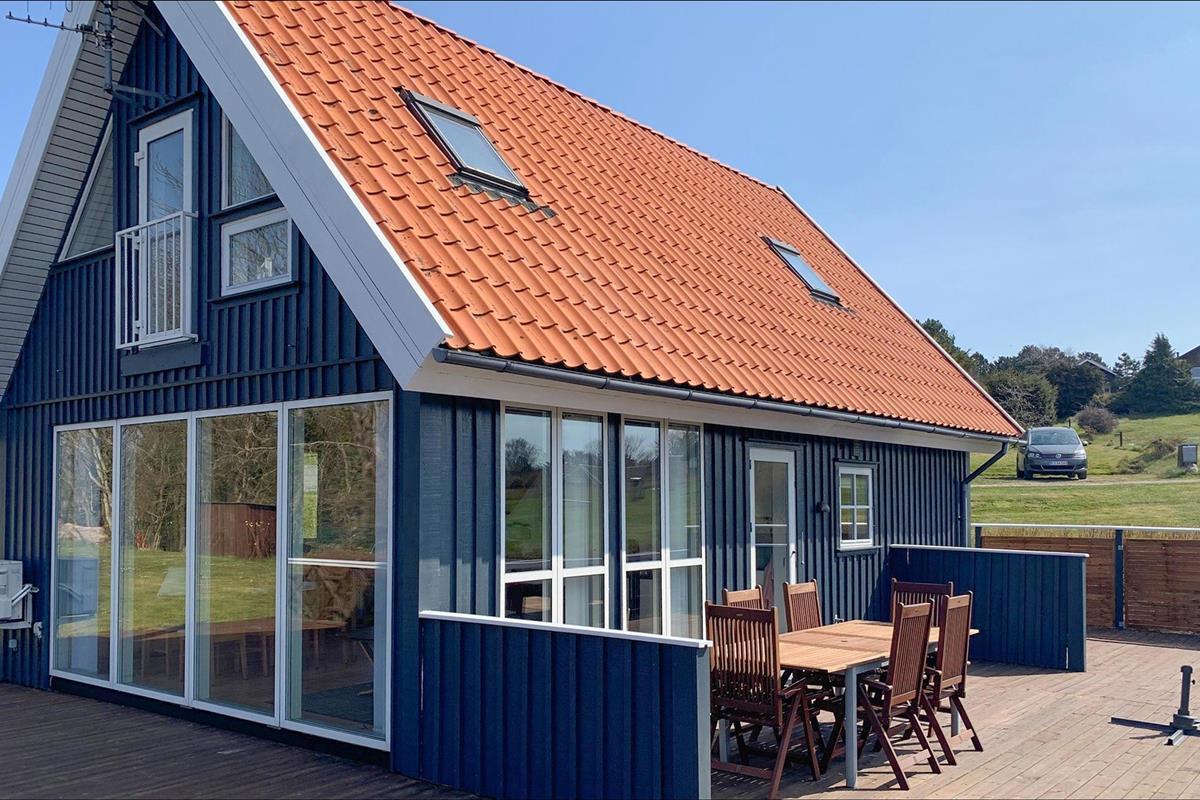 Comfortabel houten vakantiehuis met zeezicht, tuin en nabij de haven in Vang, Bornholm.
