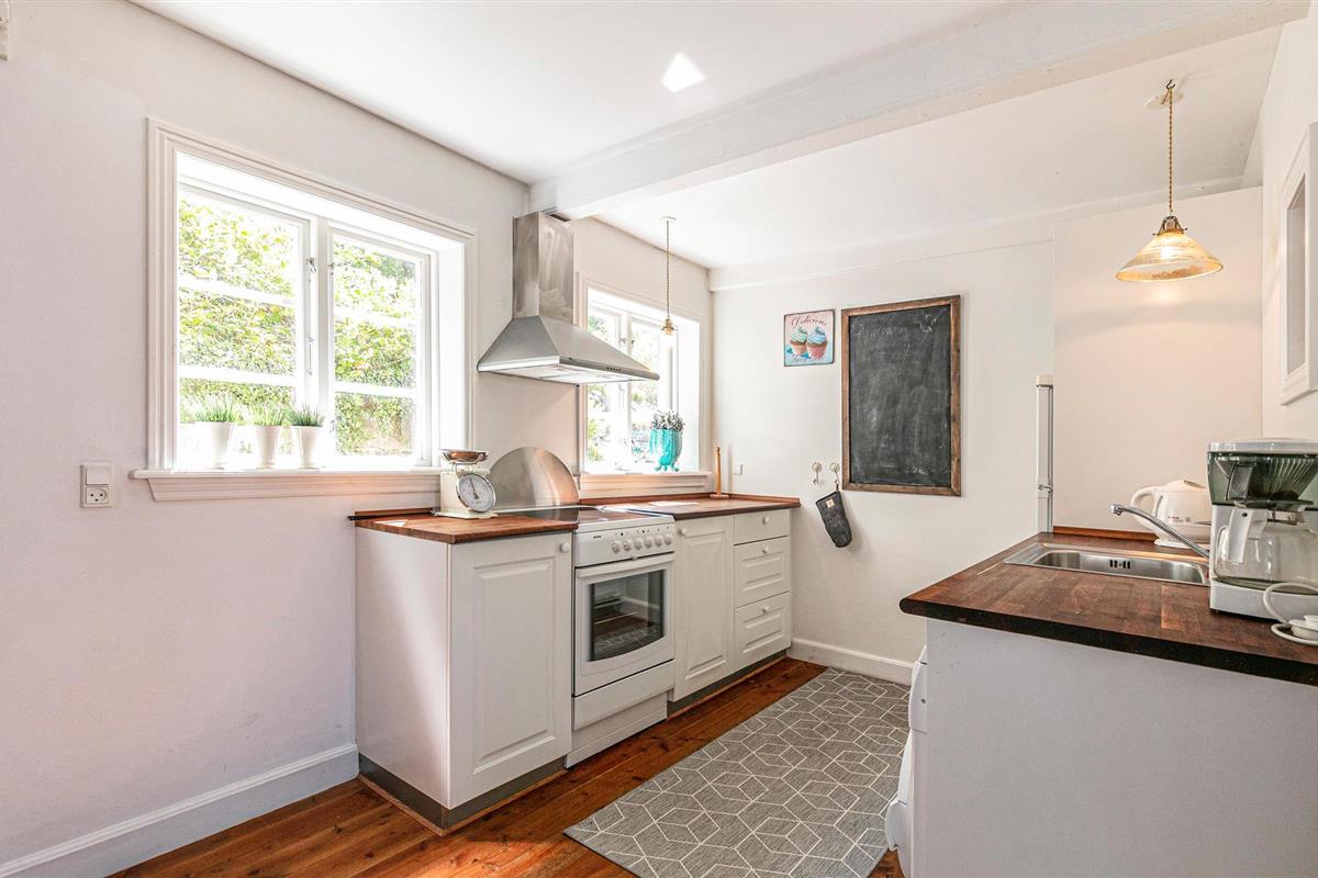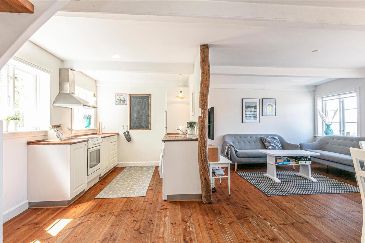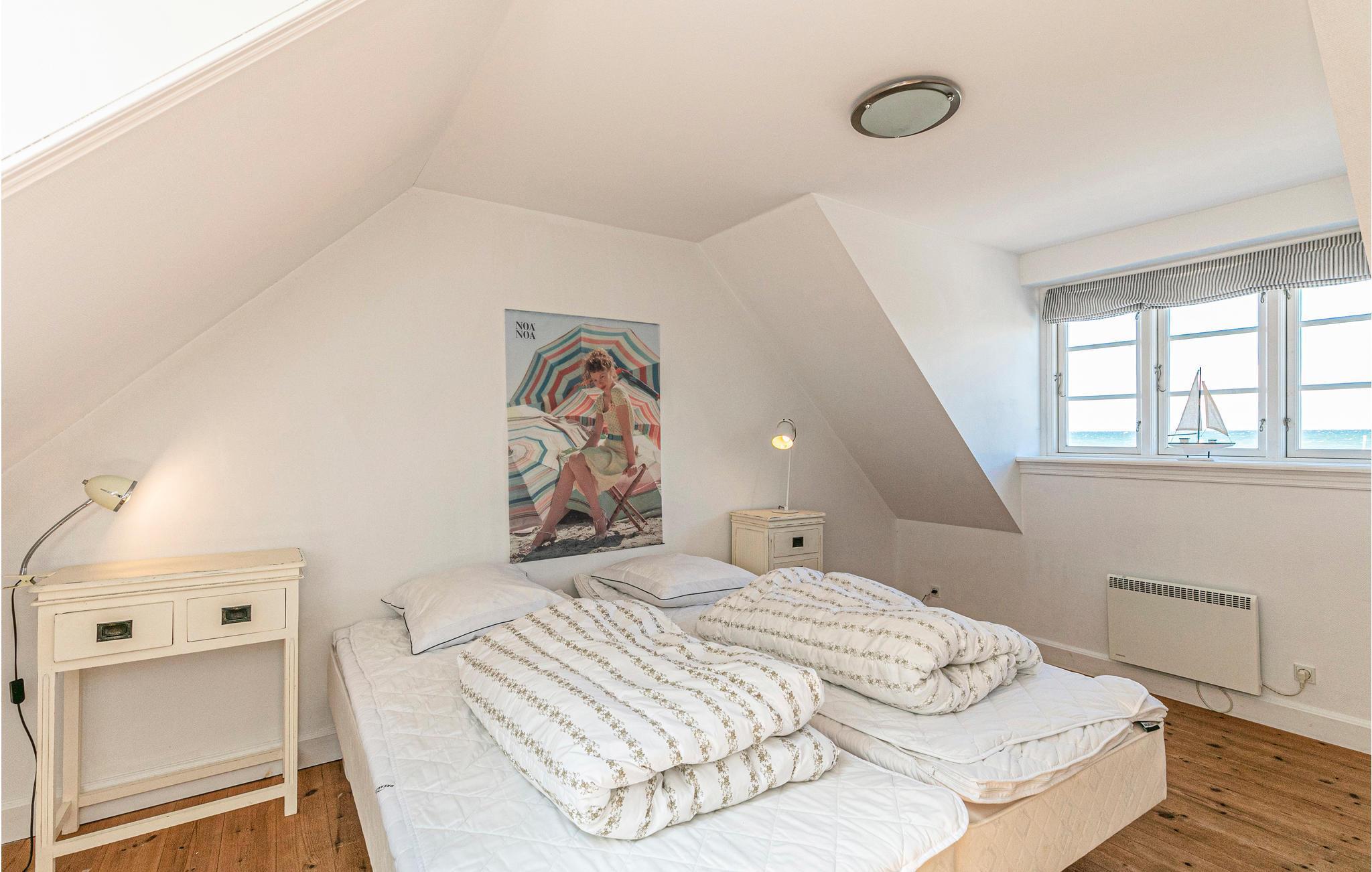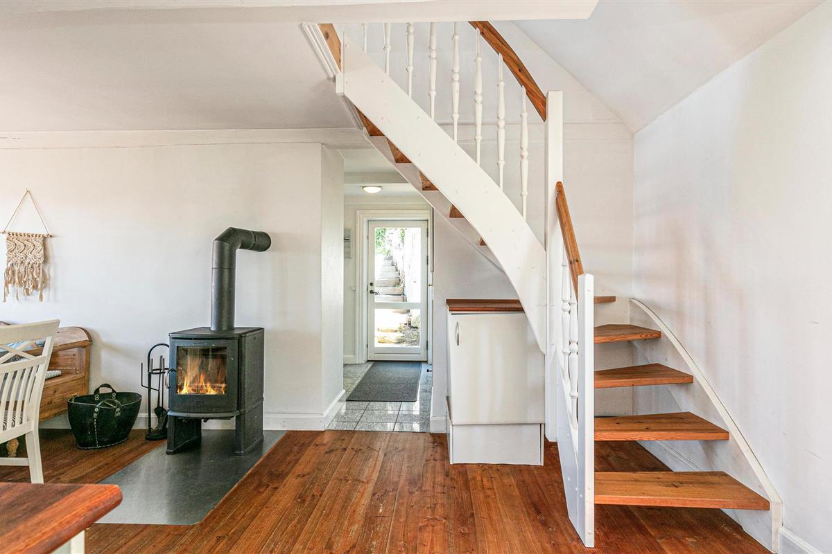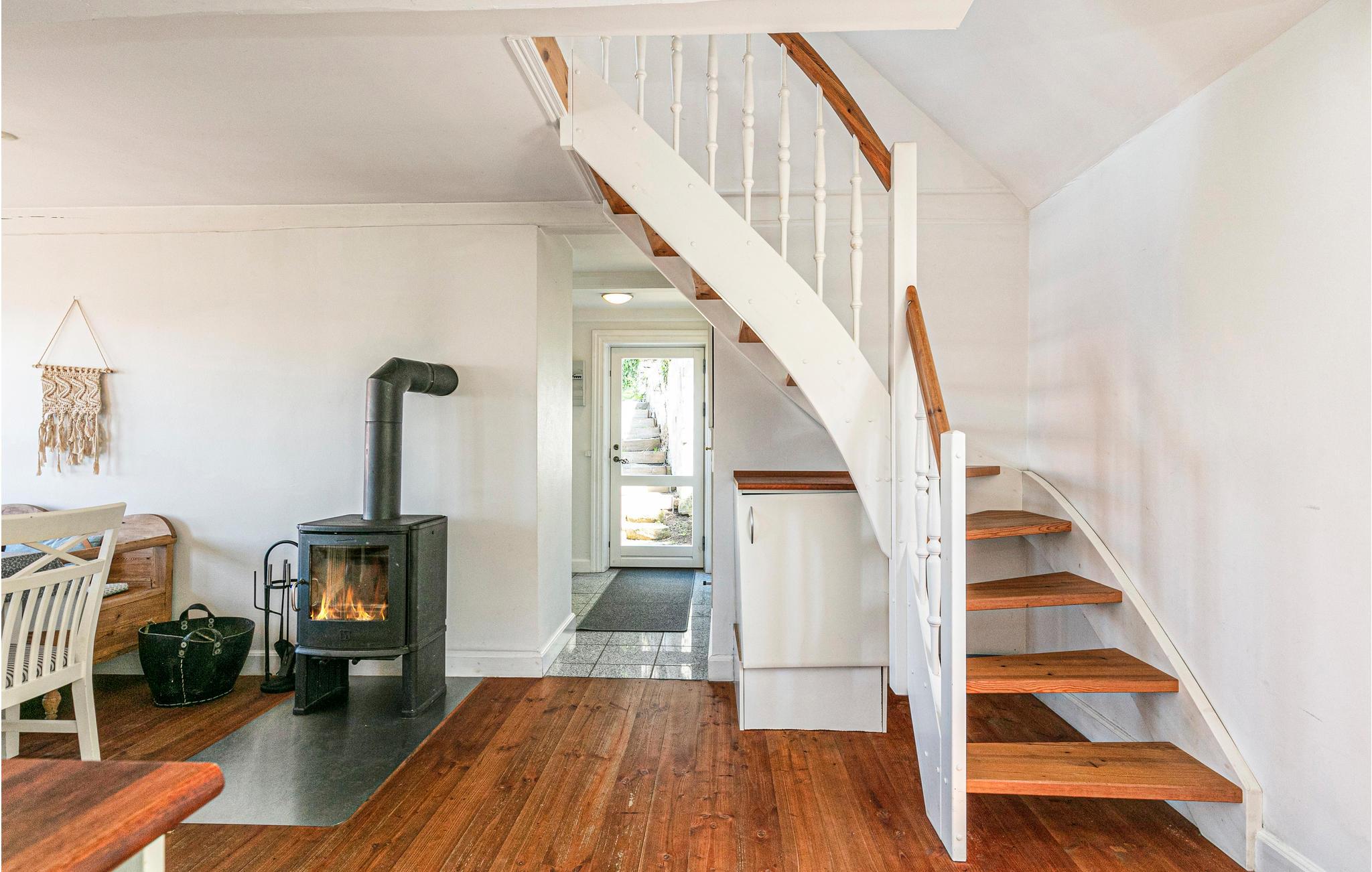 Het vakantiehuis is prachtig ingericht met klassieke meubels en zichtbare plafondbalken, evenals een houtkachel die bijdraagt aan een gezellige sfeer in het huis. Vanuit het vakantiehuis kunt u genieten van het prachtige panoramische uitzicht op de Oostzee en een gezellige jachthaven in Vang. De twee slaapkamers boven hebben gezellige, schuine wanden. Slaapkamer 2 is zonder deur.