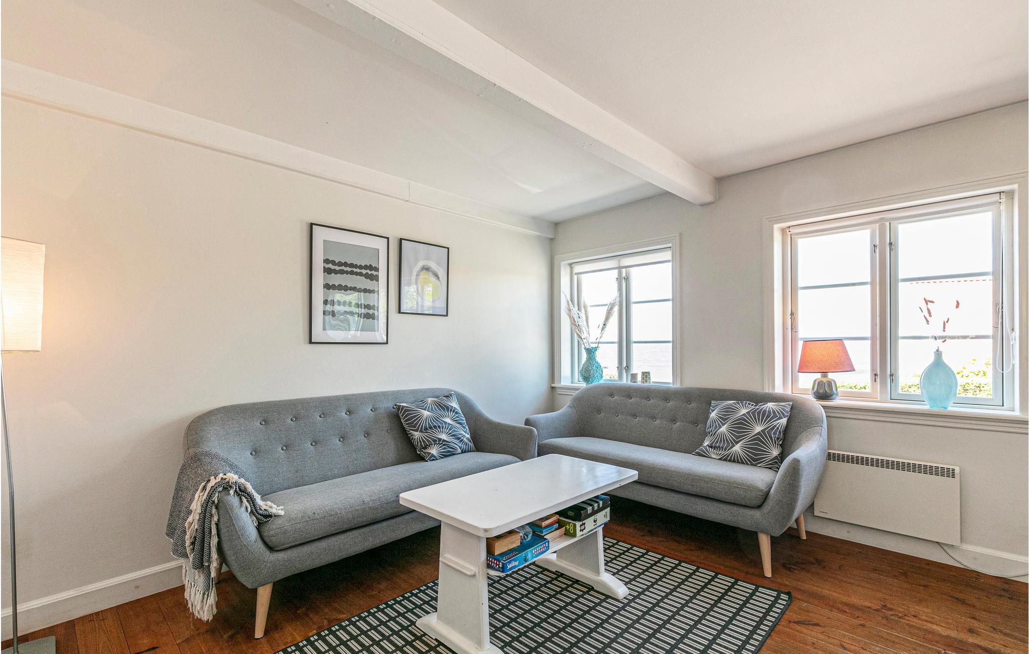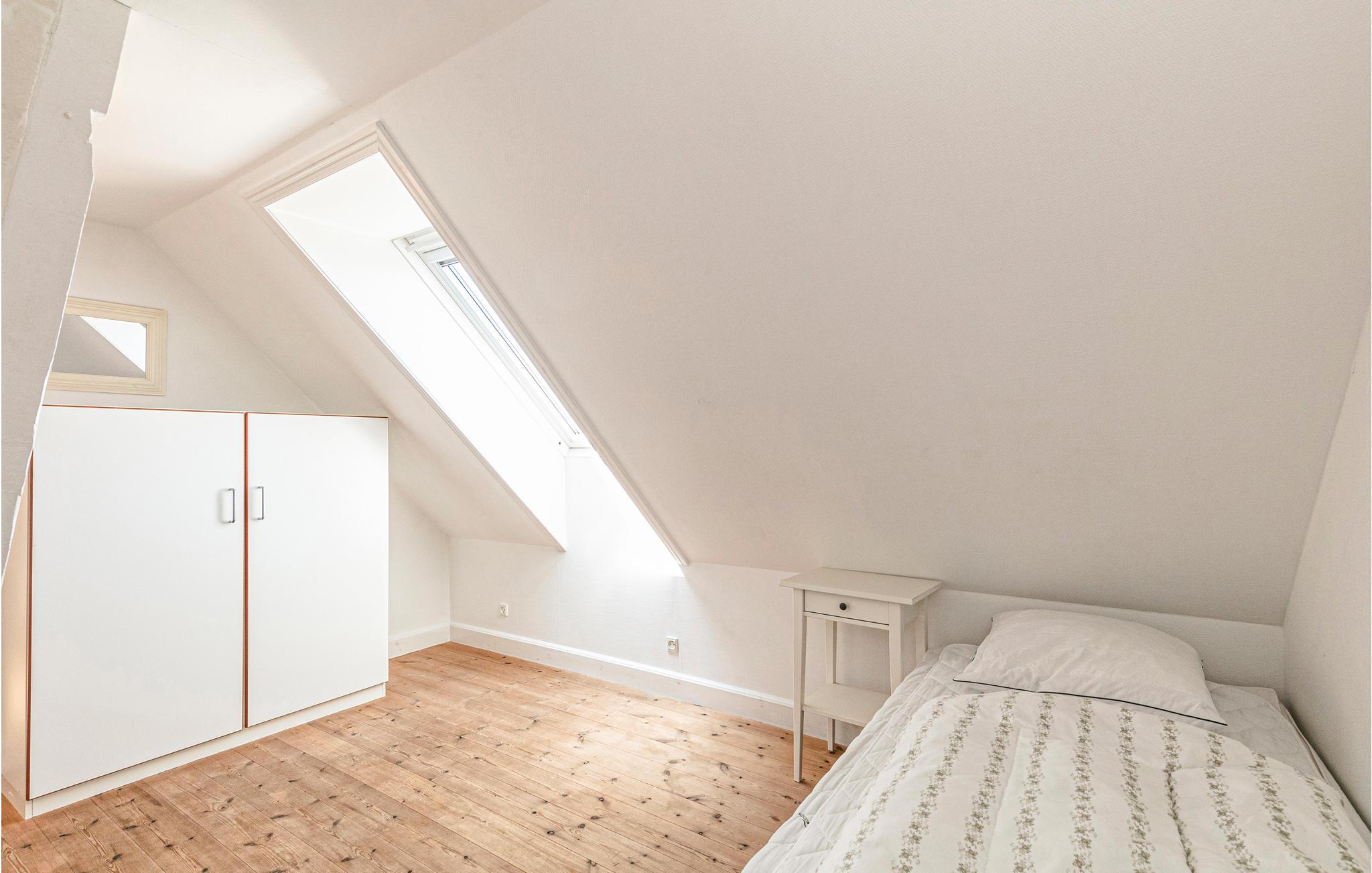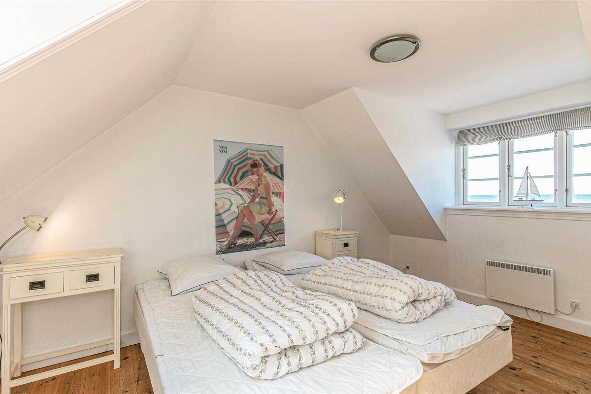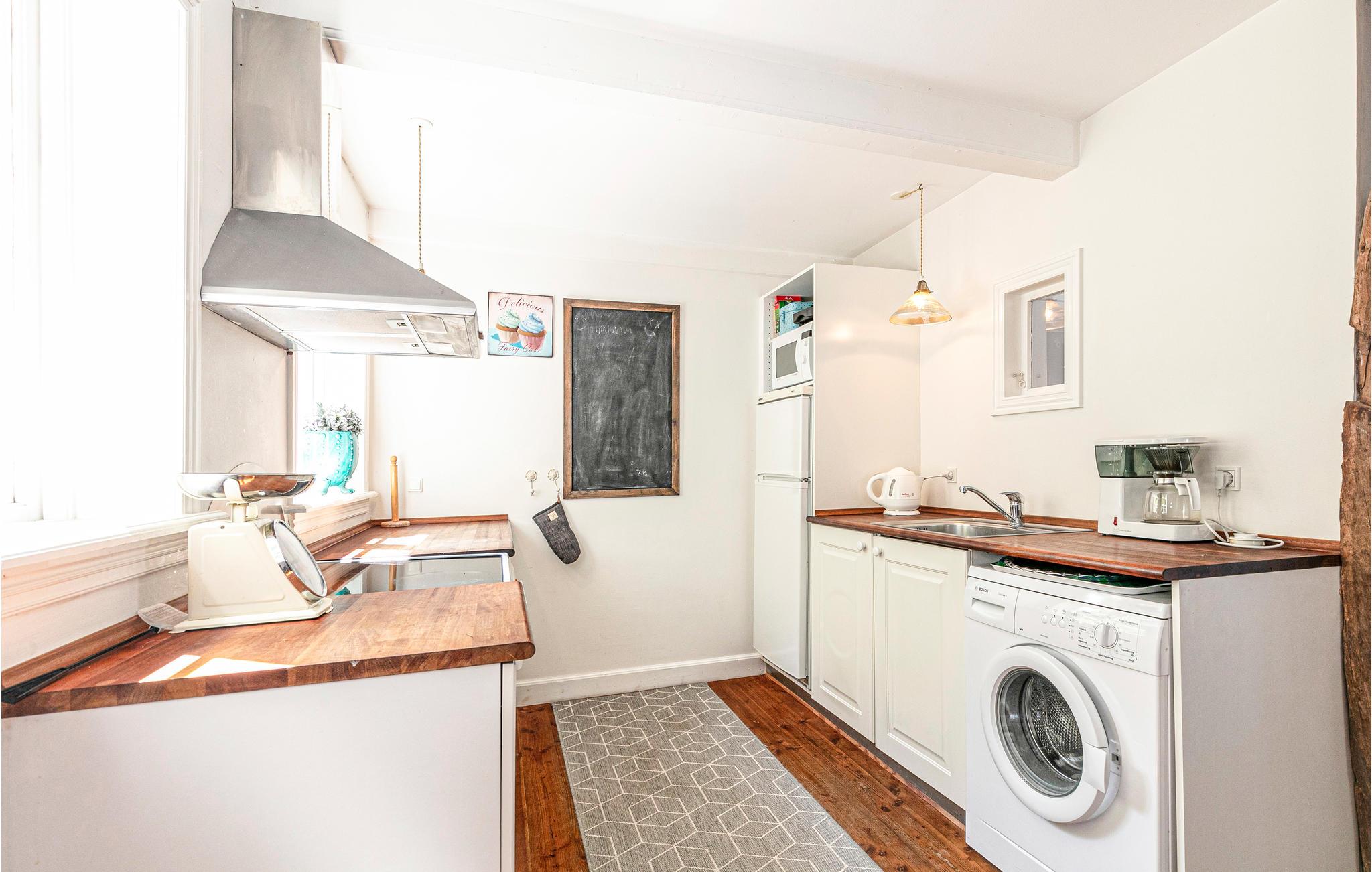 Het vakantiehuis is prachtig ingericht met klassieke meubels en zichtbare plafondbalken, evenals een houtkachel die bijdraagt aan een gezellige sfeer in het huis. Vanuit het vakantiehuis kunt u genieten van het prachtige panoramische uitzicht op de Oostzee en een gezellige jachthaven in Vang. De twee slaapkamers boven hebben gezellige, schuine wanden. Slaapkamer 2 is zonder deur.