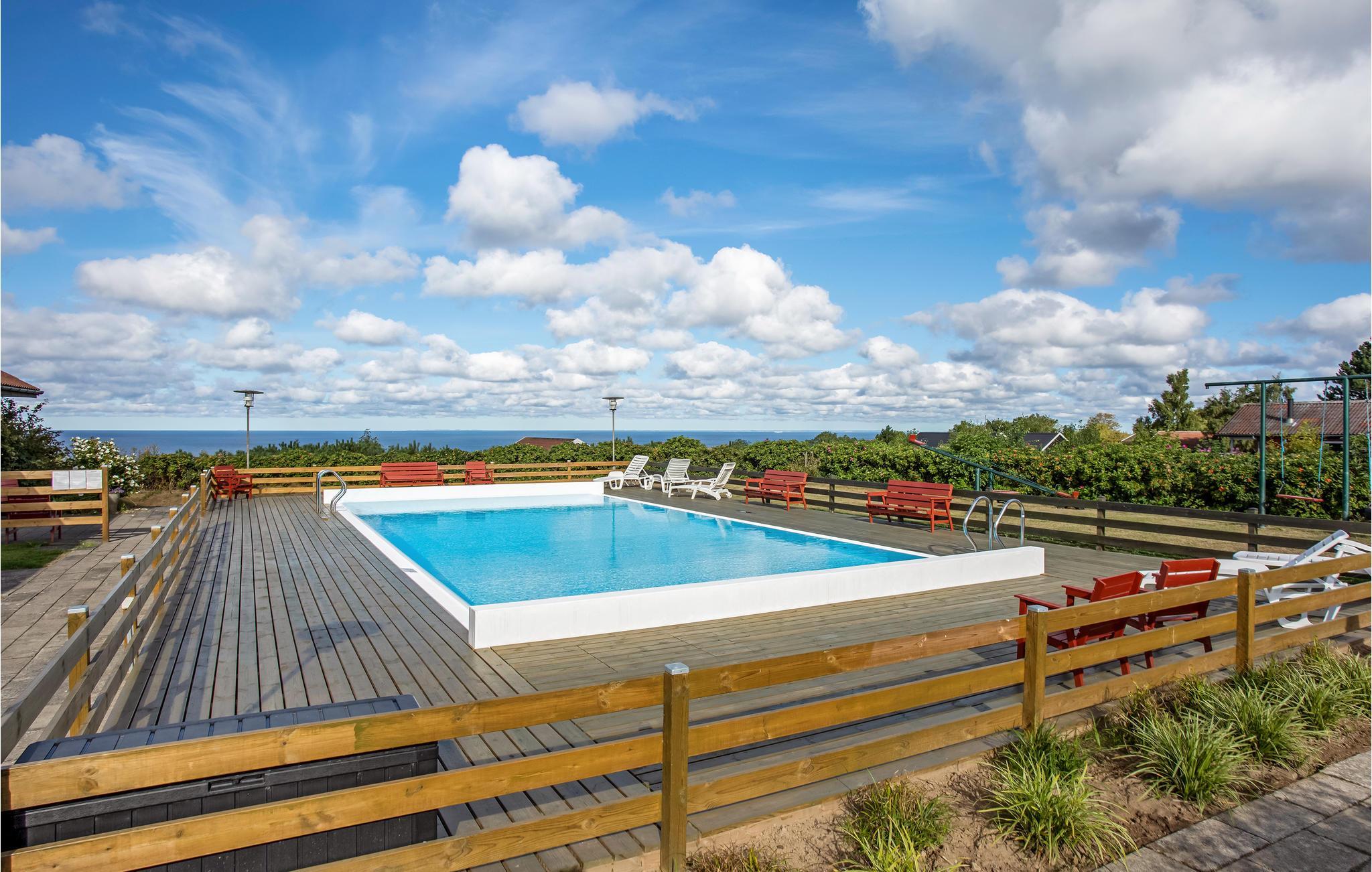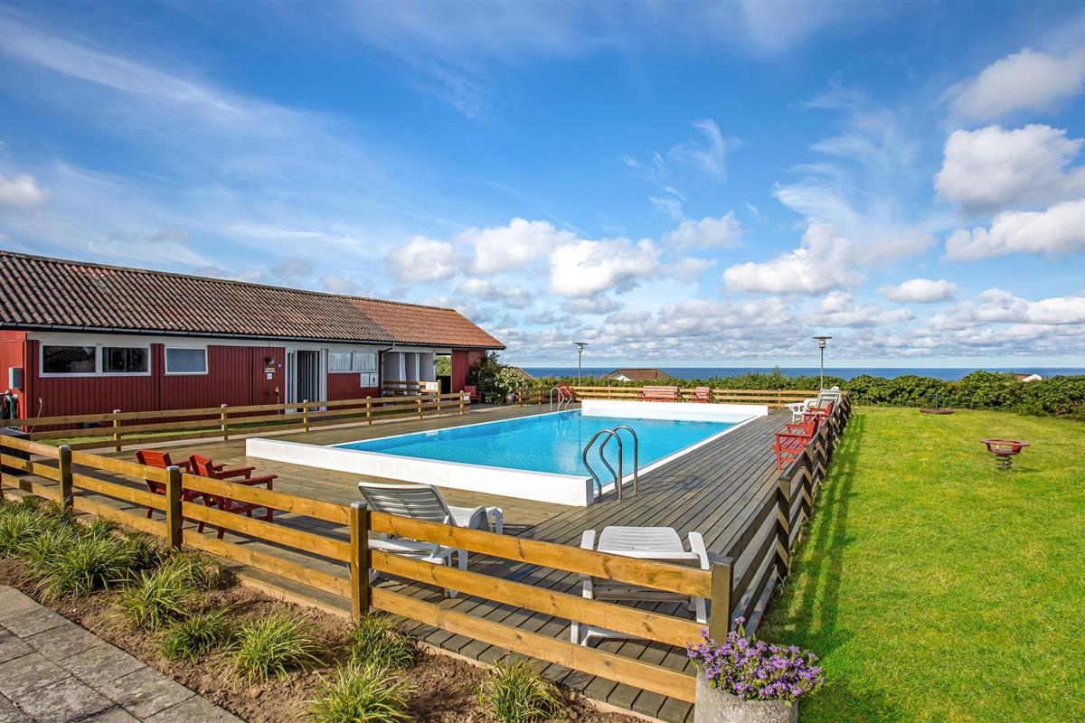 Ontdek dit perfecte vakantiehuis met adembenemend uitzicht op zee en toegang tot een gedeeld zwembad in het charmante vissersdorp Vang op Bornholm.