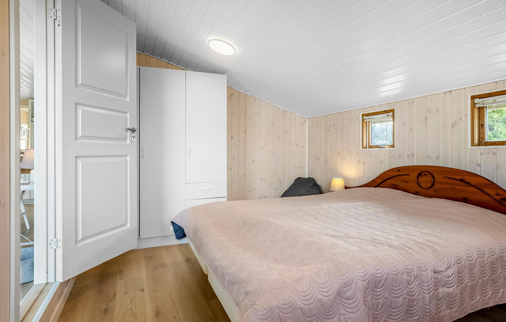 Je kunt je verheugen op aangename uren in de buitenlucht, het grote perceel met gazon biedt veel ruimte om te spelen, voetbaldoelen voor balspelen en een prachtig uitzicht op de zee. Geniet van de zon op het terras, serveer lekkere hapjes van de barbecue, ontspan in de gemeenschappelijke sauna en verfris jezelf in het zwembad, dat je deelt met andere gasten.