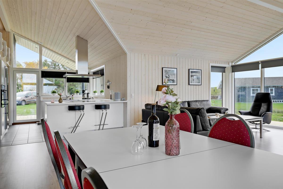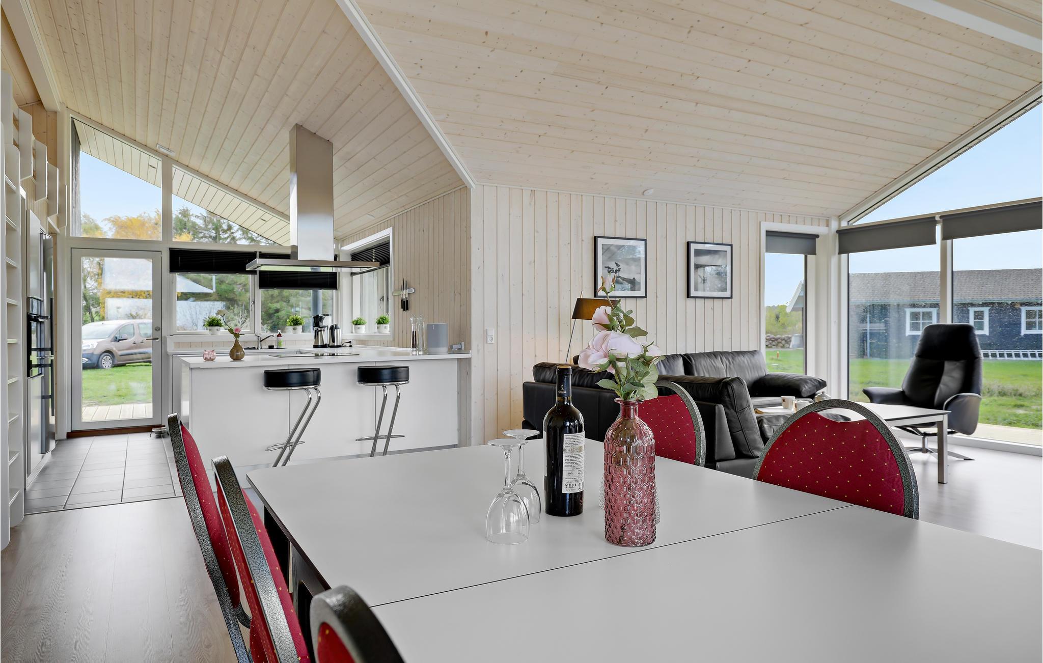 Dit kwaliteitsvakantiehuis biedt veel comfort en een goed uitgeruste open keuken met alle moderne gemakken, waar het bereiden van maaltijden gemakkelijk en gezellig is. Mooie gecombineerde eet- en woonkamer met goede ruimte en prachtig ingericht met comfortabele meubels, grote flatscreen tv, warmtepomp, gratis internet en mooi licht dat binnenkomt vanuit de grote raamvlakken op het zuiden.