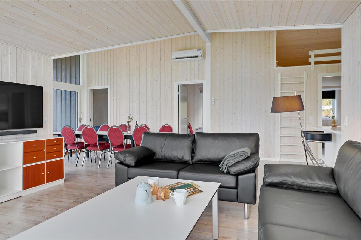 De kinderen zullen de mezzanine zeker waarderen. De 3 ruime slaapkamers en 2 prachtige badkamers met vloerverwarming zijn allemaal goed uitgerust en helpen om uw vakantie ontspannen en comfortabel te maken. Vanuit de mooie open keuken en de woonkamer heeft u direct toegang tot het grote houten terras van het huis met open vlonders en 2 overdekte terrasgedeeltes. Het comfortabele tuinmeubilair en de barbecue nodigen u zeker uit voor een mooie en ontspannende vakantie.