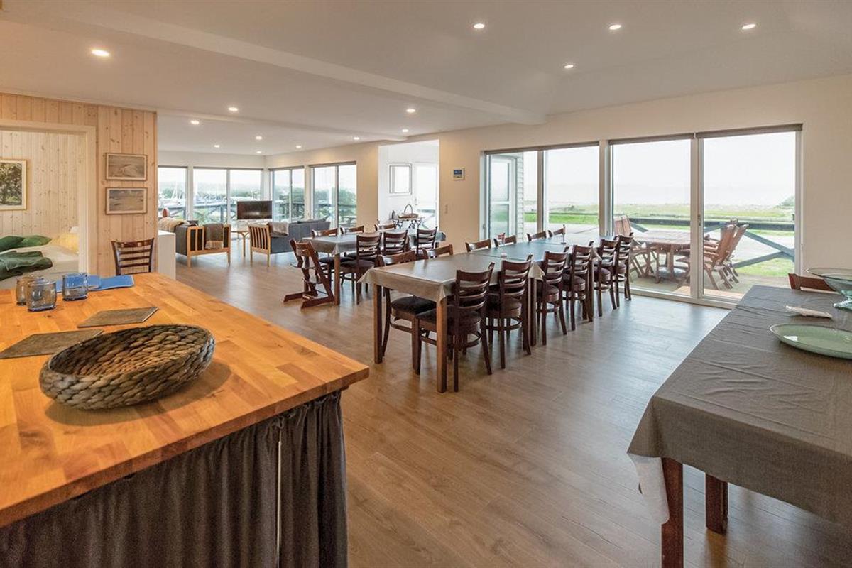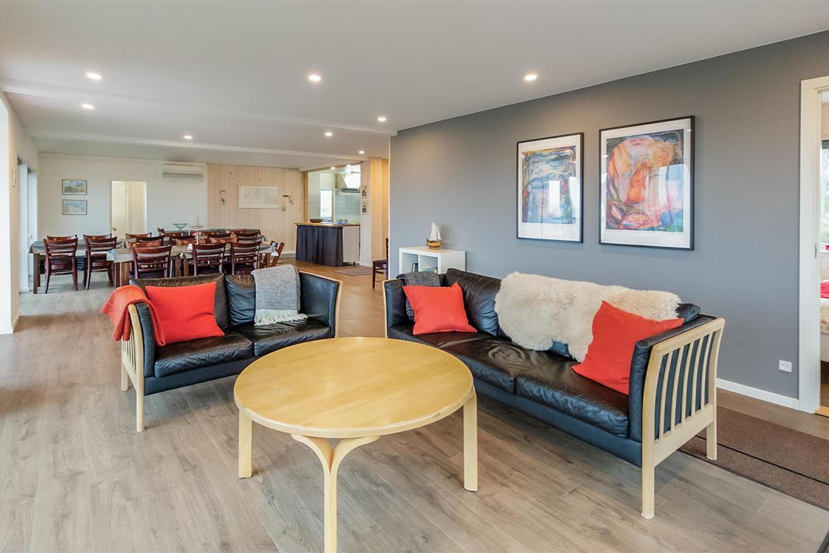 Hier wordt de grote familie hartelijk ontvangen in het vakantiehuis. Bovendien is het huis gelegen met een fantastisch uitzicht op de Kleine Belt, in de eerste rij aan het water. Het huis is volledig gerenoveerd en omgetoverd tot een licht vakantiehuis. Het eerste wat u in het huis binnenkomt is de grote, indrukwekkende keuken-woonkamer. U kunt genieten van het panoramische uitzicht vanuit alle ramen in deze kamer, de ramen reiken van vloer tot plafond. De keuken heeft professionele apparatuur. Over de kleine helling in het haventje is het een koud kunstje om uw eigen boot te water te laten. In vier slaapkamers en twee badkamers is aandacht besteed aan mooie details, waaronder een whirlpool. Er is een voetbaltafel in de activiteitenruimte, ook met uitzicht op het water. De terrassen zijn zo ingericht dat ze zowel schaduw als zon bieden. Er loopt een beekje langs het huis. De snelweg ligt op slechts 15 minuten afstand, waardoor u gemakkelijk de mooie bestemmingen op Fyn kunt ontdekken. Odense bereikt u in een half uur en Middelfart in 15 minuten.