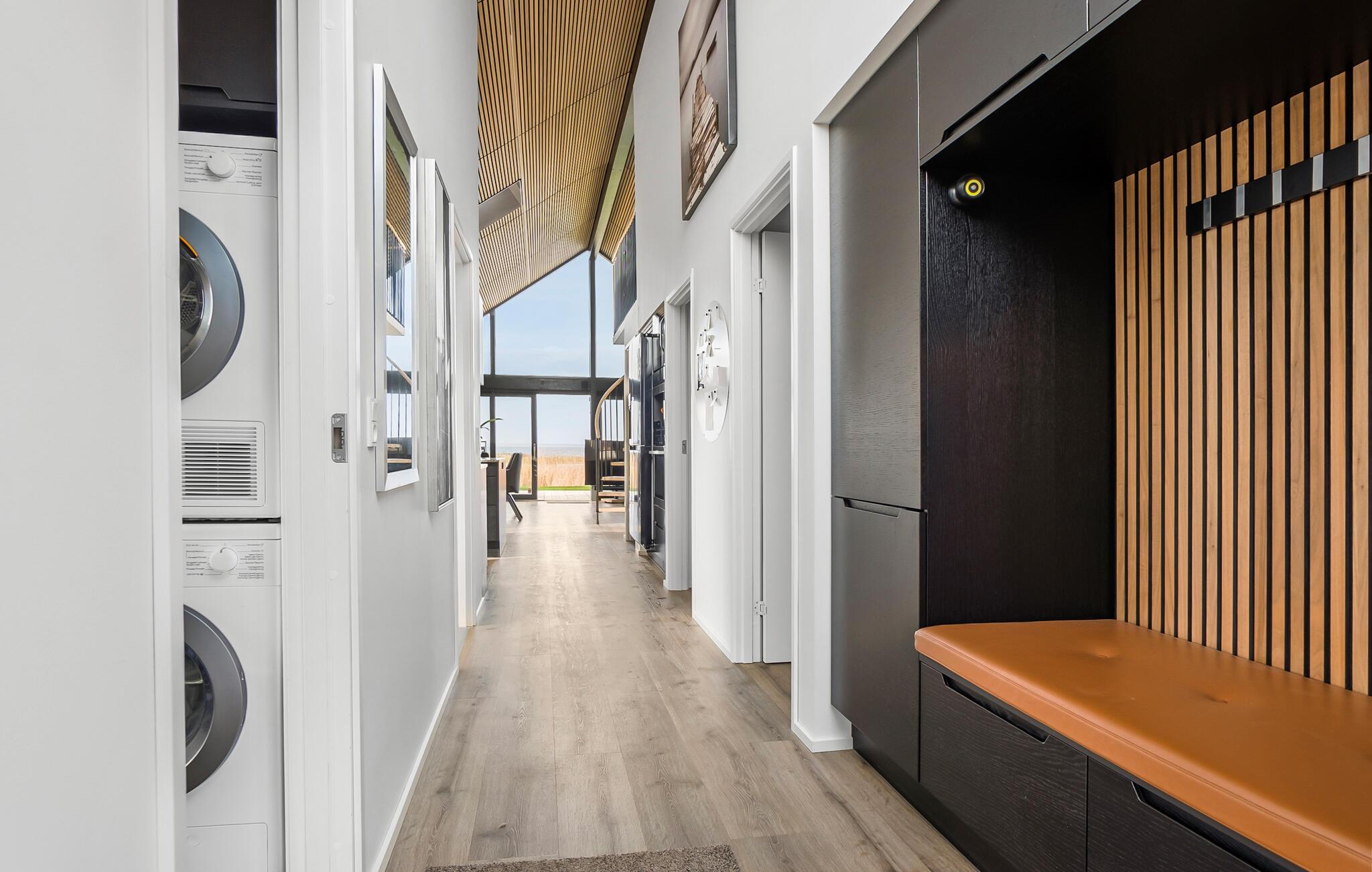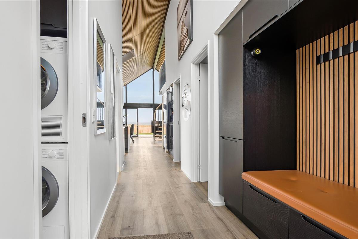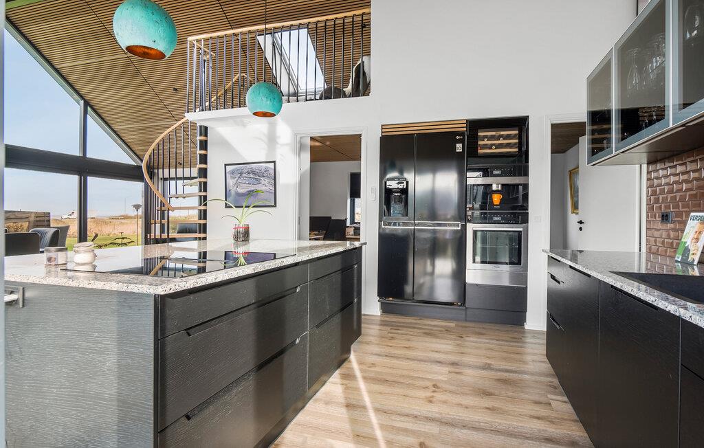 Modern vakantiehuis aan Varbjerg Strand met panoramisch uitzicht en luxe voorzieningen voor een ontspannen verblijf.
