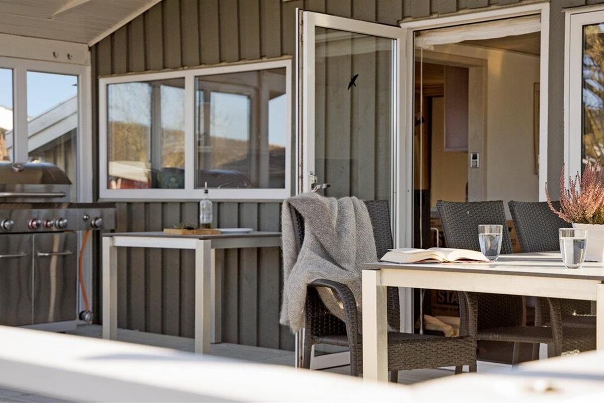 Buiten wacht een ruim, overdekt terras op je met comfortabele zitplaatsen en een barbecue voor gezellige avonden. Adem de frisse zeelucht in, geniet van de zon of knus met een deken en een warm drankje terwijl je geniet van de rustige omgeving.