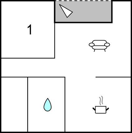 Woonkamer met open keuken - 2 Slaapplaatsen. (Opklapbed(den) of matras(sen)).