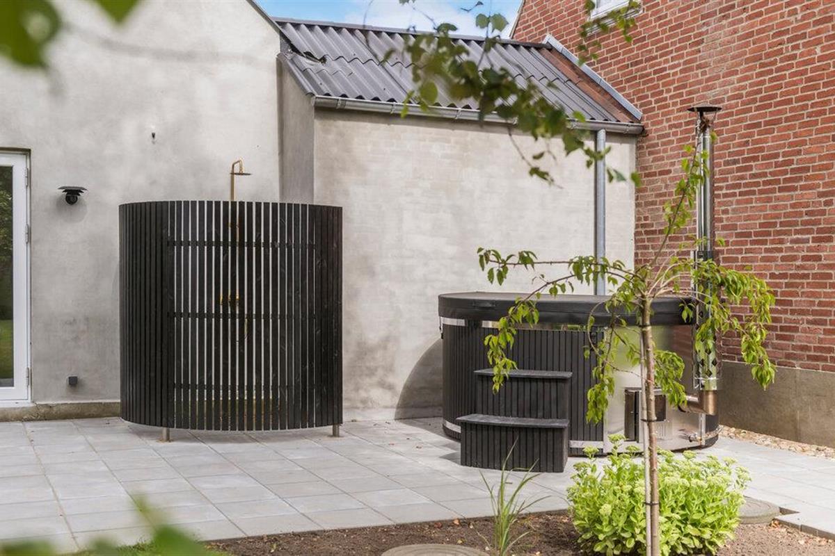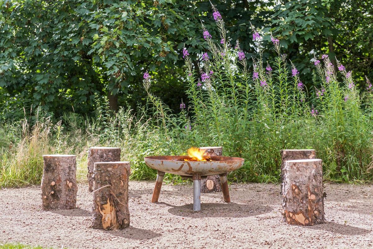 Het terras is een hoogtepunt. Ontspan in het Finse houten bad of maak gebruik van de grote buitendouche. De ruime tuin biedt volop ruimte om te spelen, zonnen, barbecueën en samen te eten in de buitenlucht. Je kunt ook de varkens, konijnen en schapen voeren die op het landgoed leven.