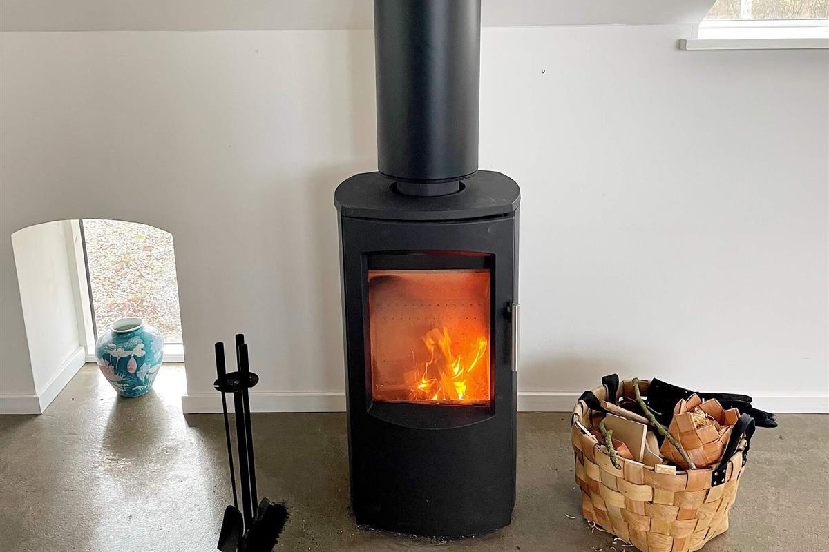 Sie wohnen umgeben von unberührter Natur und nur 150 m vom nächsten Strandufer entfernt. Das Ferienhaus bietet einen gemütlichen, offen kombinierten Wohn- und Essbereich mit Holzofen. Im Anschluss findet man die Küche. Zudem Badezimmer und zwei Schlafzimmer im Haus.
