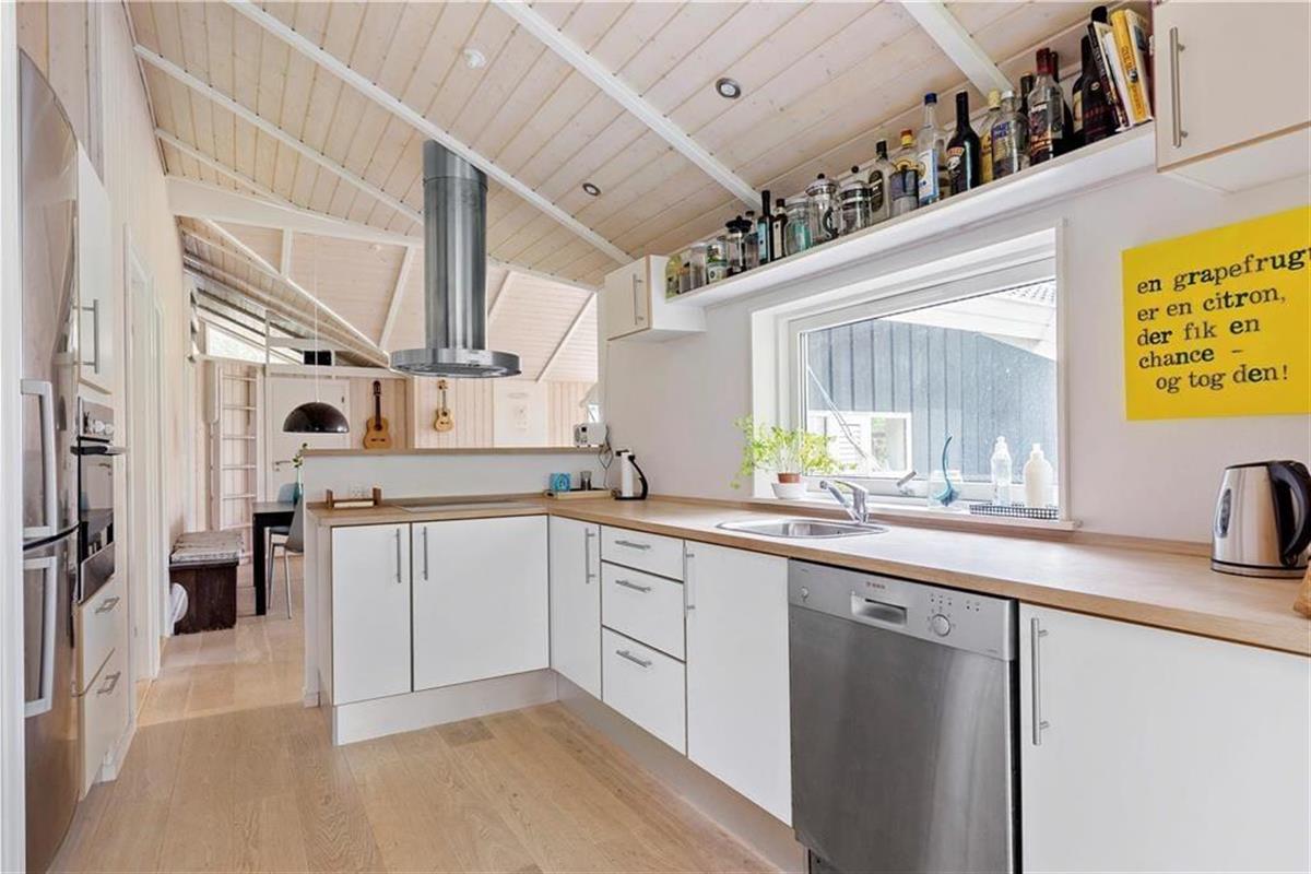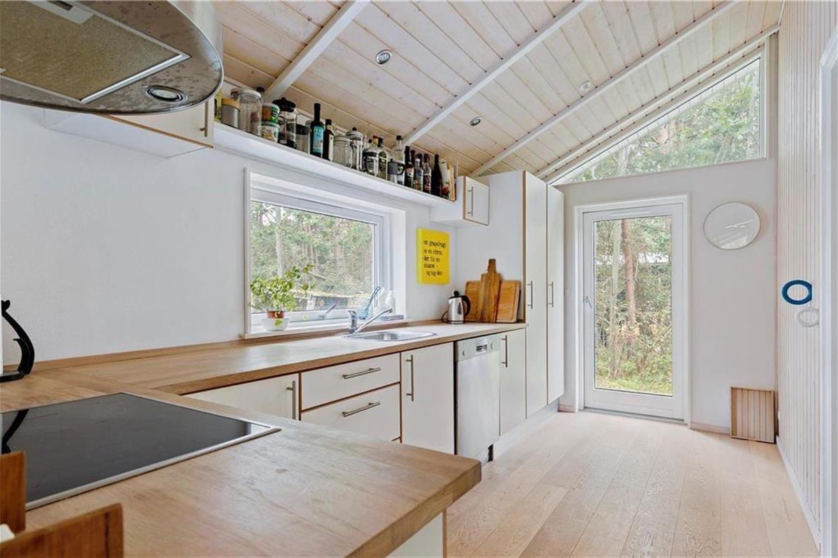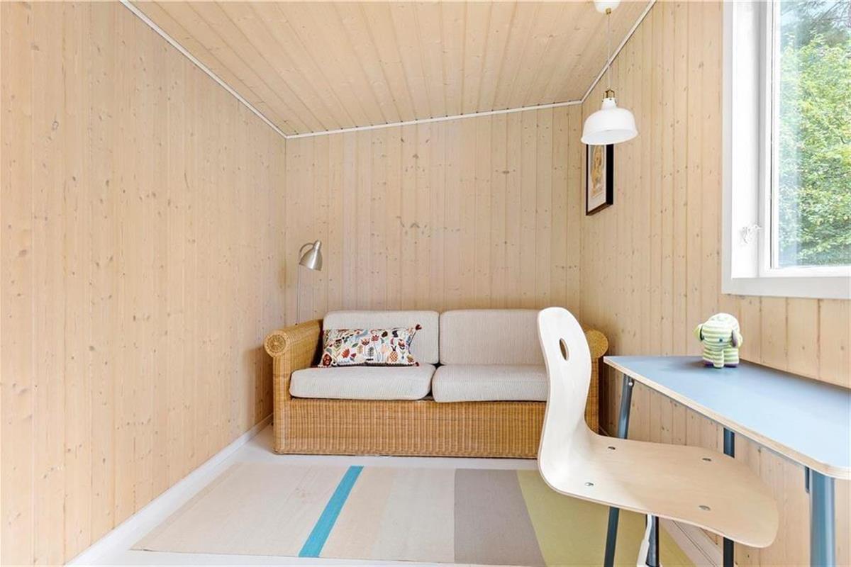 Wenn du dich auf dem weichen Chaiselongue-Ecksofa niederlässt, wirst du mit einem Panoramablick auf dein Naturgrundstück und die friedvolle Umgebung verwöhnt. Es ist leicht nachvollziehbar, dass du dich dabei im Nu entspannst und die Ruhe in vollen Zügen genießt. Die Küche besticht ebenfalls mit einem ansprechenden Ausblick. Sie bietet so viel Platz, dass du die täglichen Mahlzeiten sehr gut zusammen mit deinen Lieben zubereiten kannst. Dein Ferienhaus besticht mit einem separaten Raum zum Zurückziehen, Dichten, Schreiben und Malen und mit einem großen Hängeboden im Wohnraum, den deine Kinder sicherlich schnell für sich beanspruchen werden. Nach einem langen Spaziergang in der Natur sorgen ein Saunagang und ein wohliges Bad in der großen Badewanne für traumhaft entspannte Wohlfühlmomente.