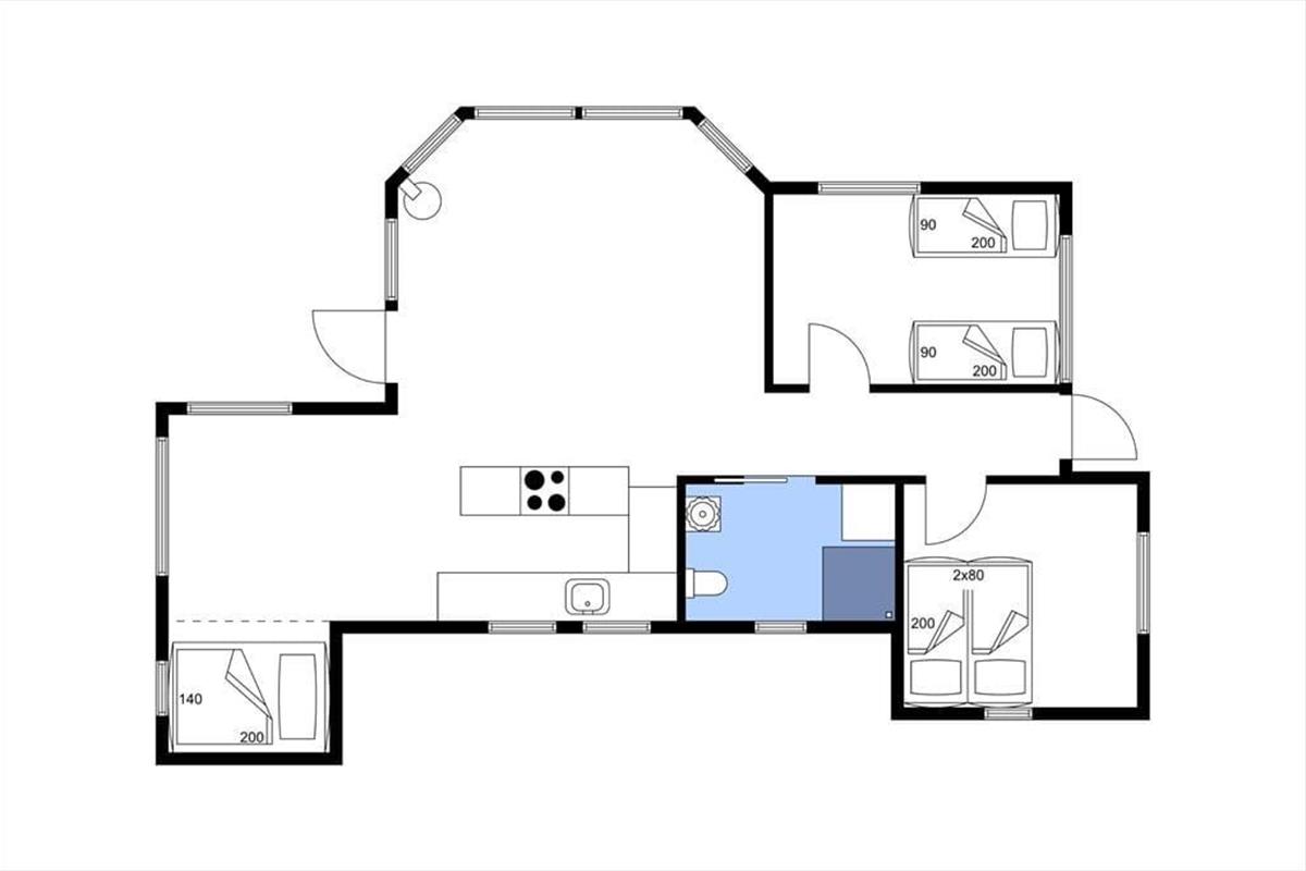 Das Ferienhaus empfängt Sie mit einer offenen Küche, die direkt mit dem schönen Wohnraum verbunden ist. In diesem bieten sich Ihnen angenehm viel Platz rund um den Esstisch, eine Schlafnische und eine geräumige Sofalandschaft. Viel Gemütlichkeit im Familienkreis sowie purer Erholung und Entspannung steht somit absolut nichts im Wege. Zwei schöne Schlafräume und ein ansprechendes Badezimmer mit einer Dusche stehen Ihnen ebenfalls zur Verfügung. Sobald die Sonne vom Himmel lacht, wird es Sie hinaus auf die schönen Terrassen ziehen, auf denen Sie die Sonne und die Aussicht in vollen Zügen genießen können. Während Sie sich in aller Ruhe unter freiem Himmel niederlassen, werden Ihre Kinder vergnügt auf dem großen, ganz besonderen Grundstück umhertollen und spielen.