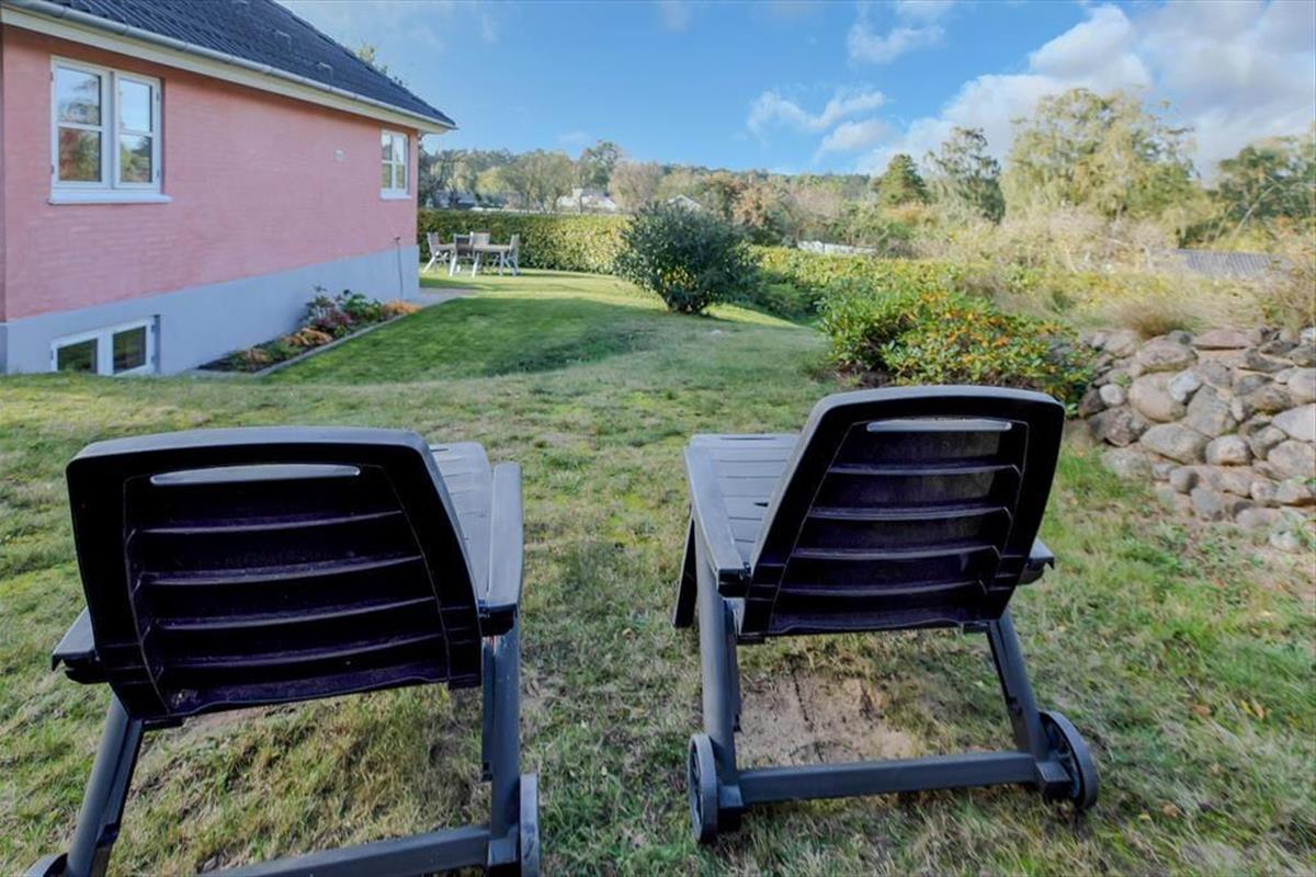 Dein Ferienhaus liegt erhöht auf einem ausgesprochen schönen, hügeligen Grundstück. Dich erwarten viele gemütliche Eckchen, in denen du Sonne, kühlen Schatten oder auch guten Windschutz findest. Auf der ansprechenden Terrasse genießt du ausgedehnte Sonnenbäder, während du dem Gezwitscher der Vögel lauschst. Das Grundstück ist nahezu komplett geschlossen und besticht daher mit einer friedvollen, ruhigen Atmosphäre. Nach einem kurzen Spaziergang erreichst du den Ordrup Strand, bei dem es sich um einen schönen Sandstrand handelt. Hier kannst du dich mit deiner Familie direkt von der Wasserkante aus in die wogenden Wellen werfen oder auch den Badesteg nutzen. Während du dich in aller Ruhe im warmen Sand entspannst und den Klang des Meeres auf dich wirken lässt, werden deine Kinder vergnügt Sandburgen bauen oder mit dem Kescher kleine Krebse und Krabben aus dem Meer fischen.