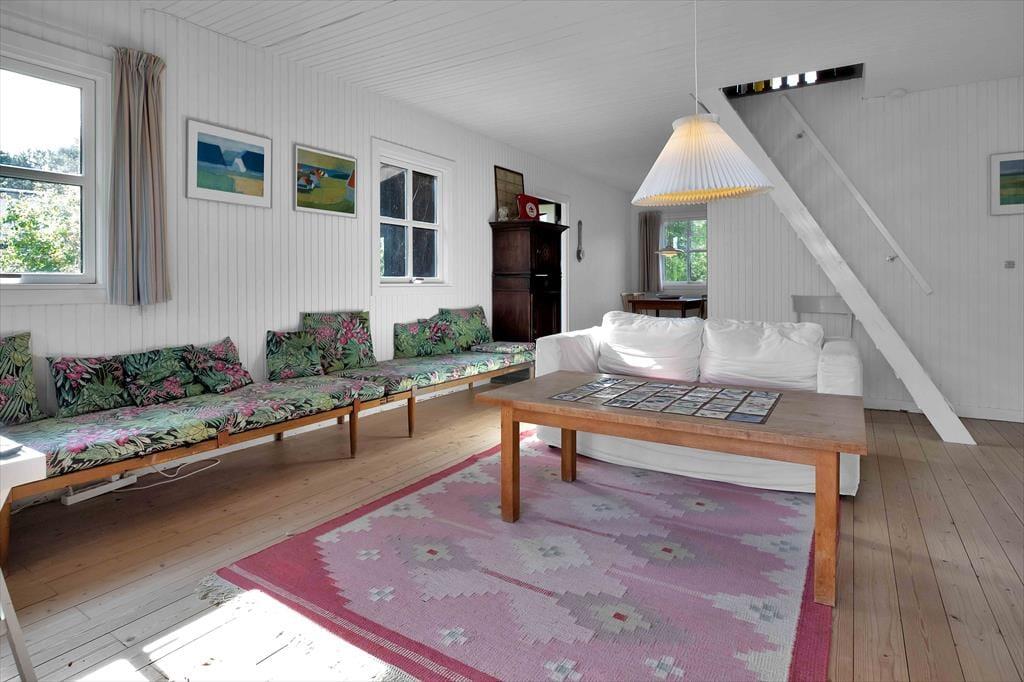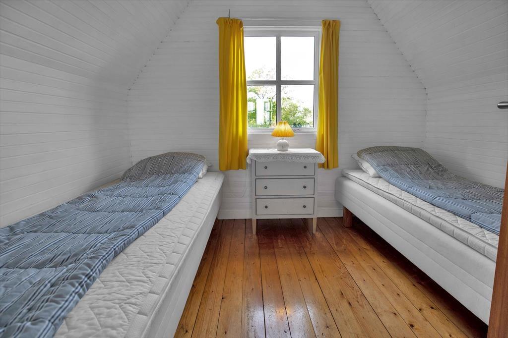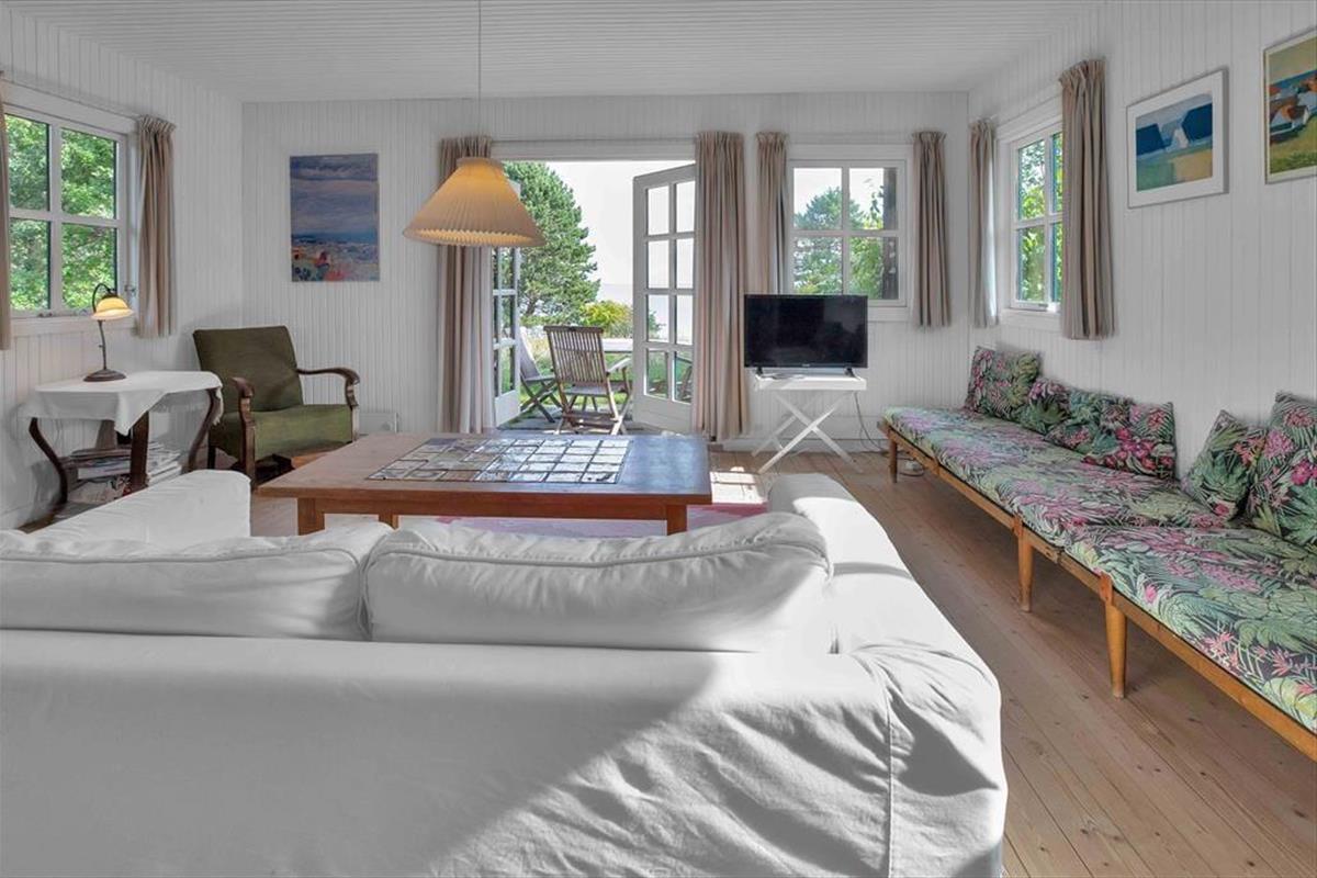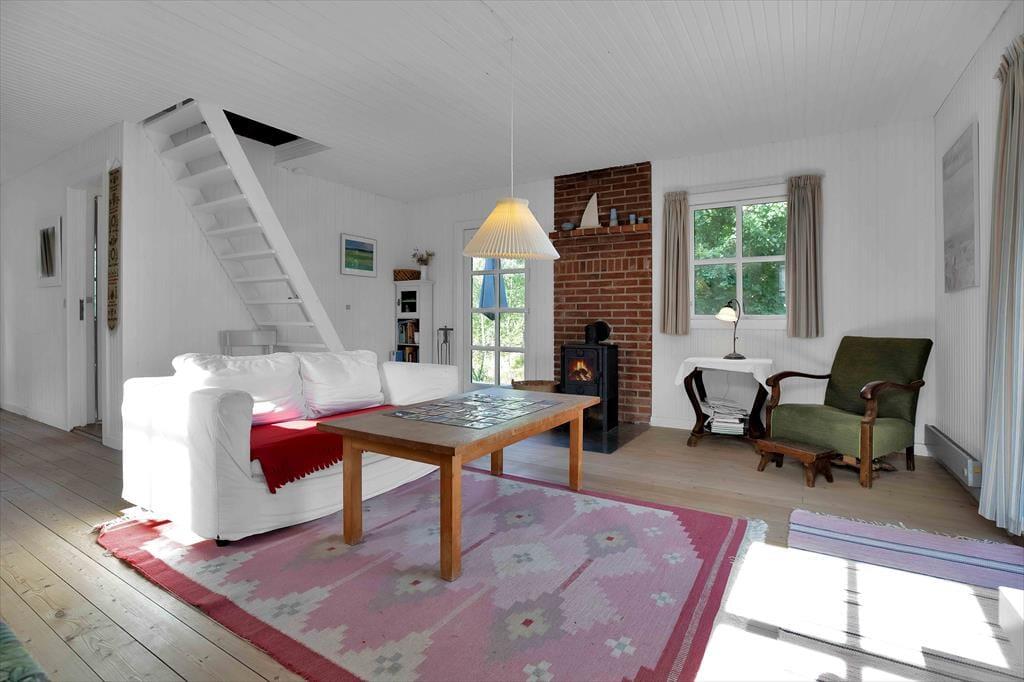 Einer Familie mit vier Personen oder zwei befreundeten Paaren bietet dieses authentische Ferienhaus dank seiner grandiosen Platzierung auf der friedvollen Landzunge Ordrup Næs einen wunderbaren Rahmen für gelungene Urlaubstage. Der Wohnraum fungiert als zentraler Sammelpunkt des Hauses. Auf dem mittig im Raum platzierten Sofa genießt du einen herrlichen Ausblick über dein Grundstück bis auf die Sejerø Bucht. Mache es dir in aller Ruhe mit deinen Lieben gemütlich und lasst gemeinsam die Erlebnisse des Tages vor dieser wunderschönen Kulisse Revue passieren. Die Küche stammt aus den Anfangszeiten des Ferienhauses, eignet sich aber dennoch gut für die Zubereitung eines üppigen Frühstücks oder kleiner Snacks. Das Obergeschoss beinhaltet zwei Schlafräume. Einer dieser Räume verfügt über einen überdachten Balkon, von dem du über dein schönes Naturgrundstück und weit über die Bucht blickst. Sicherlich müsst ihr auslosen, wer in diesem Raum schlafen darf...