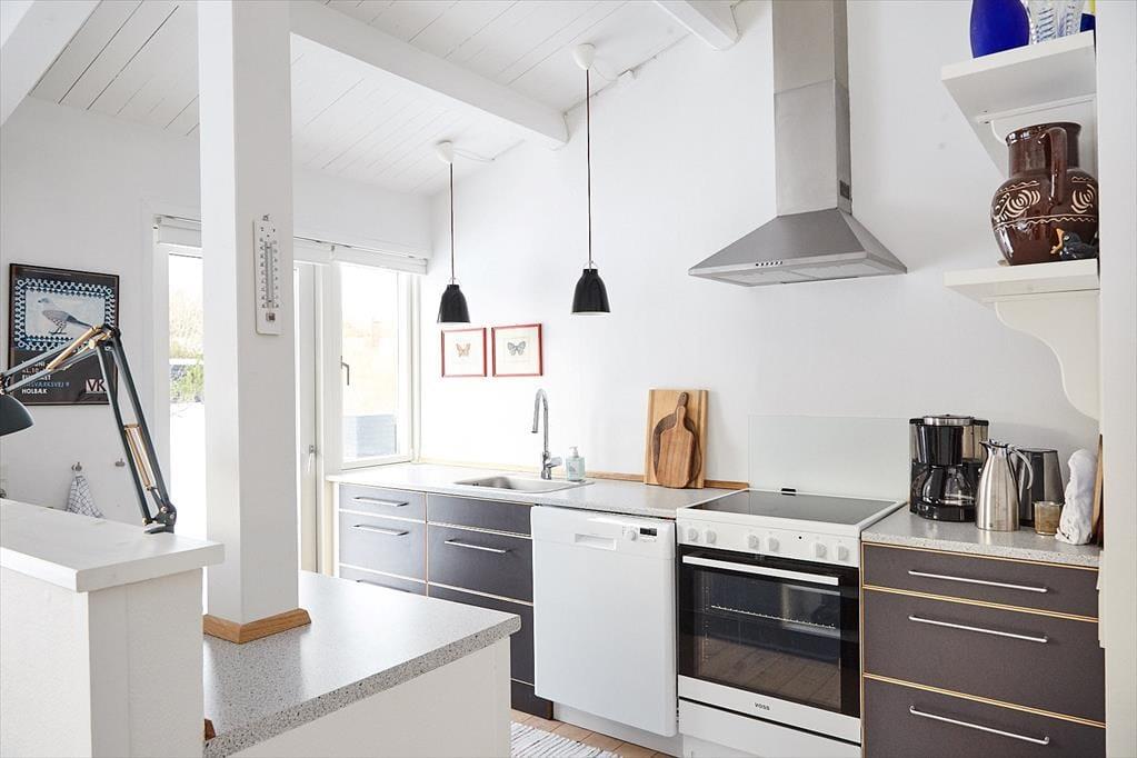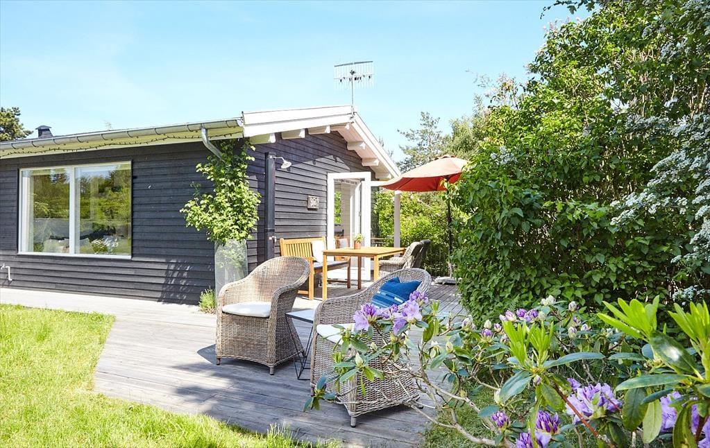 Dieses schöne Ferienhaus liegt ganz in der Nähe eines guten kinderfreundlichen Sandstrandes und nur wenige Gehminuten vom Wald entfernt. Es bietet Ihnen beste Möglichkeiten, viele schöne und gemütliche Momente im Freien, zum Beispiel auf der großen Holzterrasse zu verbringen, wo Sie die Nachmittags- und Abendsonne genießen können. Das Grundstück ist gut abgeschirmt, sodass Sie sich in abgeschiedener Umgebung herrlich entspannen können. Genießen Sie eine gute Tasse Kaffee an der Feuerstelle oder in einer der lauschigen windgeschützen Ecken des Grundstücks.