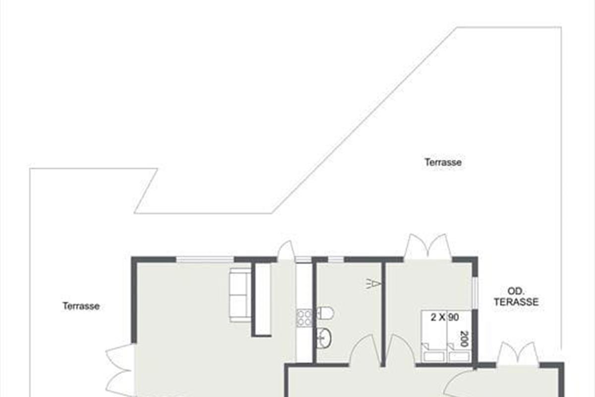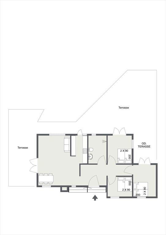 Die Wärmepumpe des Hauses befindet sich im Eingangsbereich, von wo aus Sie Zugang zum Badezimmer mit Dusche und Waschmaschine haben. Von den drei großen Doppelschlafzimmern haben zwei Zugang zur großen Holzterrasse. Das große helle Wohnzimmer mit aufgeteiltem Wohn- und Essbereich verfügt über einen Kaminofen. Die Küche ist in offener Verbindung zum Wohnzimmer angelegt, von dem aus Sie Zugang zur Terrasse haben.