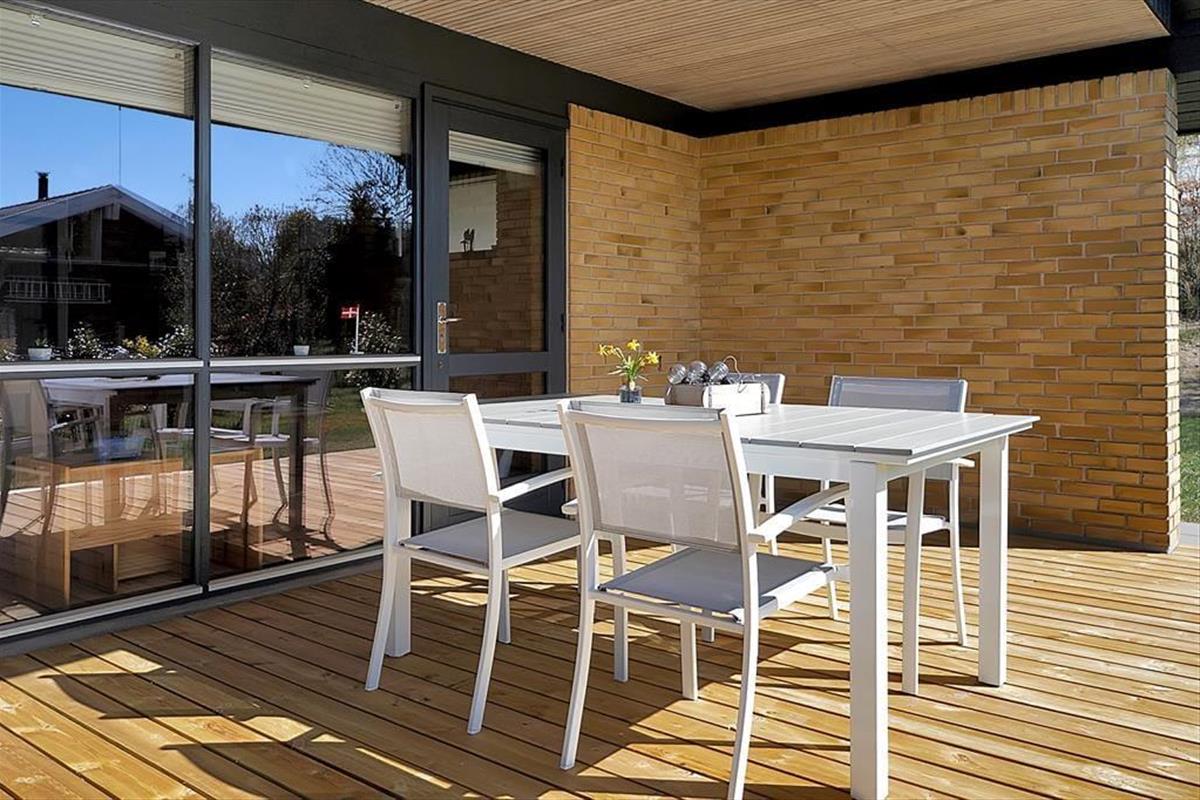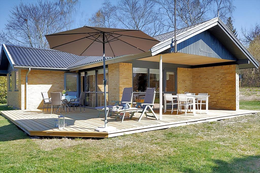Im gemütlichen Wohnraum können Sie wunderbar eine Tasse Kaffee genießen, ein Buch lesen oder mit den Kinder eine unterhaltsame Partie Karten spielen. Die schöne, offene Küche macht die Zubereitung köstlicher Mahlzeiten zum reinen Vergnügen. Im Ferienhaus stehen Ihnen insgesamt vier ansprechende Schlafzimmer zur Verfügung, von denen zwei mit je einem Doppelbett und zwei mit jeweils zwei Einzelbetten eingerichtet sind. Ein schönes Badezimmer mit einer Dusche steht Ihnen selbstverständlich ebenfalls zur Verfügung. Im kleinen Schuppen steht darüber hinaus ein weiteres WC mitsamt einer Waschmaschine für Sie bereit. Herrliche Stunden werden Sie auch auf der schönen Terrasse verleben, die mit einen offenen und einen überdachten Bereich bietet. Auf dieser Terrasse können Sie schön in geselliger Runde grillen, ein gutes Glas Wein genießen und sich dabei von der Sonne und von der Aussicht über Ihr schönes Grundstück verzaubern lassen. Nach einem langen Tag am Strand spült Ihnen die hauseigene Außendusche den Sand und das Salz des Meeres von der Haut.