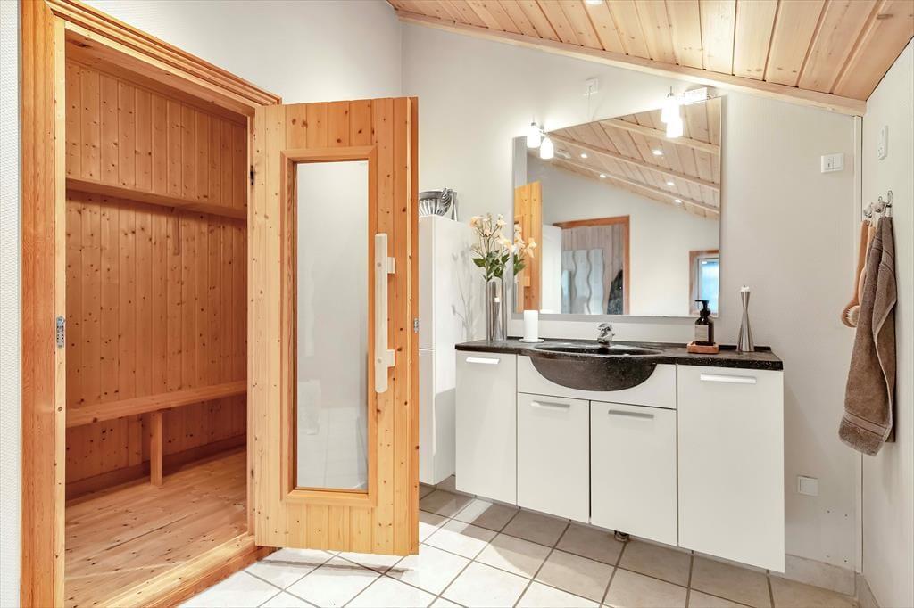 Im Ferienhaus bekommen Sie gleich das Gefühl, hier willkommen zu sein. Ihre Schultern werden sich schnell senken, und Sie empfinden, dass die Ferien endlich dort sind. In dem schönen Wohnraum, der in offener Verbindung mit der großen Küche liegt, können Sie sich alle im Sofagebiet sammeln, um ein Brettspiel zu spielen. Wenn Sie das Essen zubereiten müssen, haben Sie den Blick zum Meer in dem Horizont. Nach einem tollen Tag auf dem fantastischen Strand ist ein Bad im Spa oder ein Besuch in der Sauna wirklich zu empfehlen.