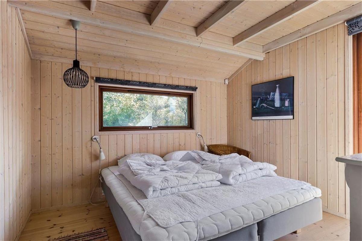 Das geräumige Wohnzimmer mit hohen Decken verfügt über Panoramafenster vom Boden bis zur Decke. Du wirst schwerlich die Augen von der Aussicht auf das Meer abwenden können - egal wo du dich gerade aufhältst; denn selbst wenn das Haus nicht in erster Reihe zum Meer liegt, so gibt es trotzdem eine berauschende Aussicht über die Landschaft. In der offenen Küche mitten im Wohnzimmer kannst du ein schönes Mittagessen zubereiten - vielleicht sogar mit selbst gefangenem Fisch. An einem Ende des Wohnzimmers könnt ihr es euch in der Sofaecke am Kamin mit einer Tasse Kaffee oder einem Spiel gemütlich machen.
