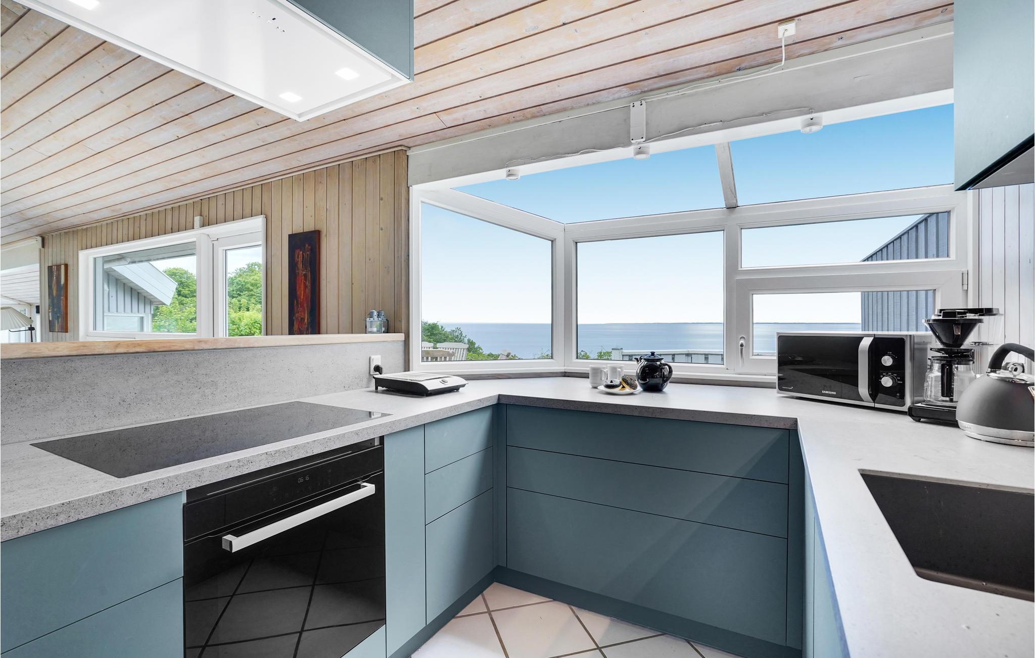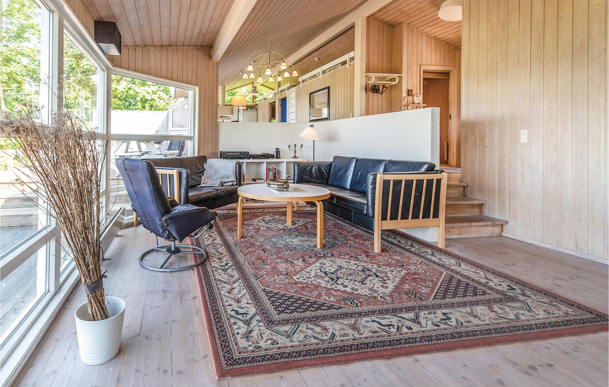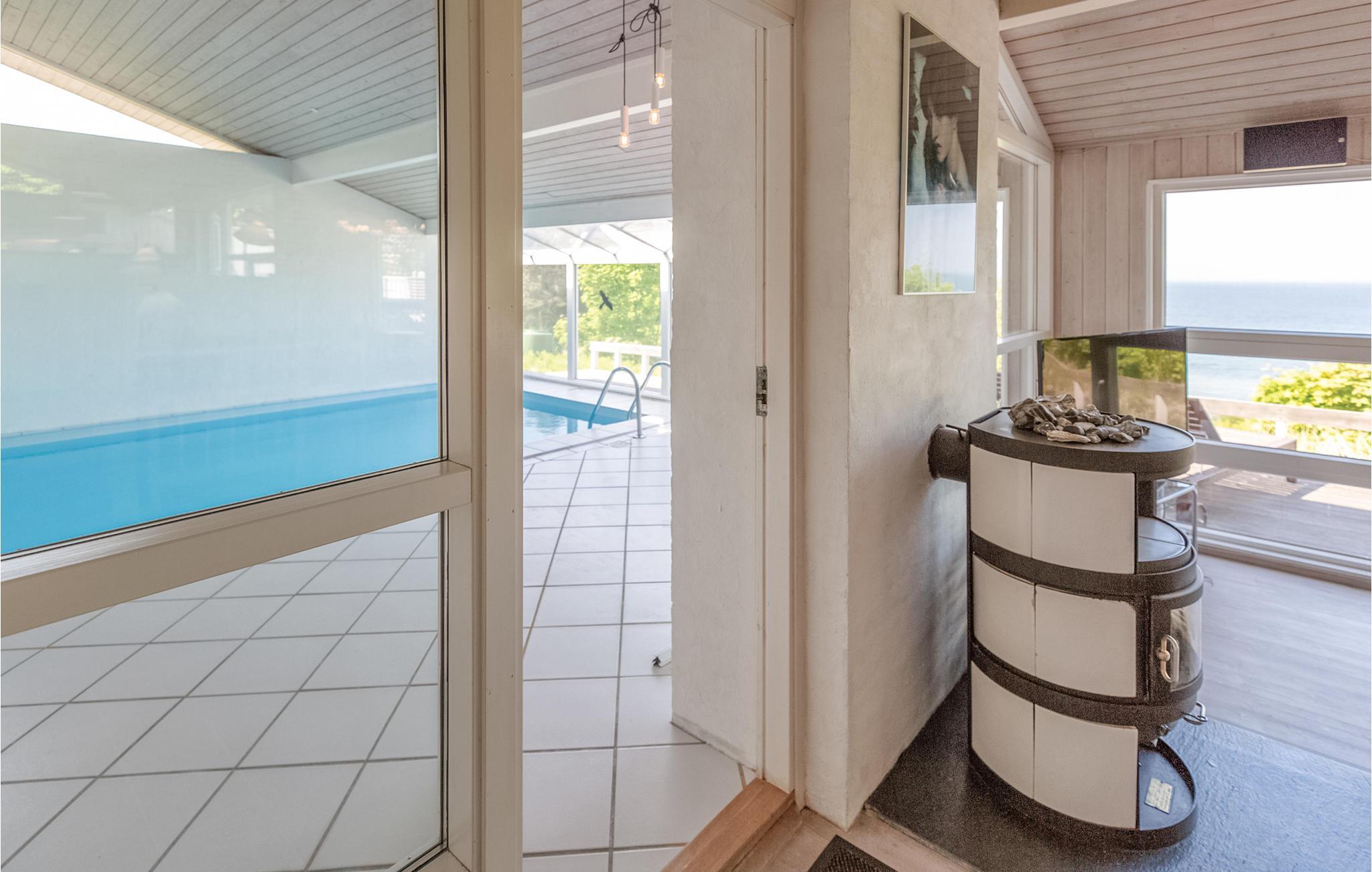 Geniet in dit panoramische vakantiehuis met zwembad, sauna en direct strandtoegang in het heuvelachtige Veddinge Bakker.