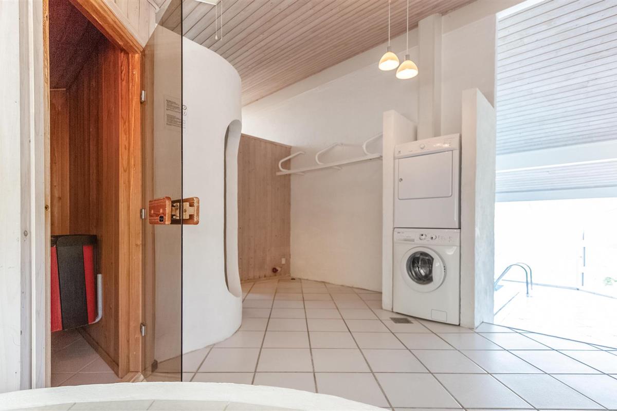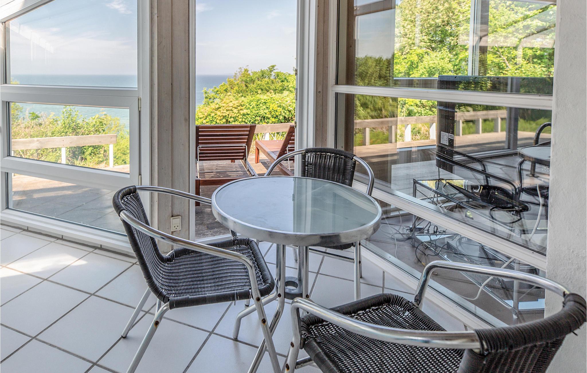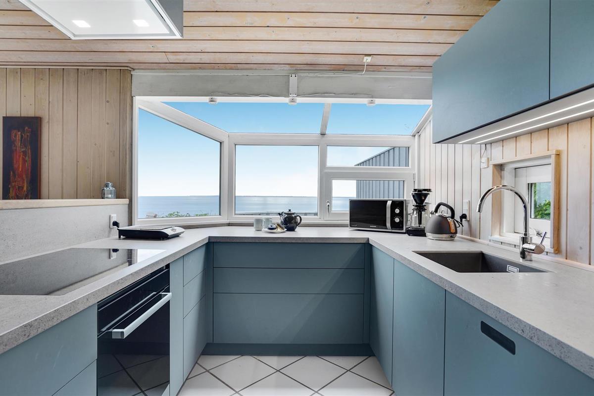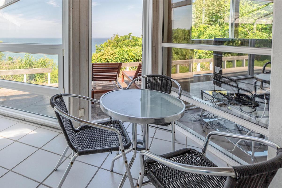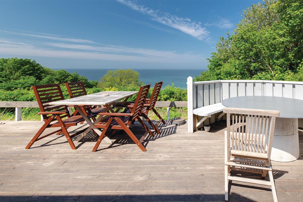 U vindt bij dit vakantiehuis een prachtig panoramisch uitzicht en veel trappen. De trappen bevinden zich voornamelijk bij het zwembad en de badkamer, het huis is niet geschikt voor mensen die slecht ter been zijn. Wanneer u baantjes trekt in het zwembad kunt u genieten van een uniek uitzicht. In het huis vindt u een keuken-woonkamer, biljartkamer, 2-persoons whirlpool, sauna, 4 slaapkamers en badkamer. De stapelbedden zijn 70 cm breed. Een steil pad leidt direct van het huisje naar het strand. Hier kunt u echt genieten van de rustige sfeer, luisteren naar het getjilp van de vogels en naar de open horizon staren. Carport voor 2 auto's en verdere parkeergelegenheid voor 2 auto's. In het huis mag niet gerookt worden. Het huis ligt in het heuvelgebied van Veddinge Bakker op een glooiend natuurperceel.