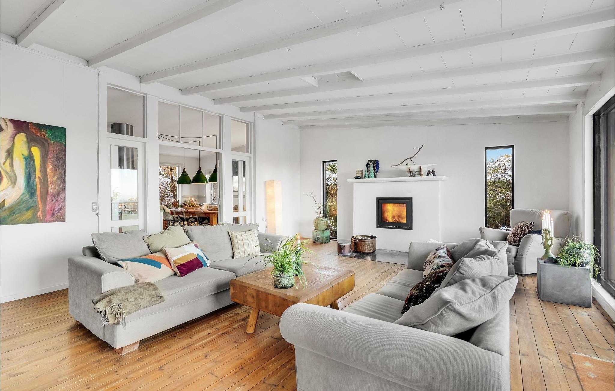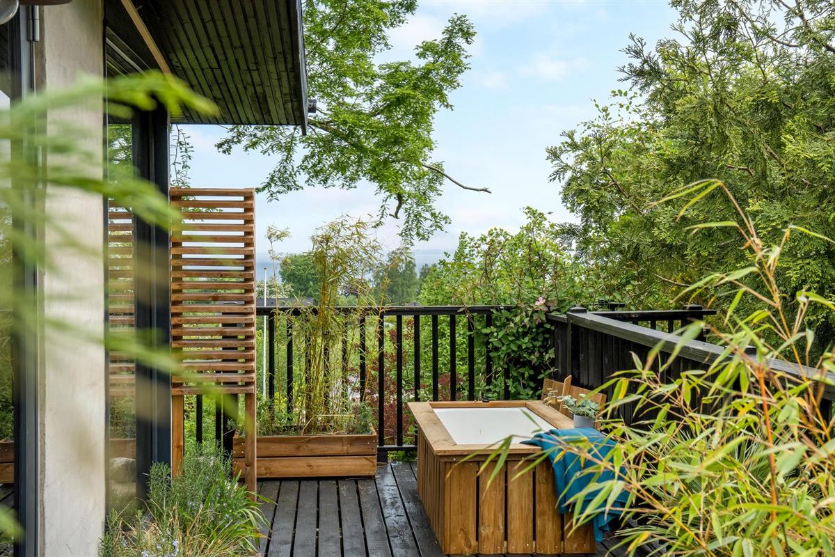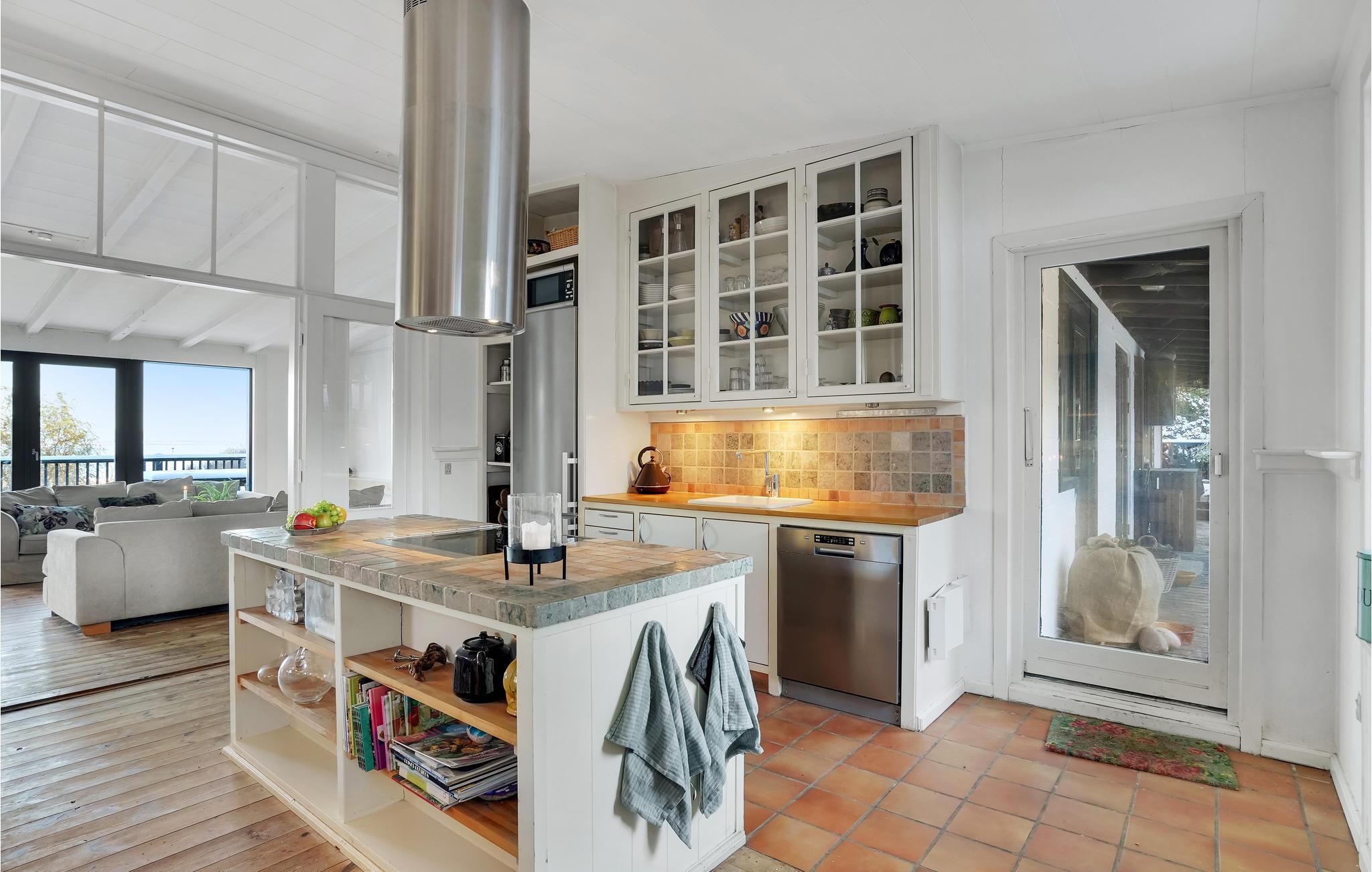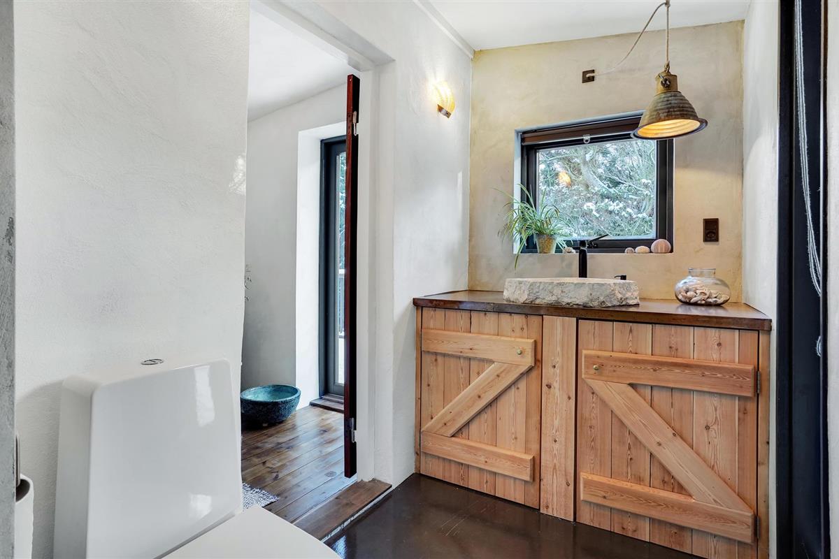 Er is veel aandacht besteed aan details, zo is de hot tub ingebouwd in een raam van waaruit u kunt genieten van het prachtige uitzicht op de baai. De sfeervolle open en overdekte terrassen zorgen op elk moment van de dag voor een bijna zuidelijke sfeer. Het huis heeft een mooie Frans geïnspireerde eetkeuken, een heerlijke woonkamer met houtkachel en panoramisch uitzicht voor al het geld, uitgang naar het heerlijke terras waar het uitzicht ten volle kan worden genoten. Er is ook een kleine woonkamer/bibliotheek met houtkachel waar u kunt zitten met een goed boek. Er is natuurlijk ook de mogelijkheid om je favoriete serie of film te streamen als je daar zin in hebt. Rondom het huis is een fantastisch terras aangelegd, hier is altijd de mogelijkheid om schaduw of volle zon te vinden. Er is een kleine vijver in de tuin.