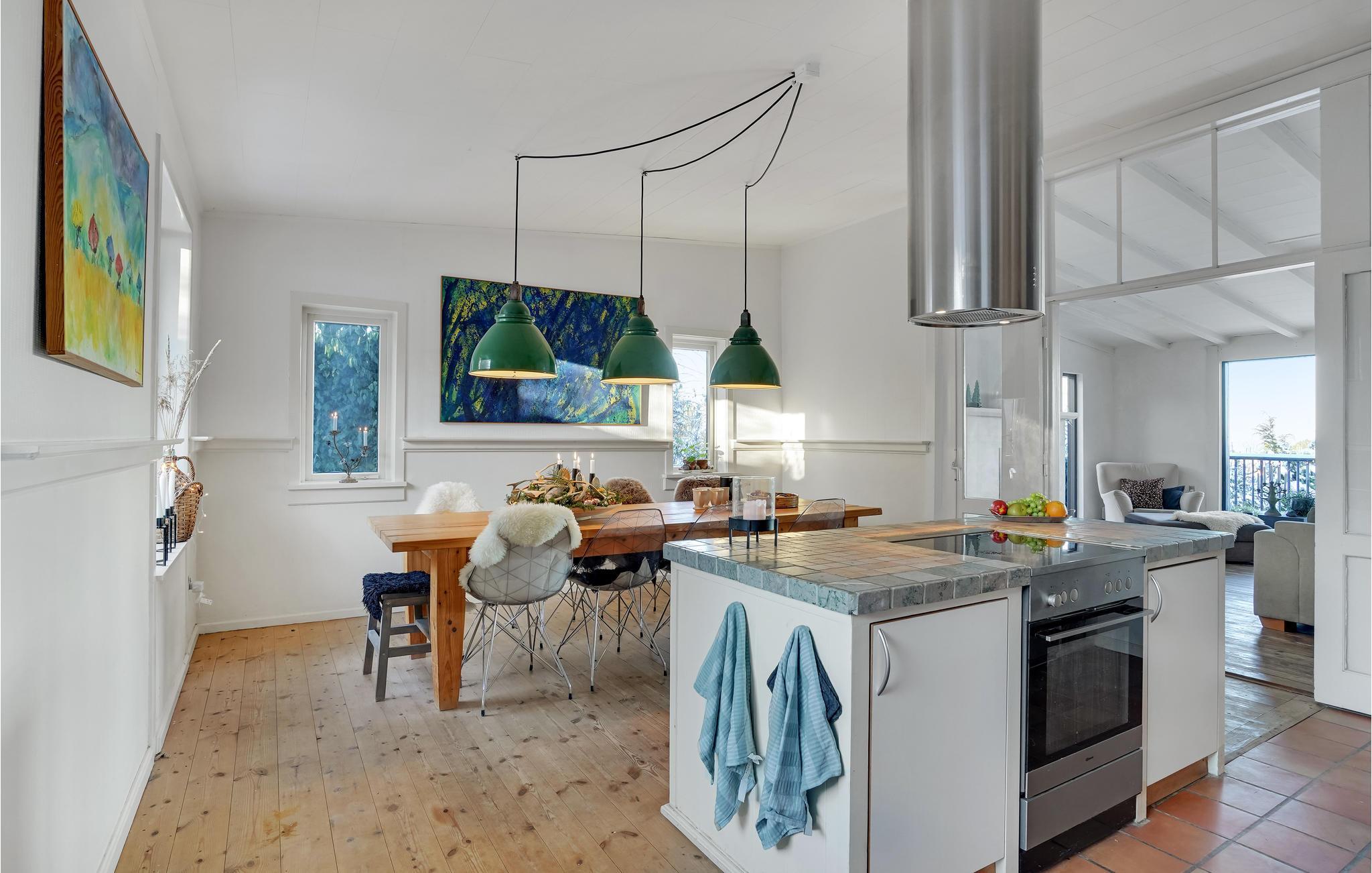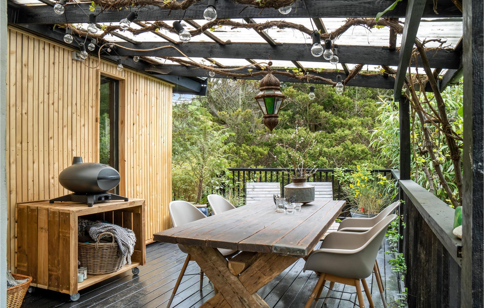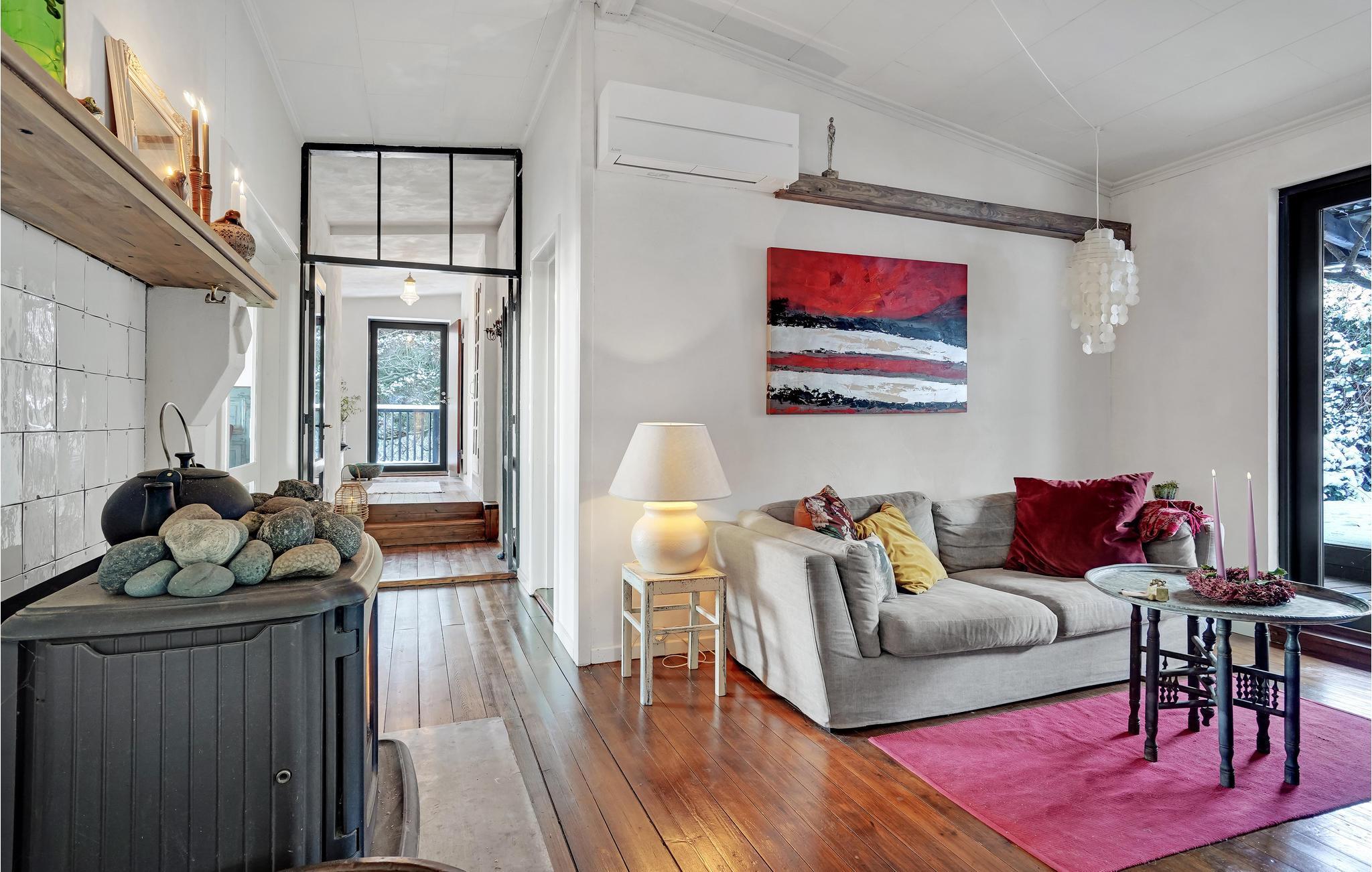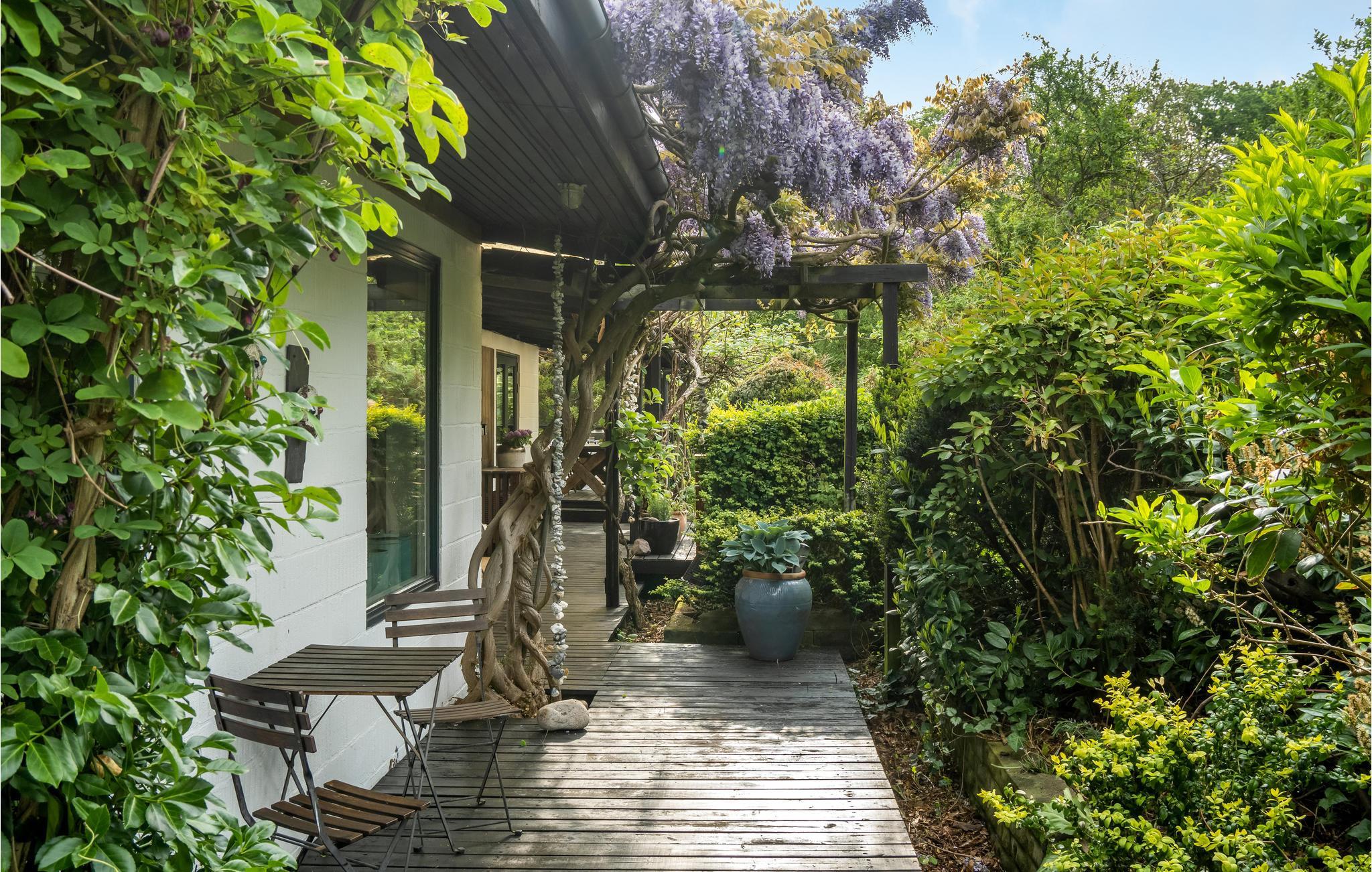 Er is veel aandacht besteed aan details, zo is de hot tub ingebouwd in een raam van waaruit u kunt genieten van het prachtige uitzicht op de baai. De sfeervolle open en overdekte terrassen zorgen op elk moment van de dag voor een bijna zuidelijke sfeer. Het huis heeft een mooie Frans geïnspireerde eetkeuken, een heerlijke woonkamer met houtkachel en panoramisch uitzicht voor al het geld, uitgang naar het heerlijke terras waar het uitzicht ten volle kan worden genoten. Er is ook een kleine woonkamer/bibliotheek met houtkachel waar u kunt zitten met een goed boek. Er is natuurlijk ook de mogelijkheid om je favoriete serie of film te streamen als je daar zin in hebt. Rondom het huis is een fantastisch terras aangelegd, hier is altijd de mogelijkheid om schaduw of volle zon te vinden. Er is een kleine vijver in de tuin.