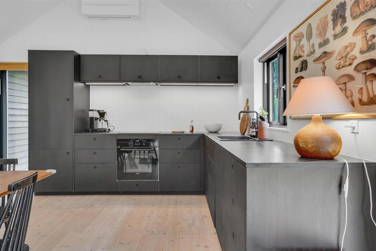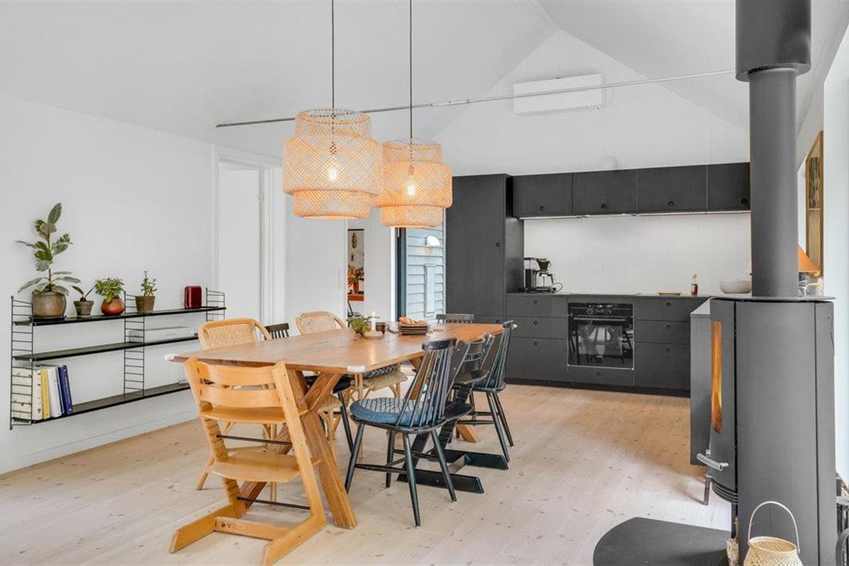 Stijlvol vakantiehuis in Veddinge Bakker met open terras, houtkachel en prachtig uitzicht op de baai van Sejerø.