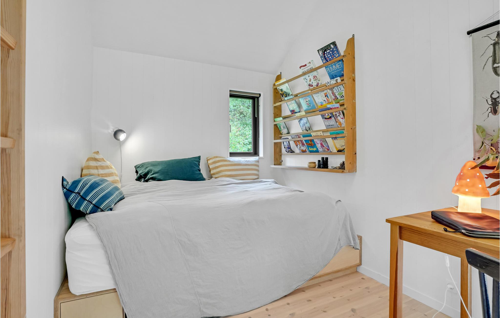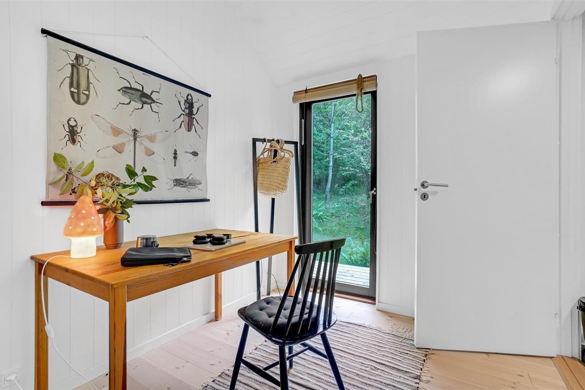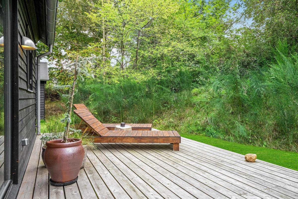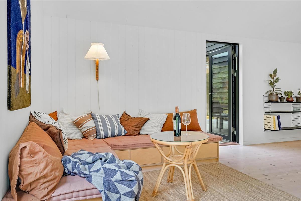 Ongelooflijk mooi vakantiehuis met open keuken, woon- en eetkamer met houtkachel, 2 goede slaapkamers en badkamer met douche. Vanuit de woonkamer en een slaapkamer heeft u toegang tot een open terras waar u volop van de zon kunt genieten. Afhankelijk van het seizoen is het mogelijk om door de bomen heen naar het water te kijken. Vanaf de straat kijkt u neer op de baai van Sejerø. Neem een goed boek mee en zoek beschutting op een van de terrassen.