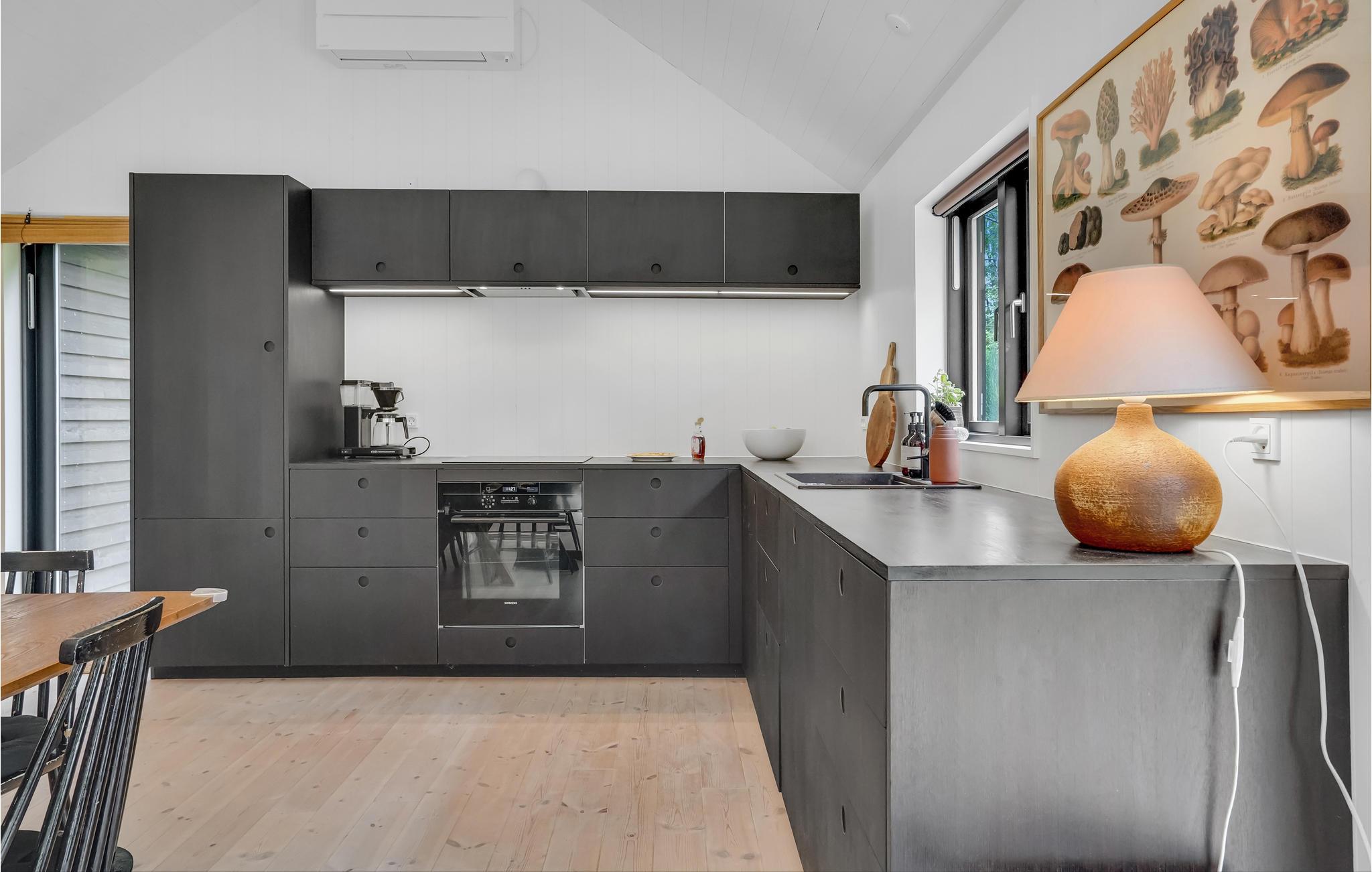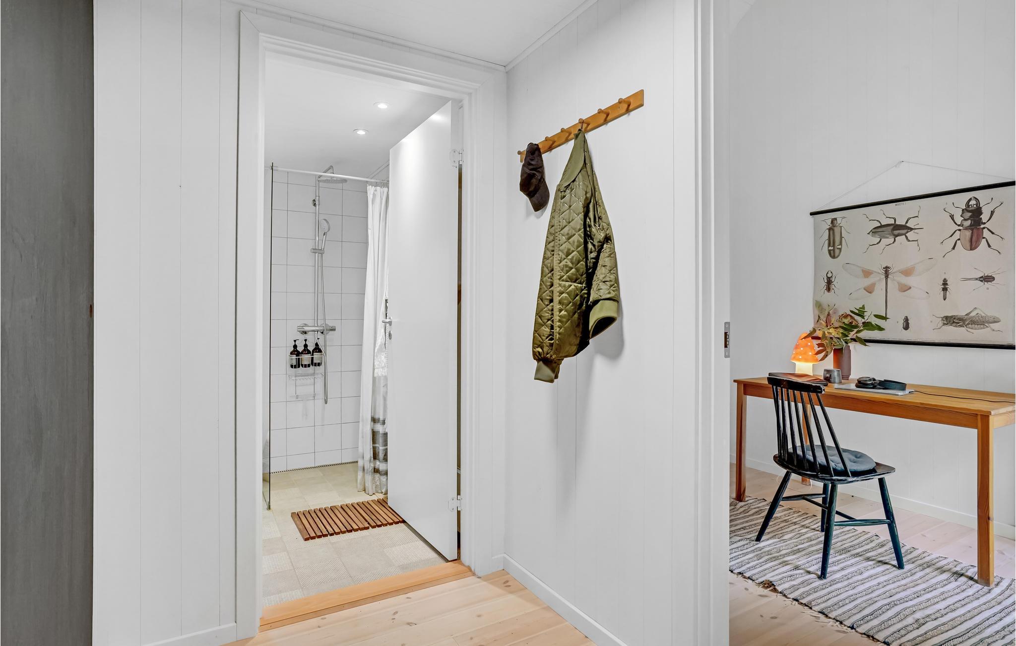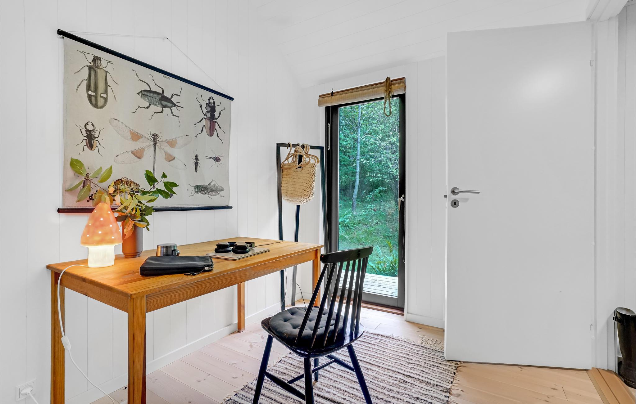 Ongelooflijk mooi vakantiehuis met open keuken, woon- en eetkamer met houtkachel, 2 goede slaapkamers en badkamer met douche. Vanuit de woonkamer en een slaapkamer heeft u toegang tot een open terras waar u volop van de zon kunt genieten. Afhankelijk van het seizoen is het mogelijk om door de bomen heen naar het water te kijken. Vanaf de straat kijkt u neer op de baai van Sejerø. Neem een goed boek mee en zoek beschutting op een van de terrassen.