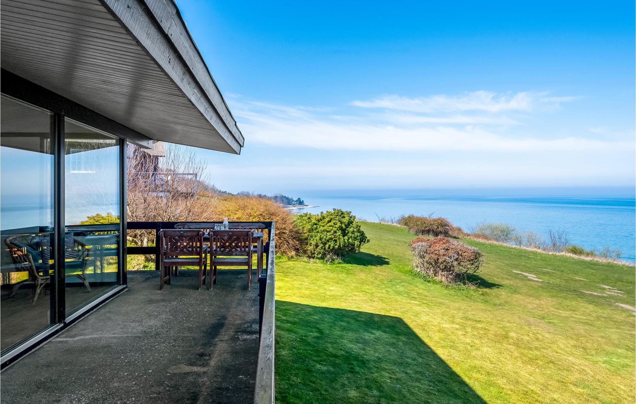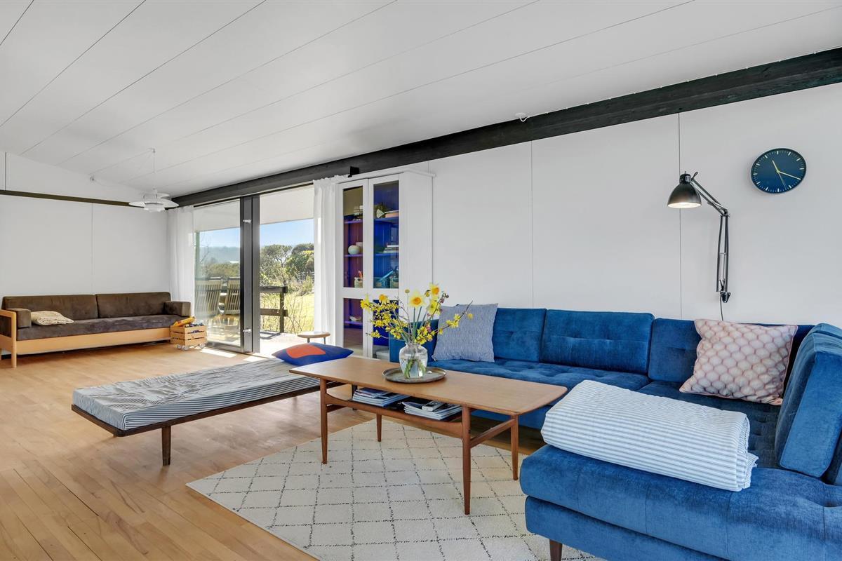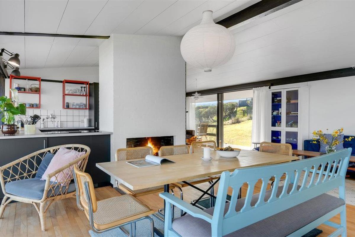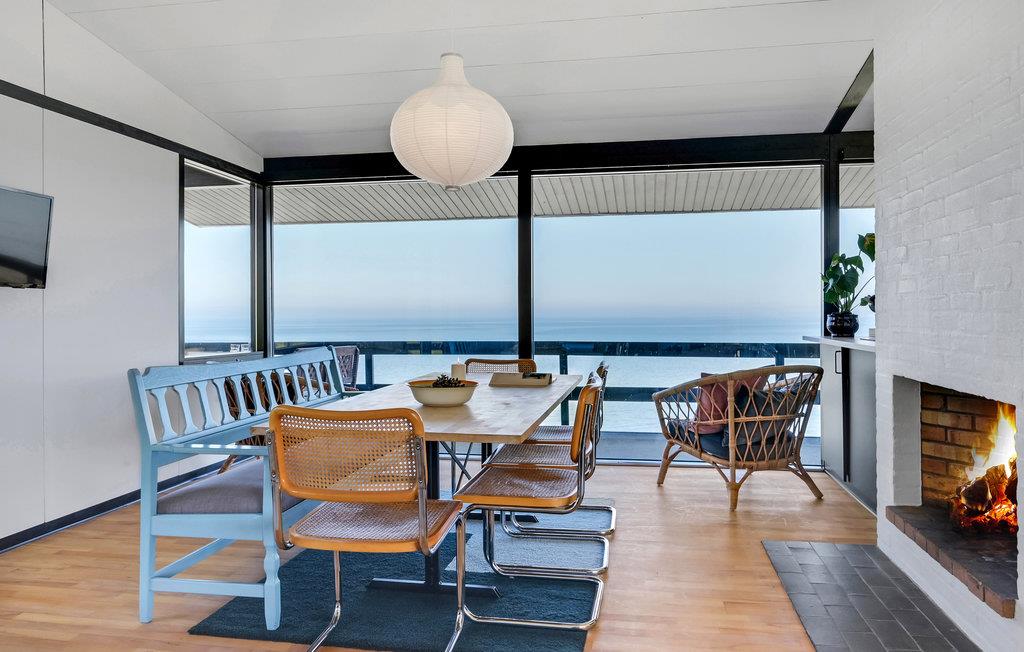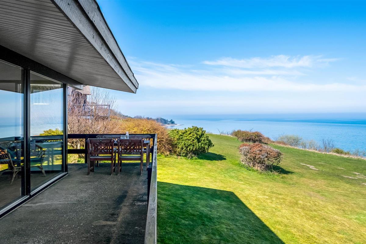 Dit onder architectuur gebouwde vakantiehuis uit de jaren '70 wacht op zijn gasten op een 3000 m² groot perceel dat afloopt naar het strand. In de woonkamer met ramen van vloer tot plafond kunt u genieten van een adembenemend panoramisch uitzicht, en ook het uitzicht vanuit de ramen van de gedeeltelijk open keuken is fantastisch. Een trap leidt naar het huis.