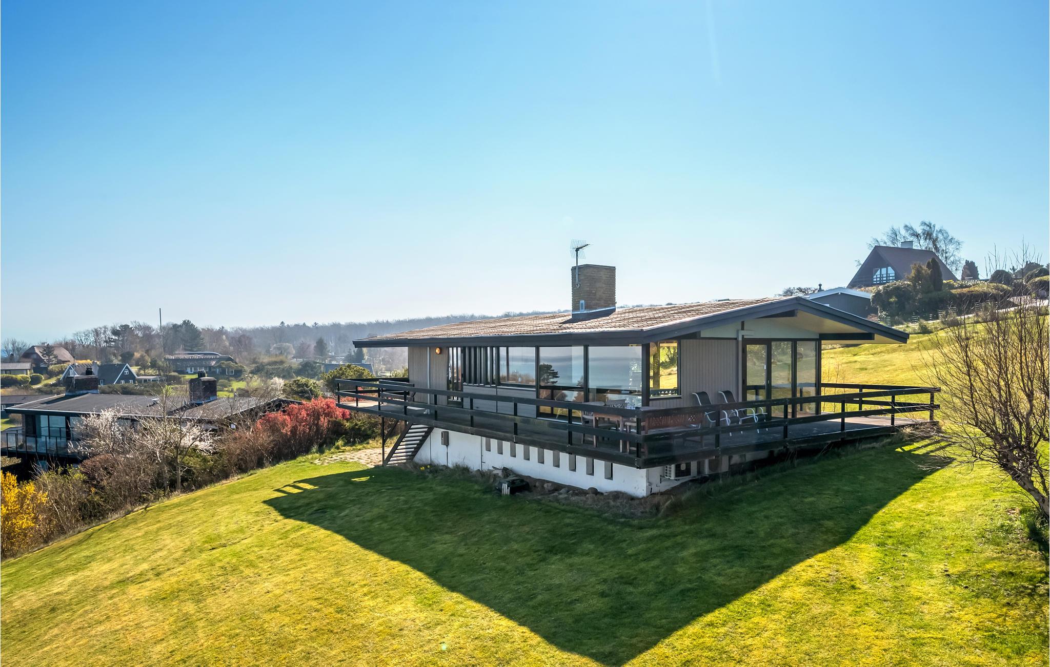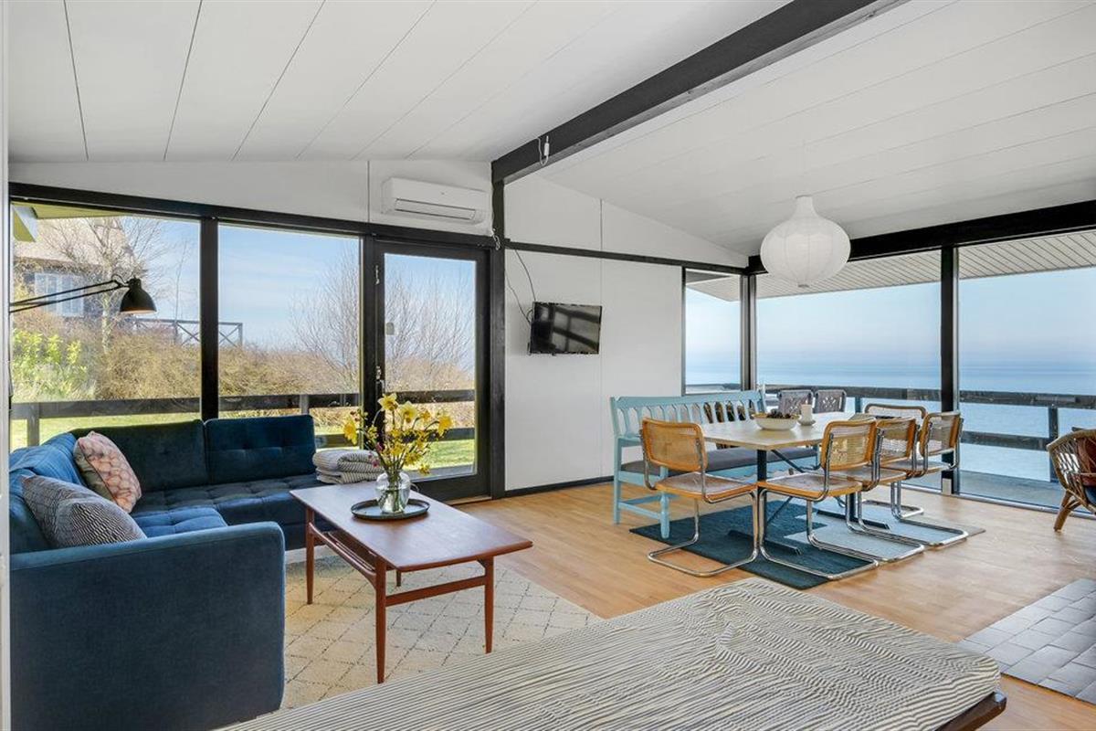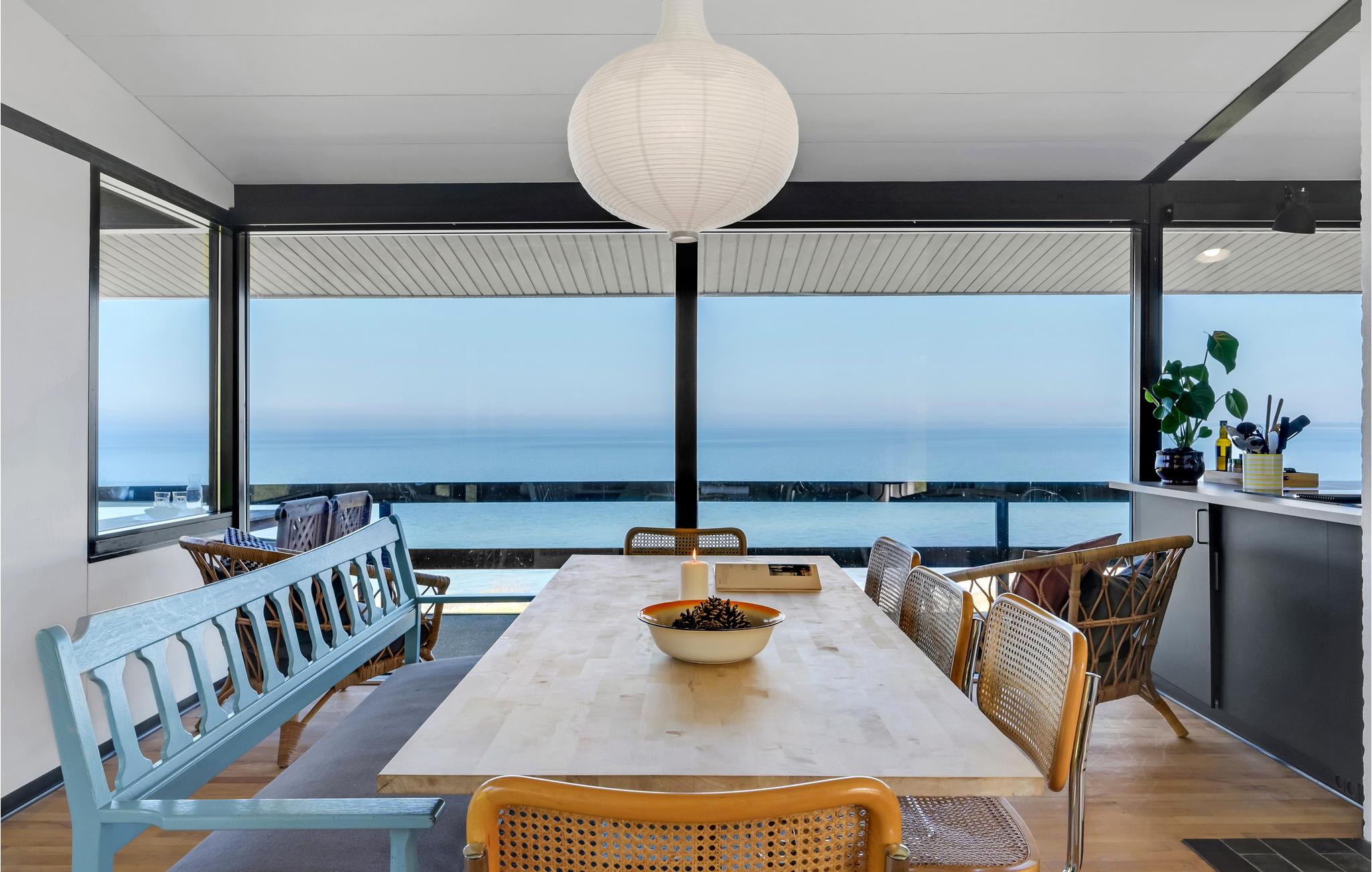 Dit onder architectuur gebouwde vakantiehuis uit de jaren '70 wacht op zijn gasten op een 3000 m² groot perceel dat afloopt naar het strand. In de woonkamer met ramen van vloer tot plafond kunt u genieten van een adembenemend panoramisch uitzicht, en ook het uitzicht vanuit de ramen van de gedeeltelijk open keuken is fantastisch. Een trap leidt naar het huis.